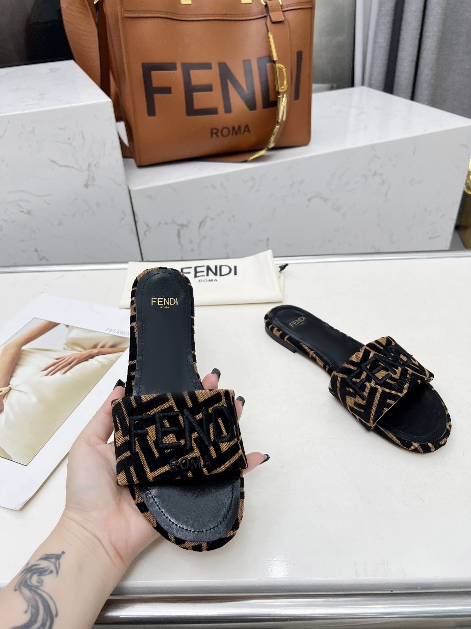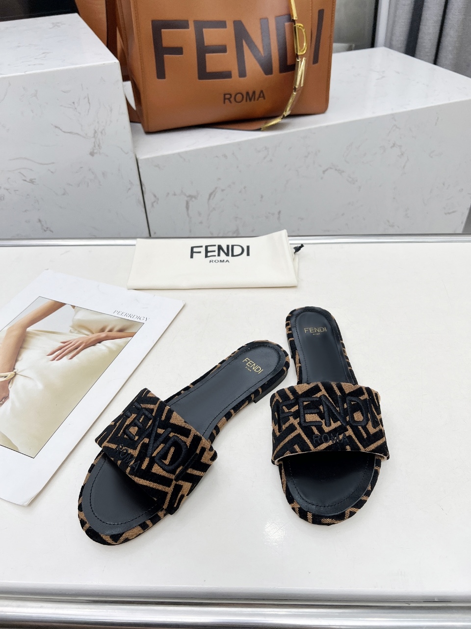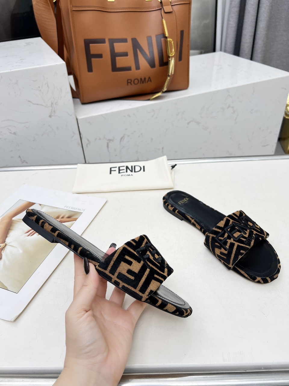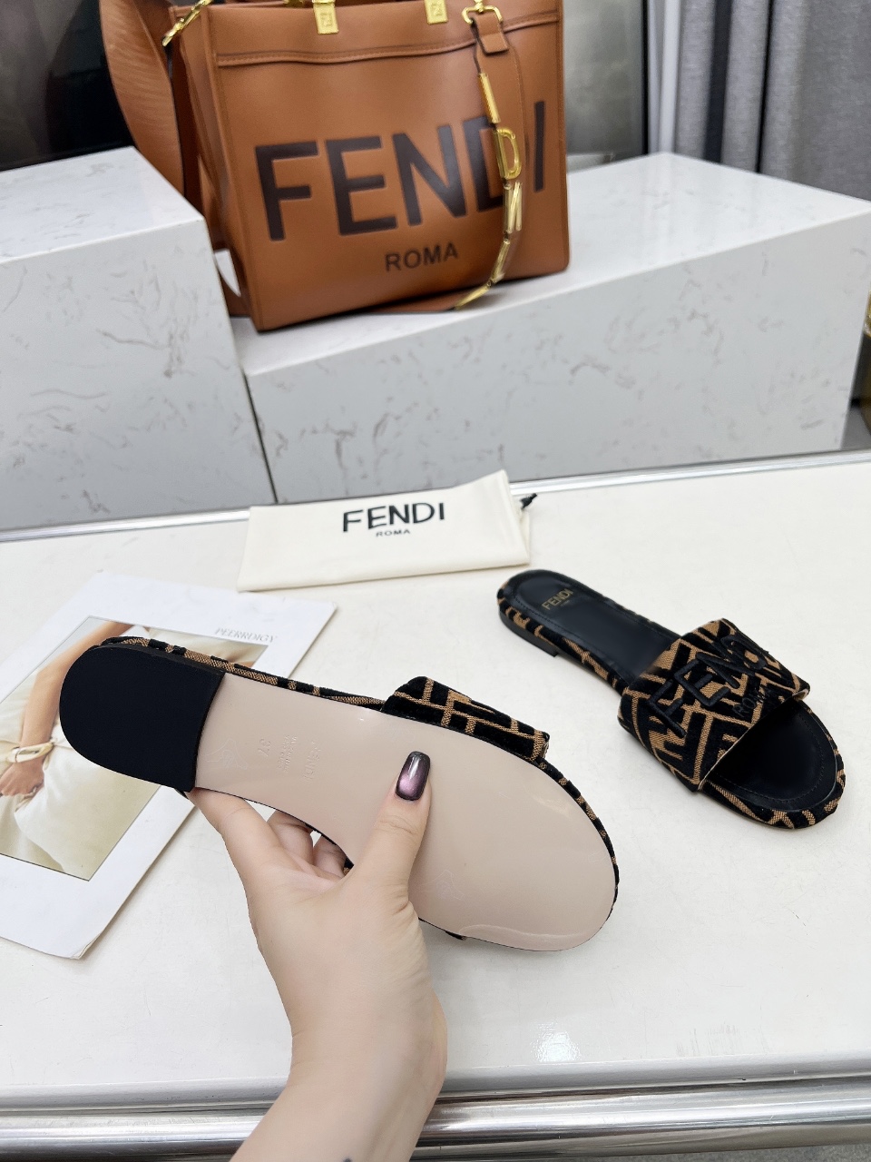 這款鞋子是AAAAA 1:1 質量(非常棒). 使用了和原版一模一樣的材料. 商標部分也保持了和芬迪/Fendi一樣. 圖片拍攝是實物鞋子拍攝, 您所收到的實物保證和我們圖片一模一樣.