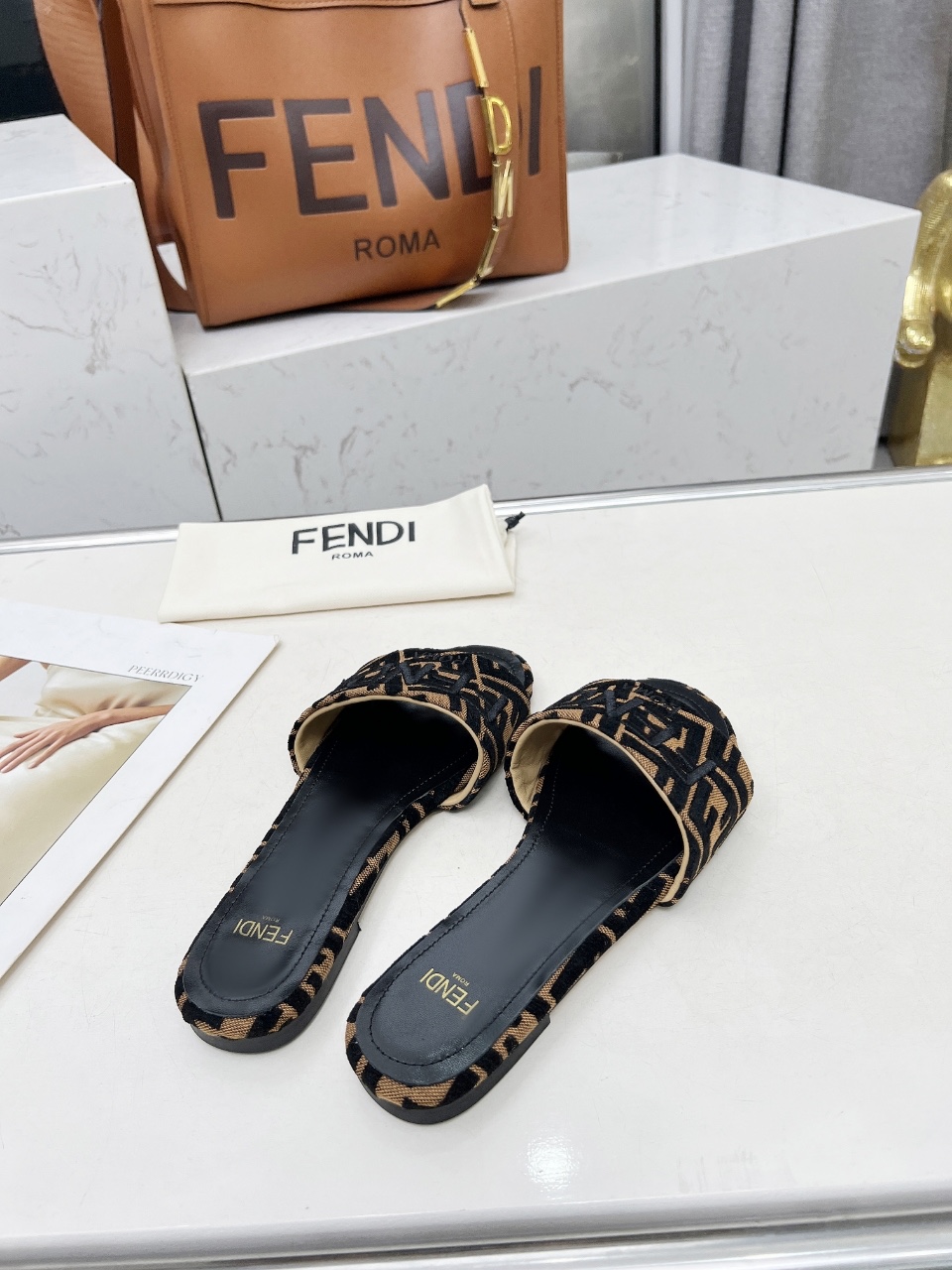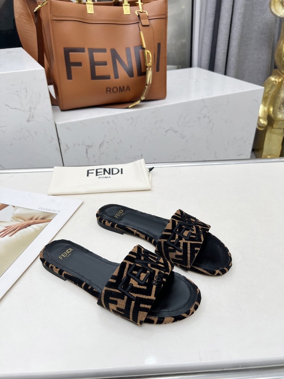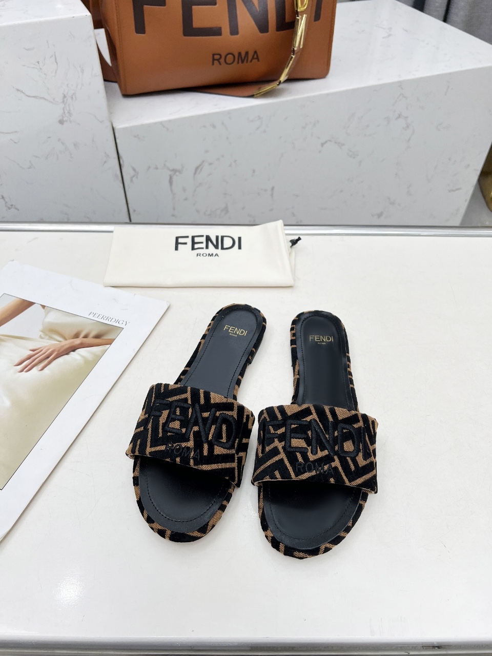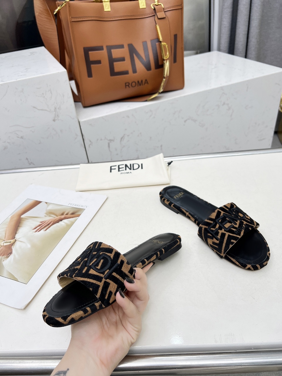這款鞋子是AAAAA 1:1 質量(非常棒). 使用了和原版一模一樣的材料. 商標部分也保持了和芬迪/Fendi一樣. 圖片拍攝是實物鞋子拍攝, 您所收到的實物保證和我們圖片一模一樣.