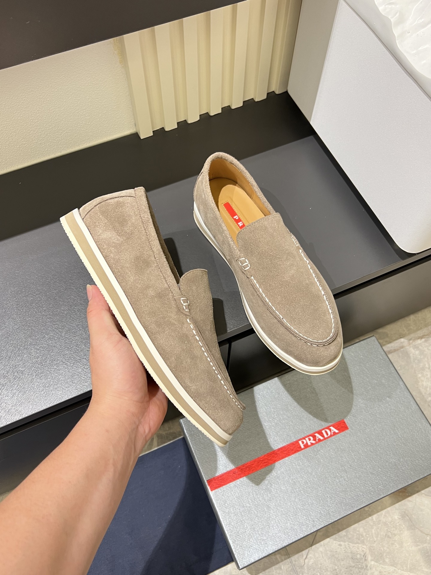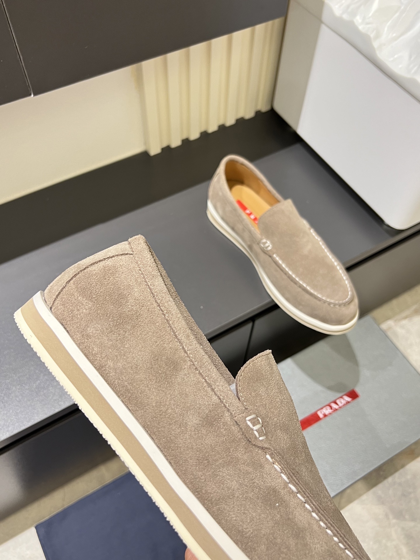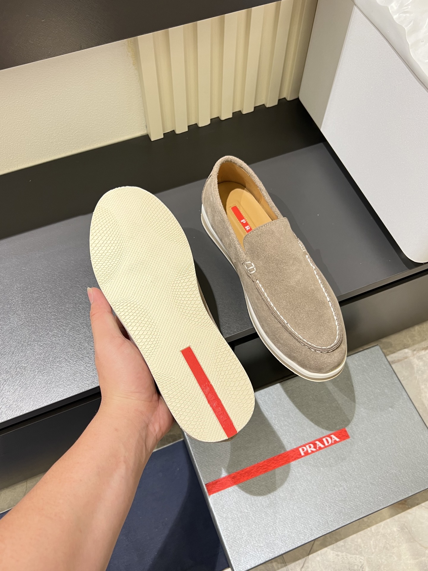 這款鞋子是AAAAA 1:1 質量(非常棒). 使用了和原版一模一樣的材料. 商標部分也保持了和普拉達/Prada一樣. 圖片拍攝是實物鞋子拍攝, 您所收到的實物保證和我們圖片一模一樣.