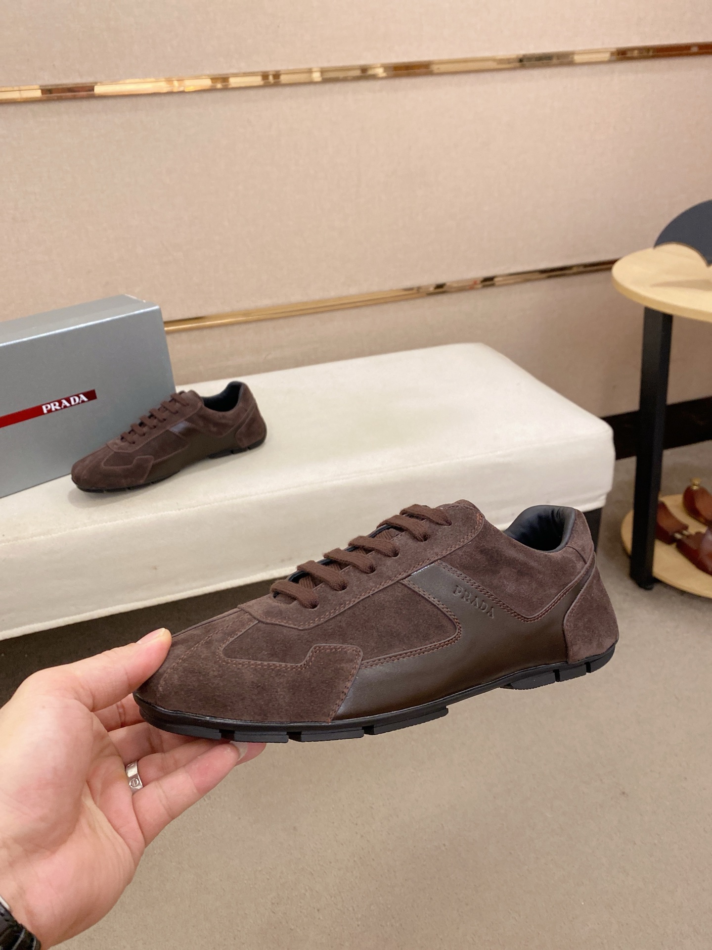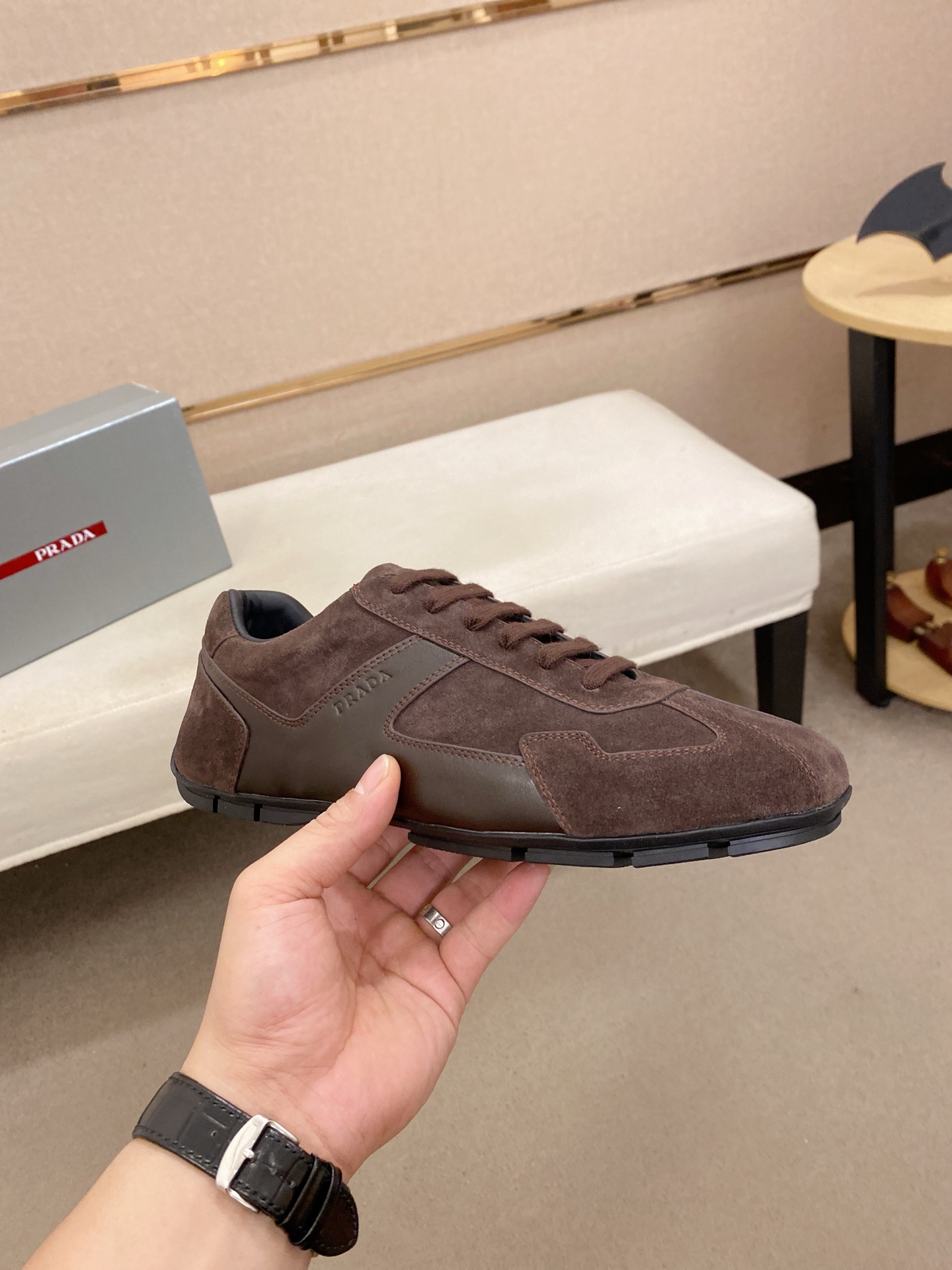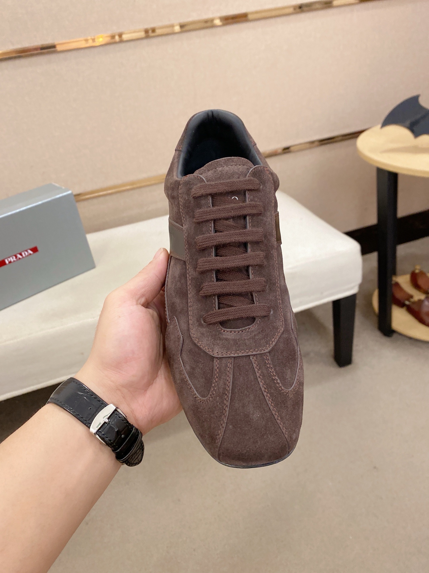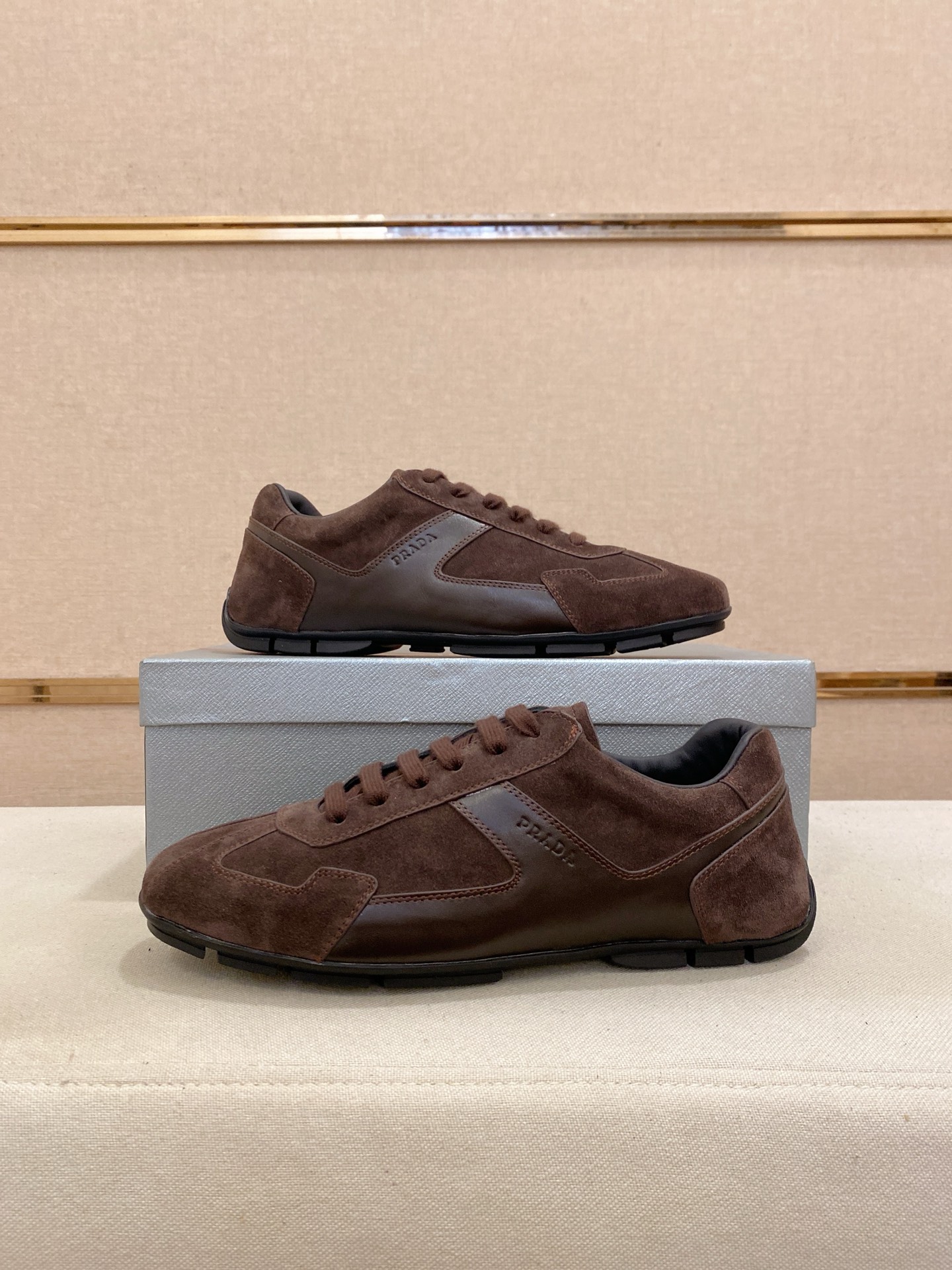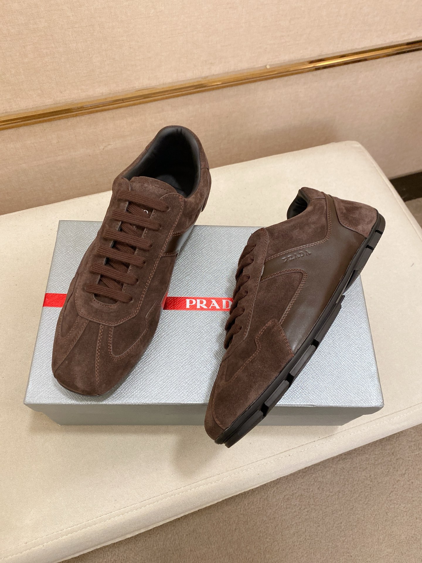 這款鞋子是AAAAA 1:1 質量(非常棒). 使用了和原版一模一樣的材料. 商標部分也保持了和普拉達/Prada一樣. 圖片拍攝是實物鞋子拍攝, 您所收到的實物保證和我們圖片一模一樣.