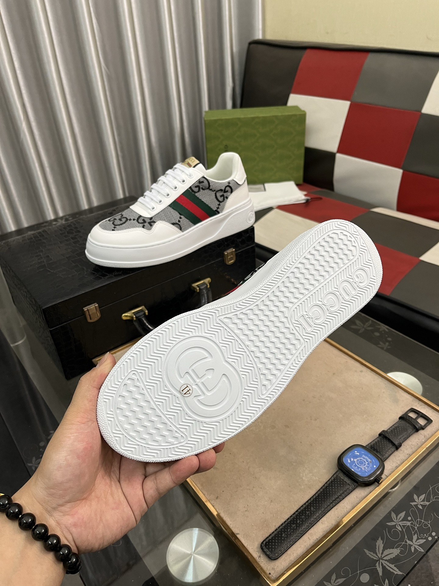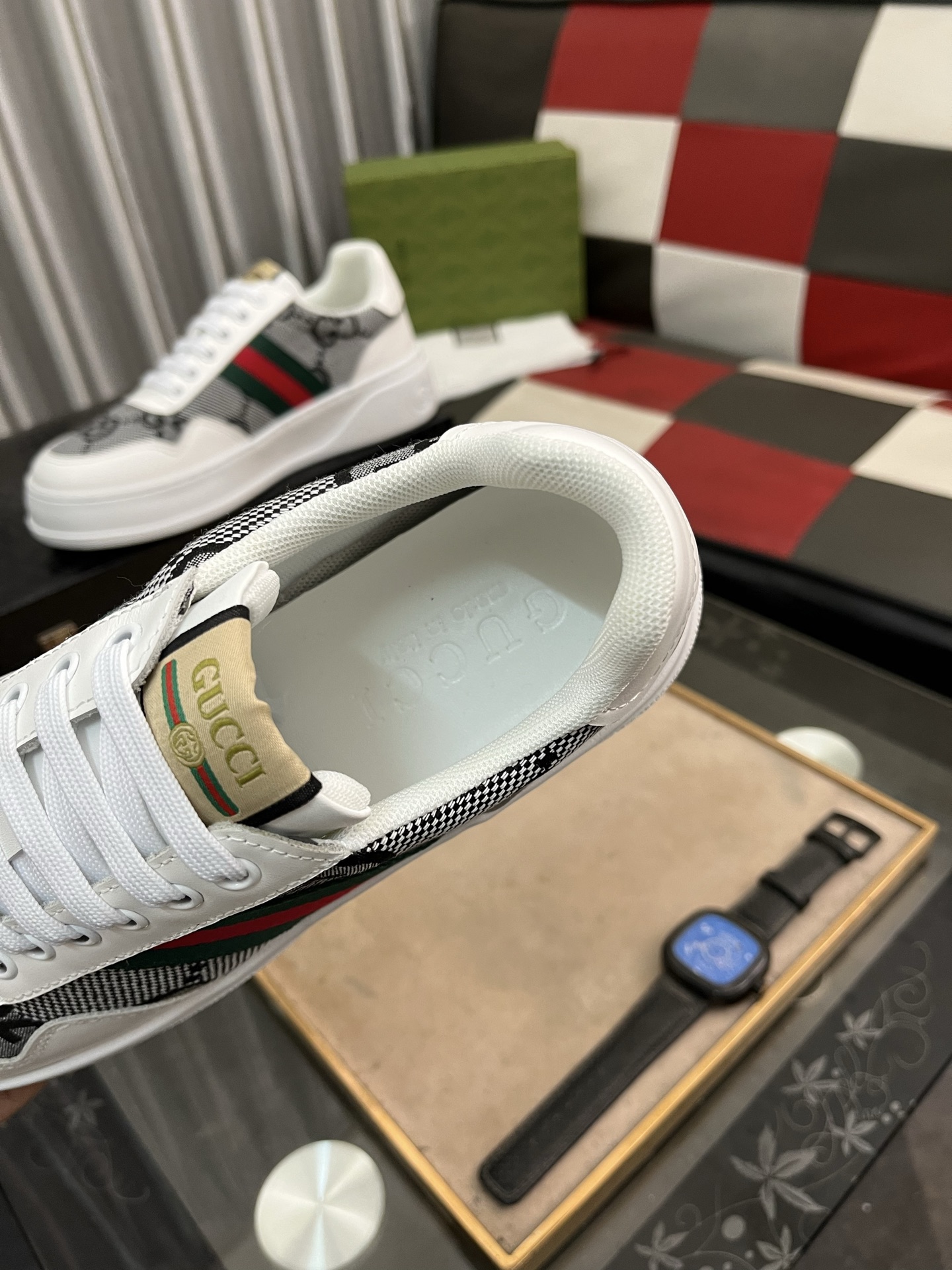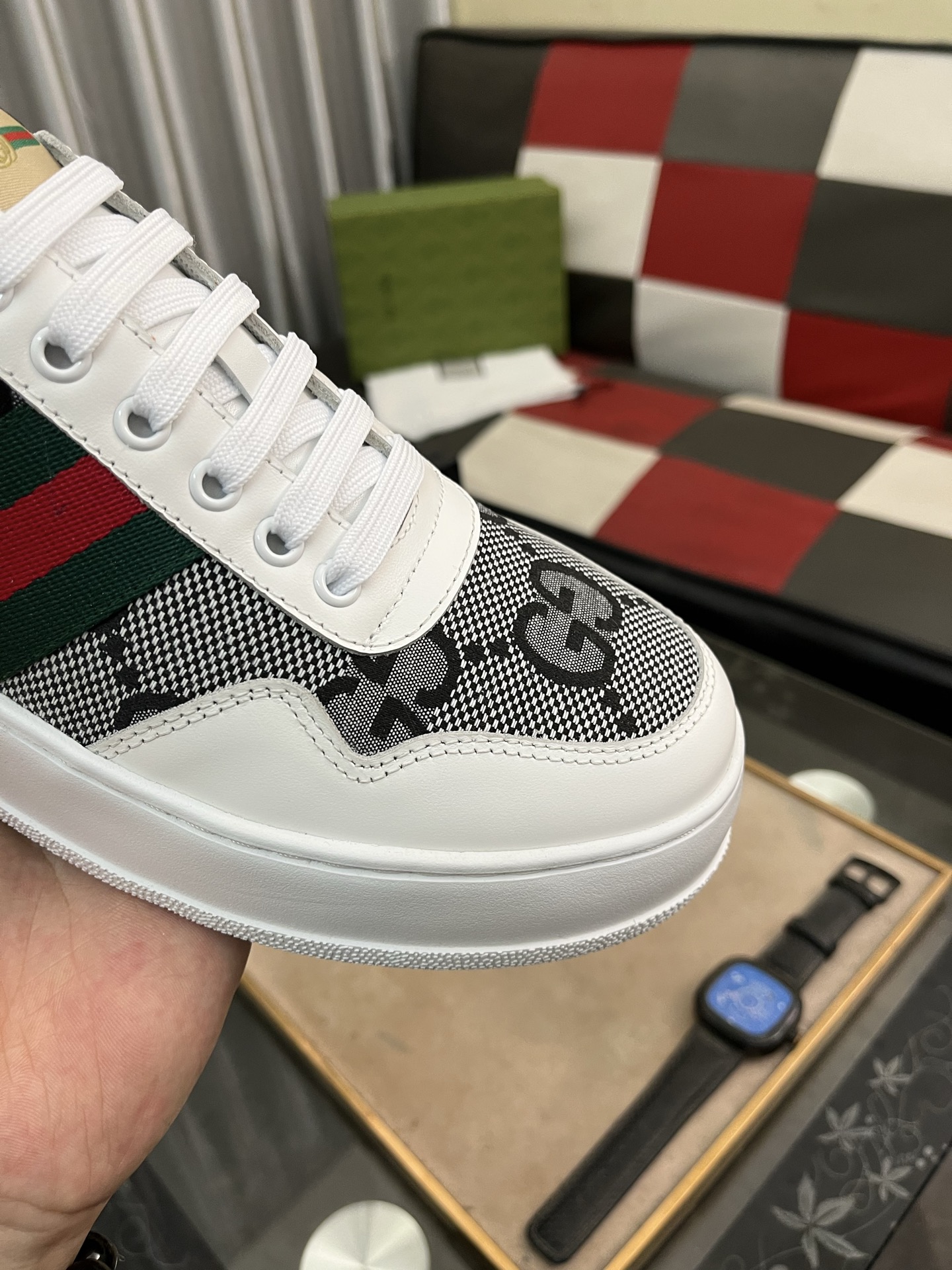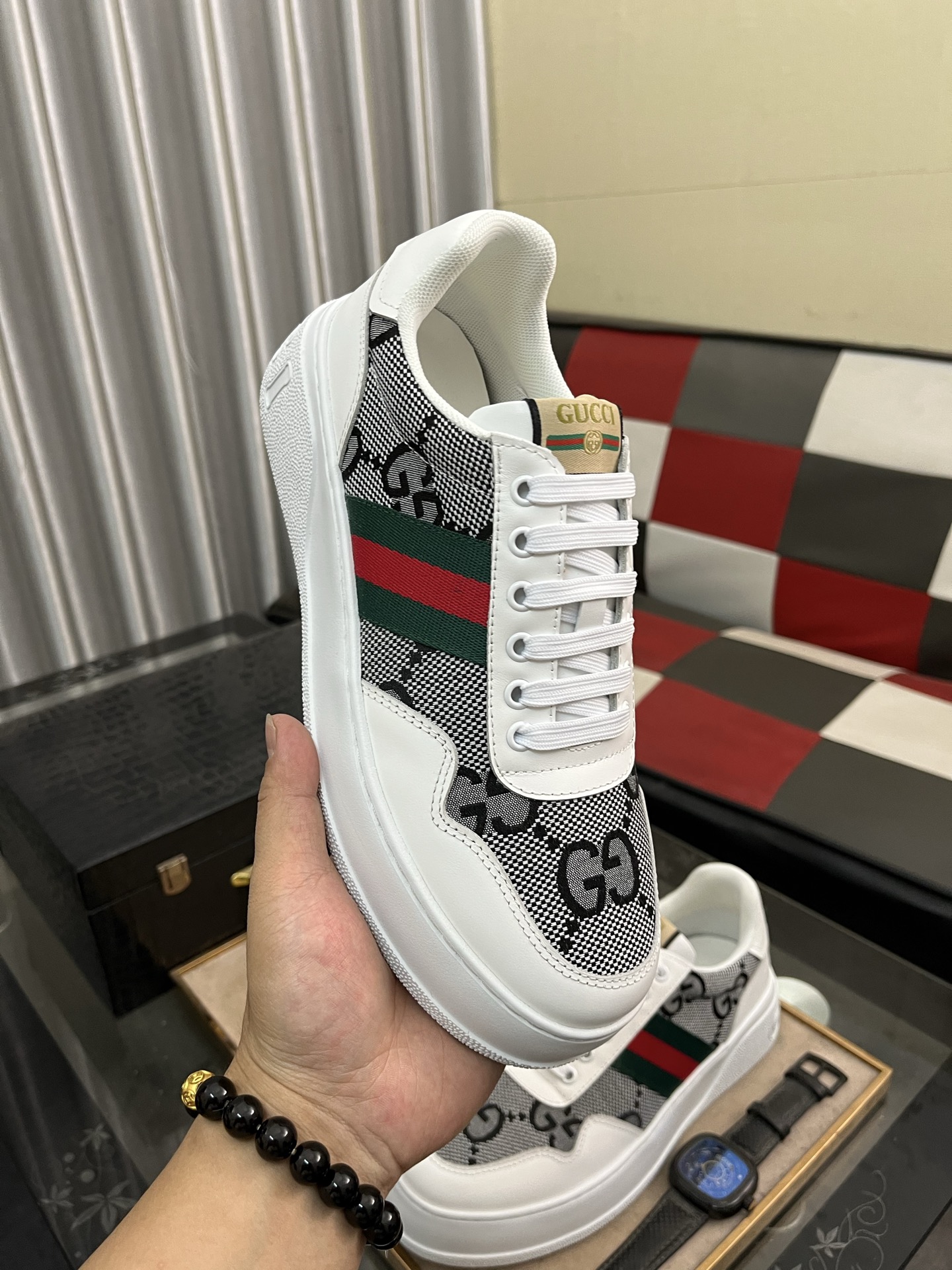 這款鞋子是AAAAA 1:1 質量(非常棒). 使用了和原版一模一樣的材料. 商標部分也保持了和古奇/Gucci一樣. 圖片拍攝是實物鞋子拍攝, 您所收到的實物保證和我們圖片一模一樣.
