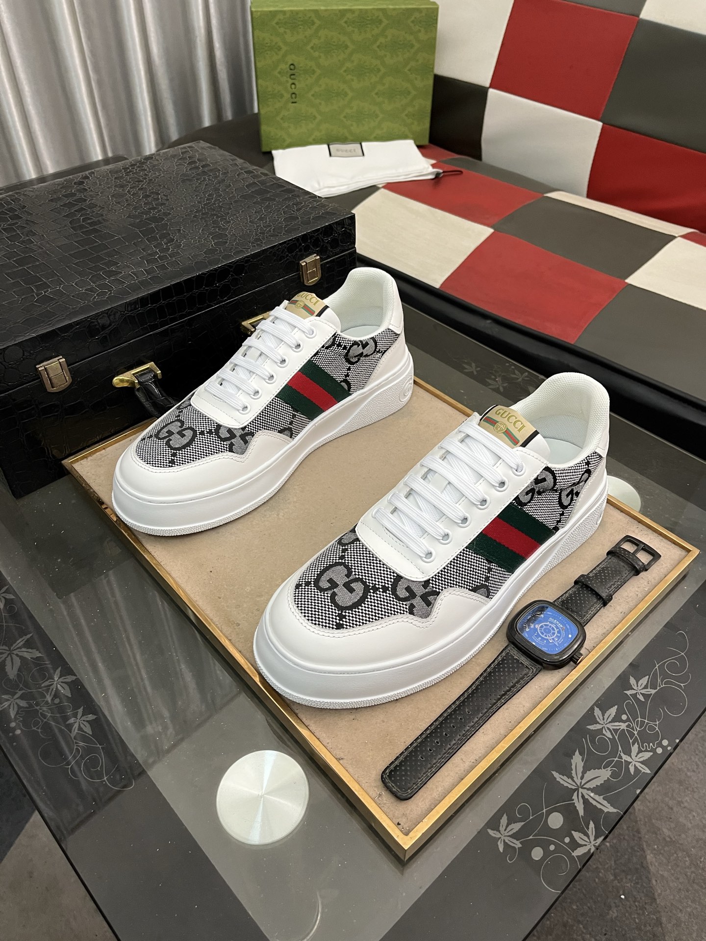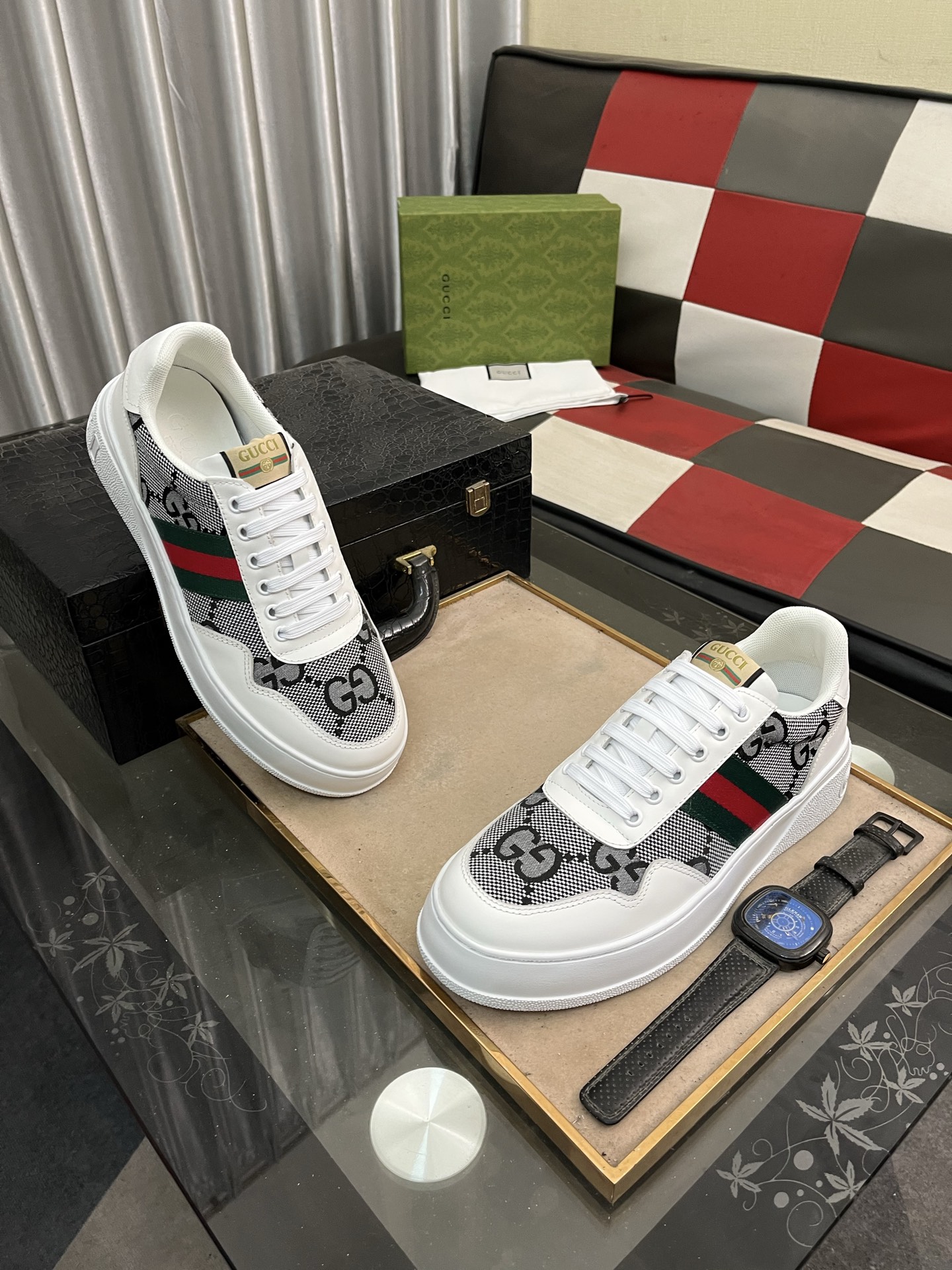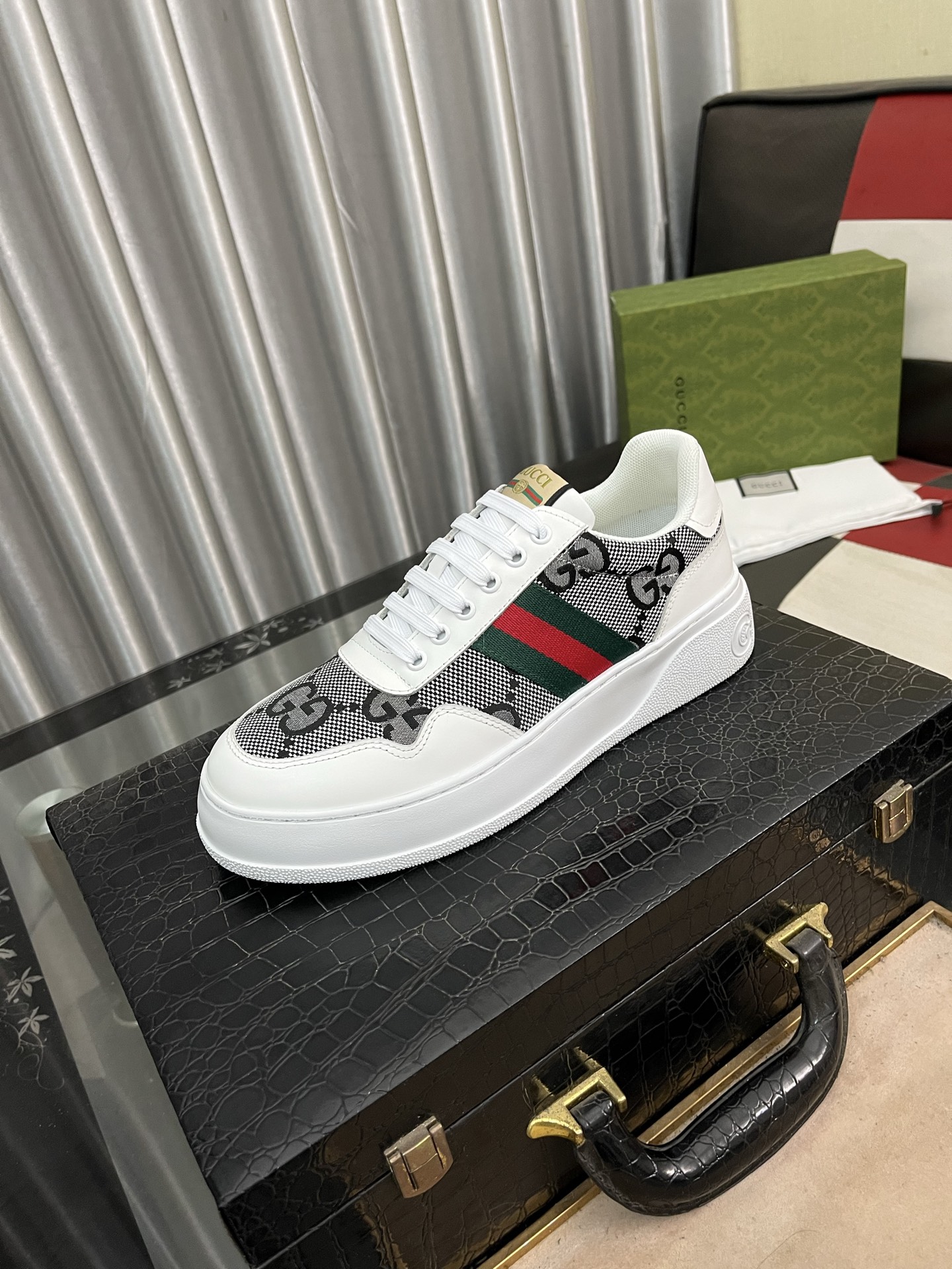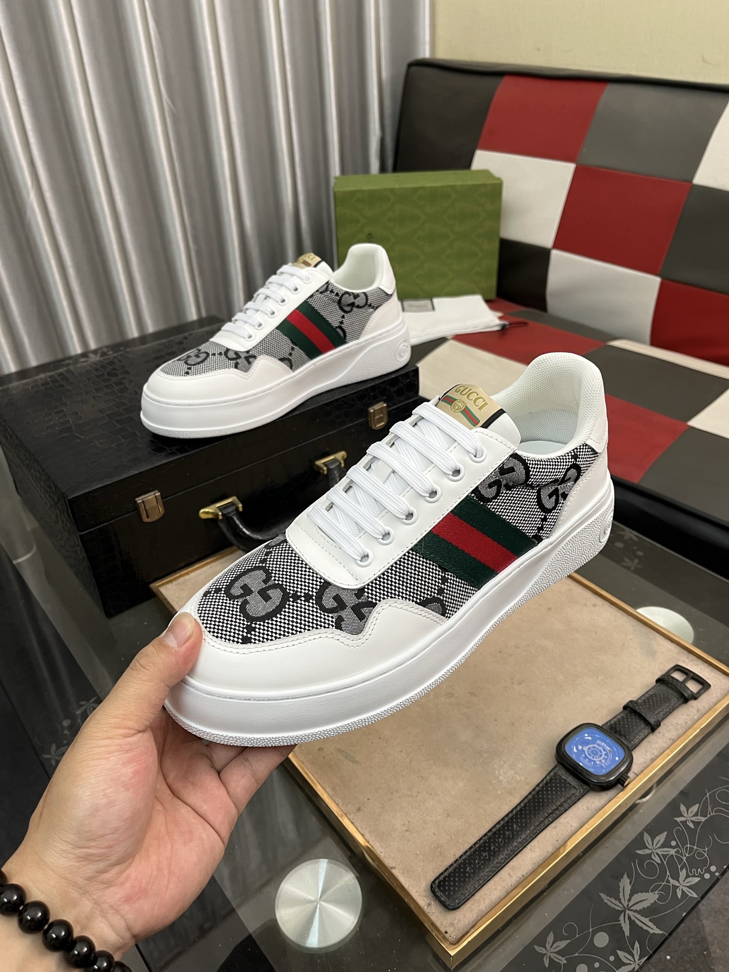 這款鞋子是AAAAA 1:1 質量(非常棒). 使用了和原版一模一樣的材料. 商標部分也保持了和古奇/Gucci一樣. 圖片拍攝是實物鞋子拍攝, 您所收到的實物保證和我們圖片一模一樣.
