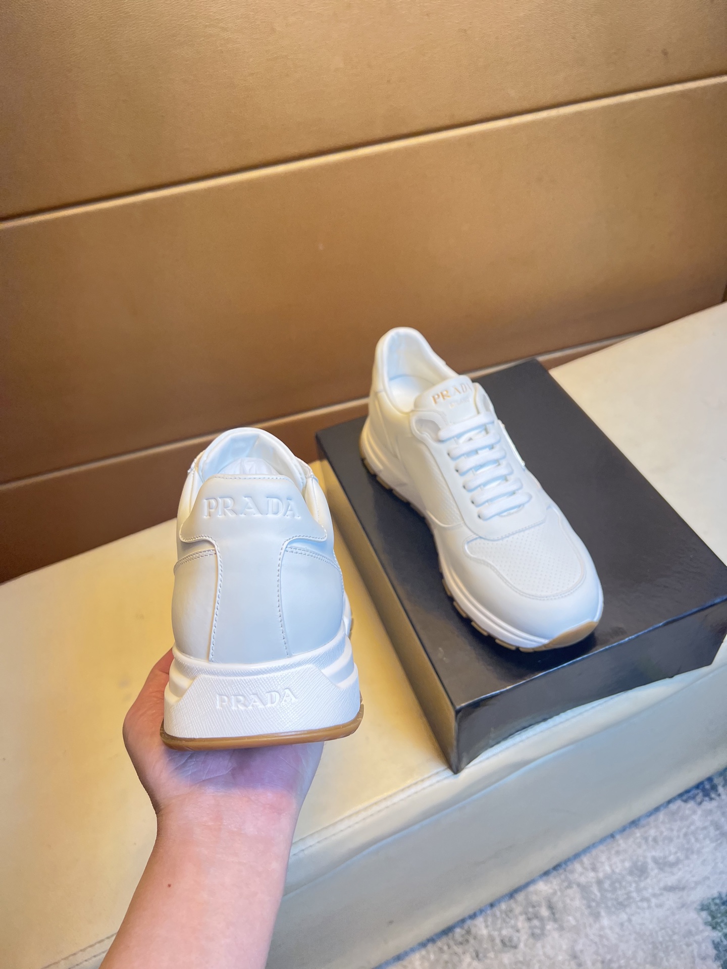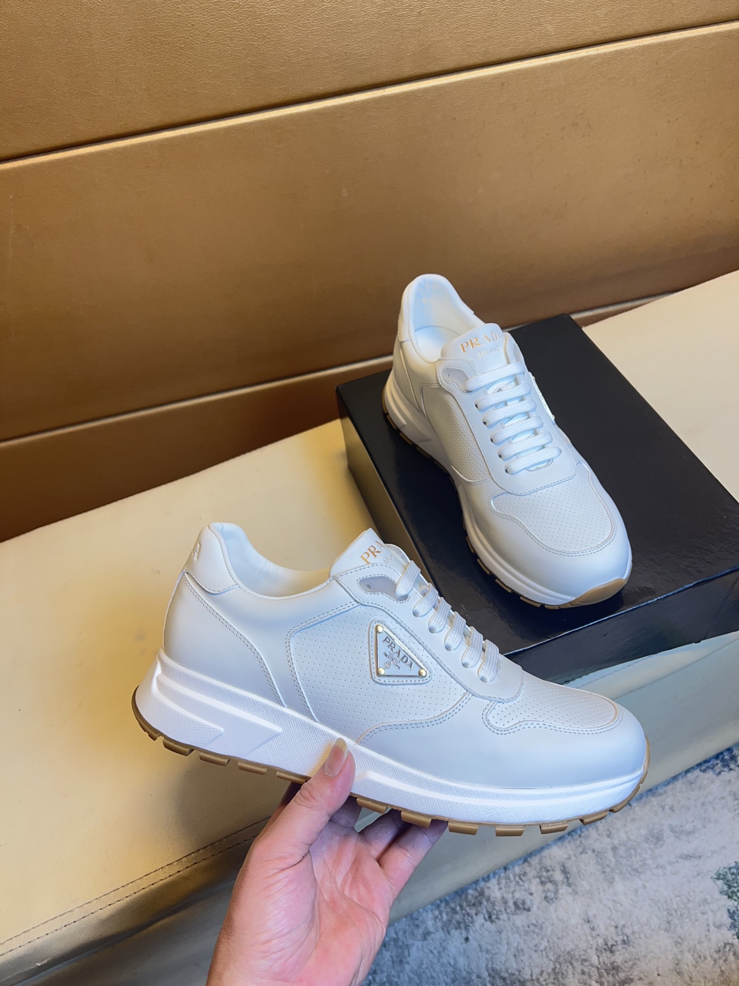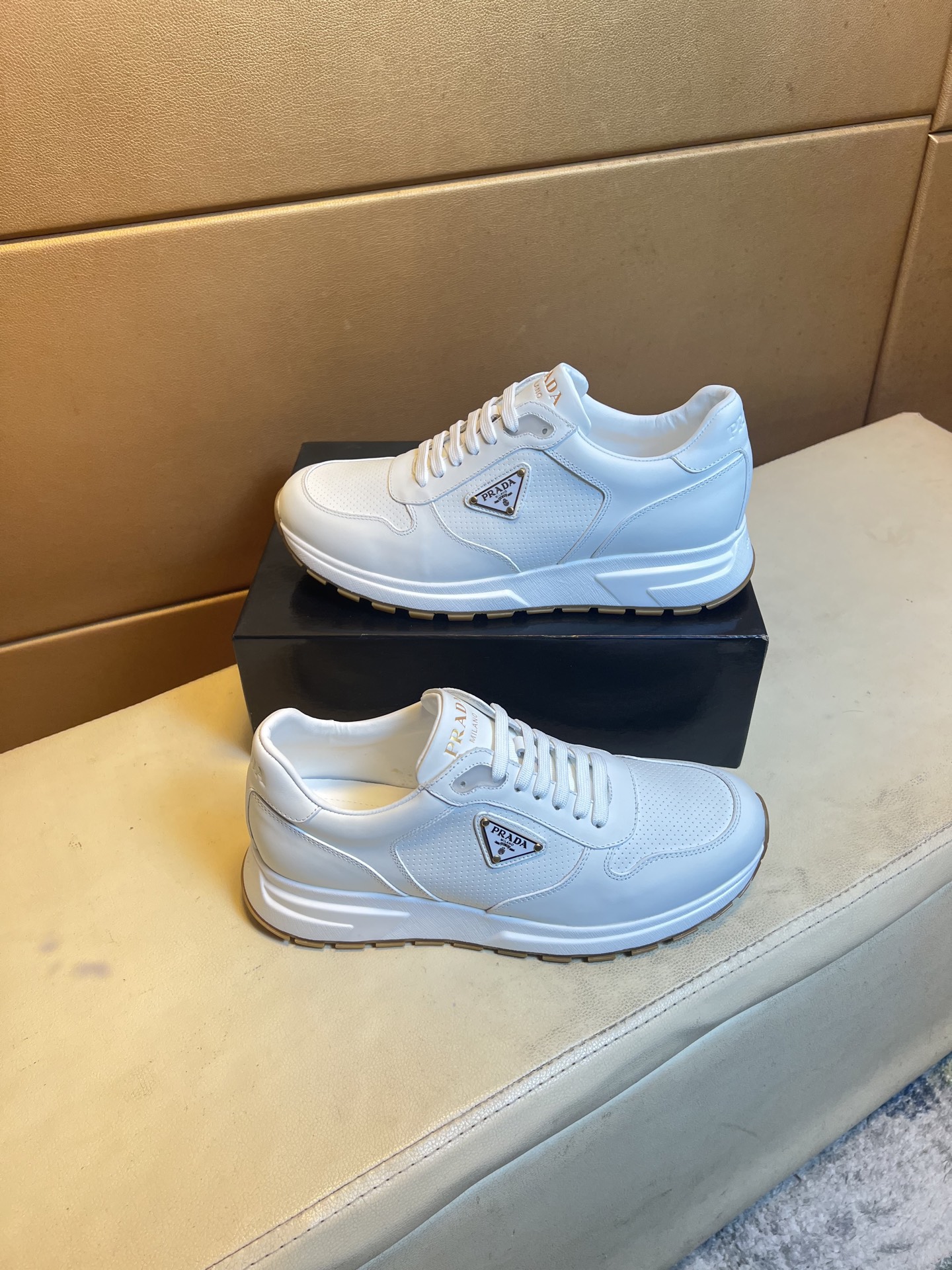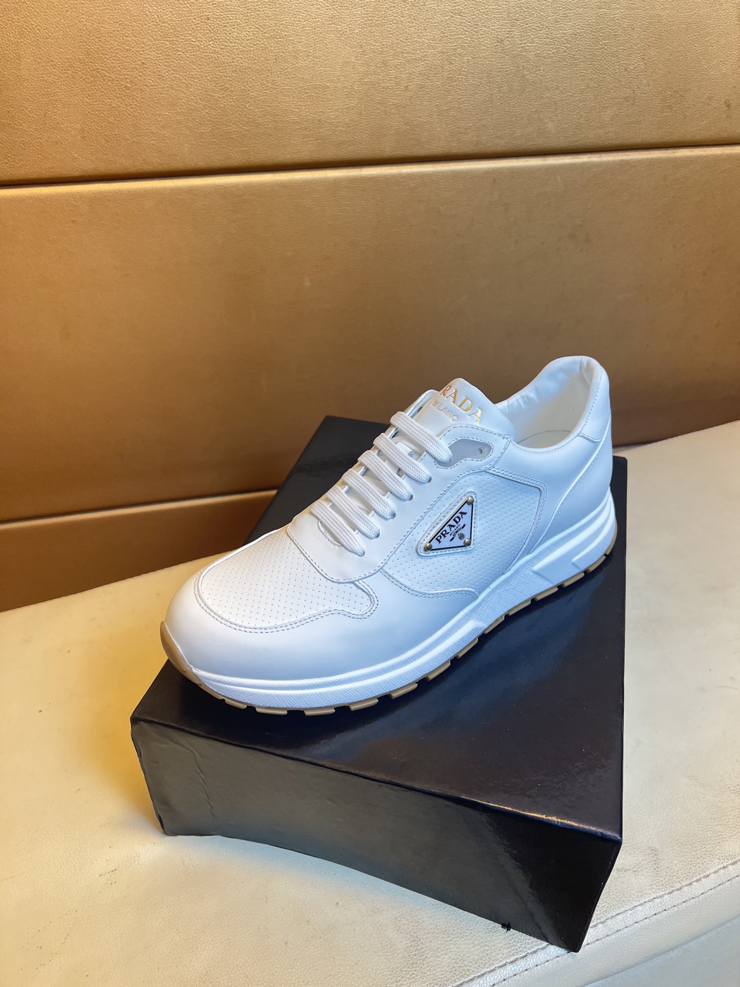 這款鞋子是AAAAA 1:1 質量(非常棒). 使用了和原版一模一樣的材料. 商標部分也保持了和普拉達/Prada一樣. 圖片拍攝是實物鞋子拍攝, 您所收到的實物保證和我們圖片一模一樣.