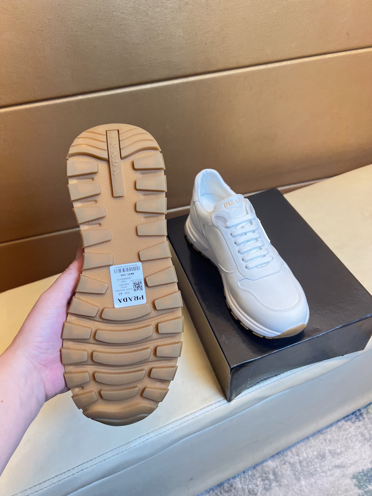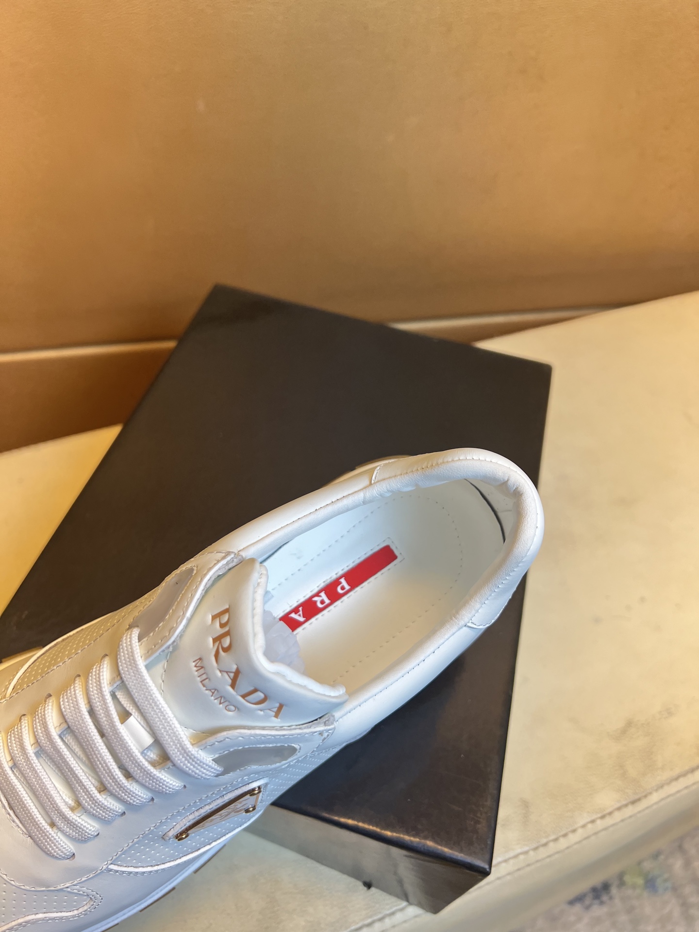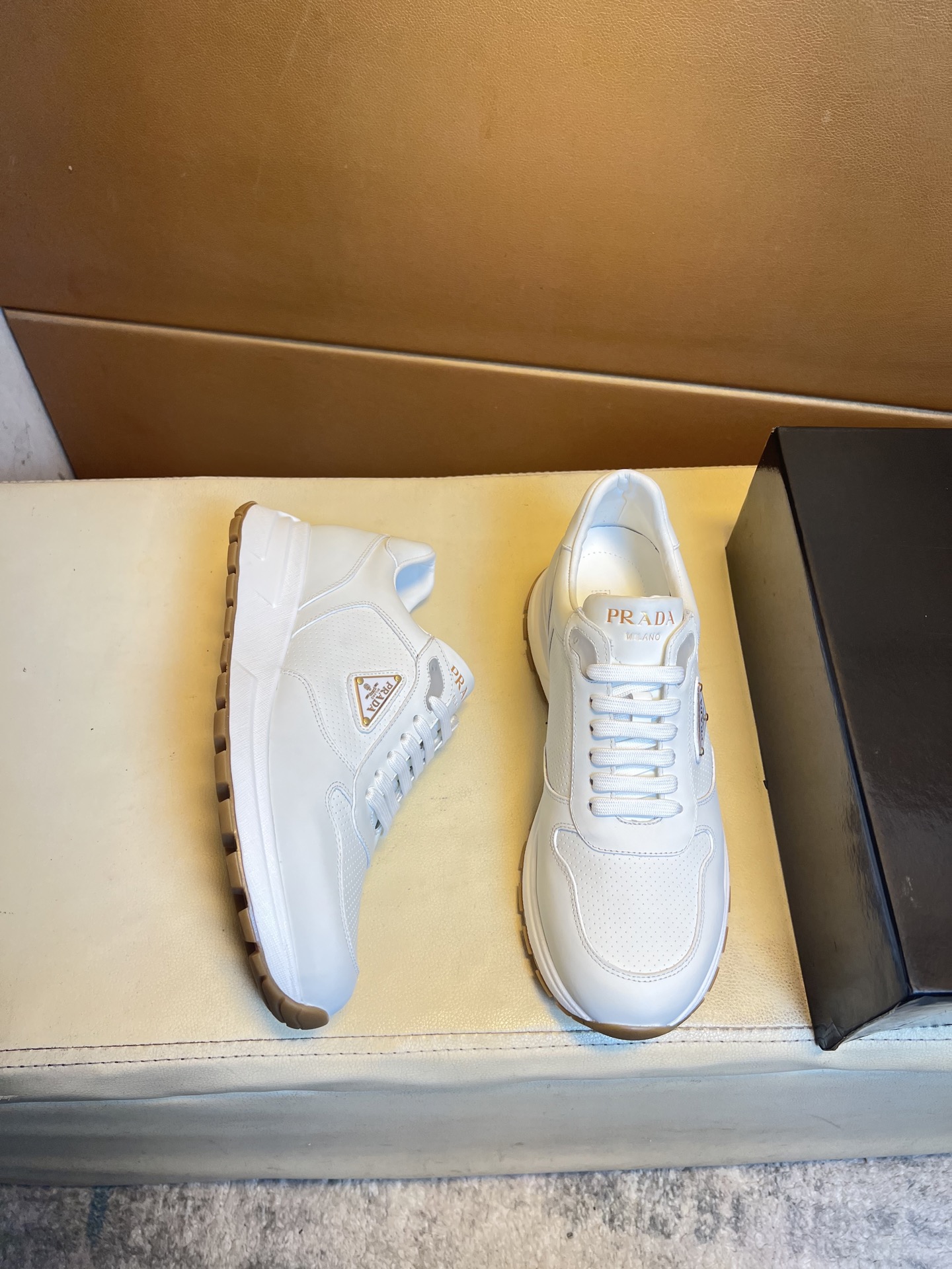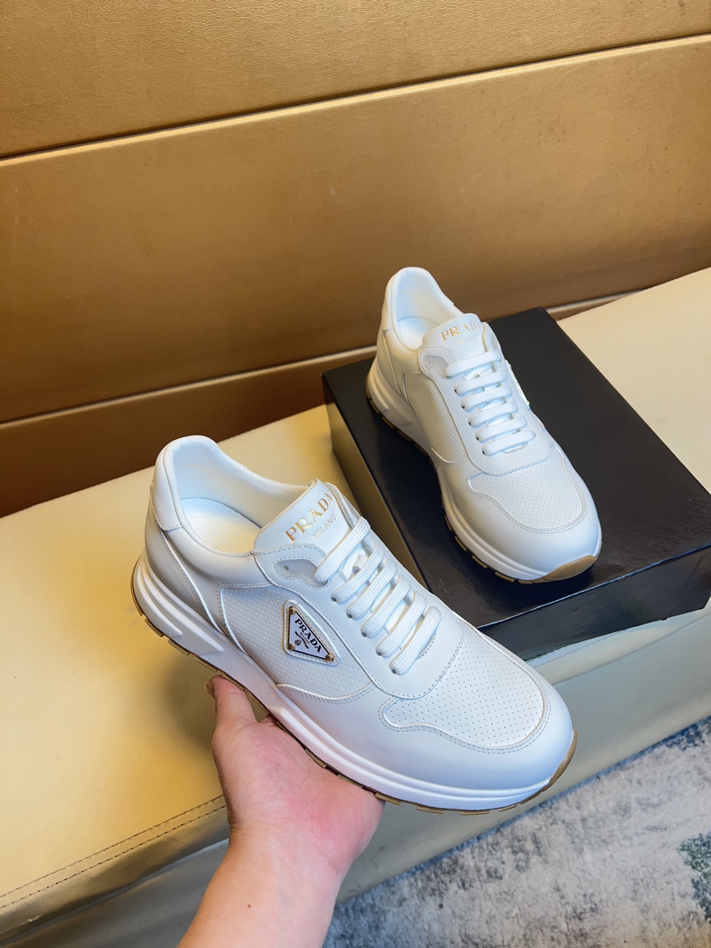 這款鞋子是AAAAA 1:1 質量(非常棒). 使用了和原版一模一樣的材料. 商標部分也保持了和普拉達/Prada一樣. 圖片拍攝是實物鞋子拍攝, 您所收到的實物保證和我們圖片一模一樣.
