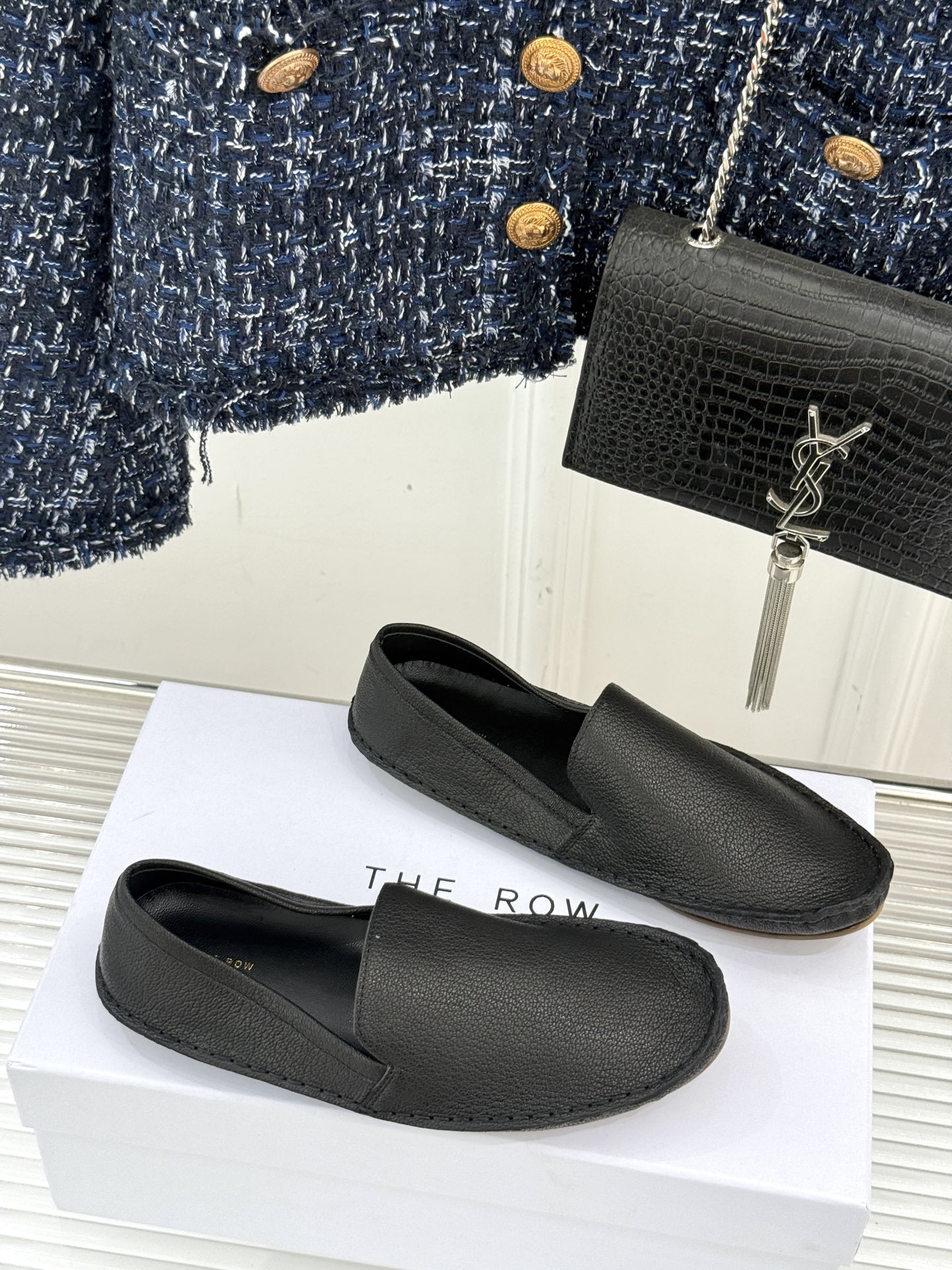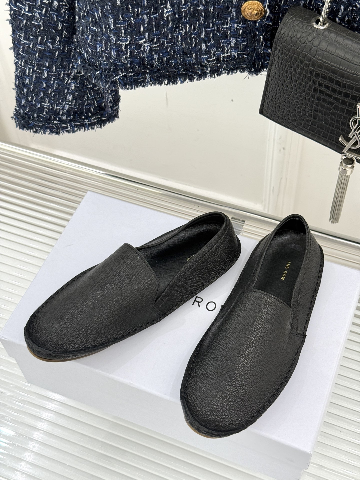 這款鞋子是AAAAA 1:1 質量(非常棒). 使用了和原版一模一樣的材料. 商標部分也保持了和The Row一樣. 圖片拍攝是實物鞋子拍攝, 您所收到的實物保證和我們圖片一模一樣.