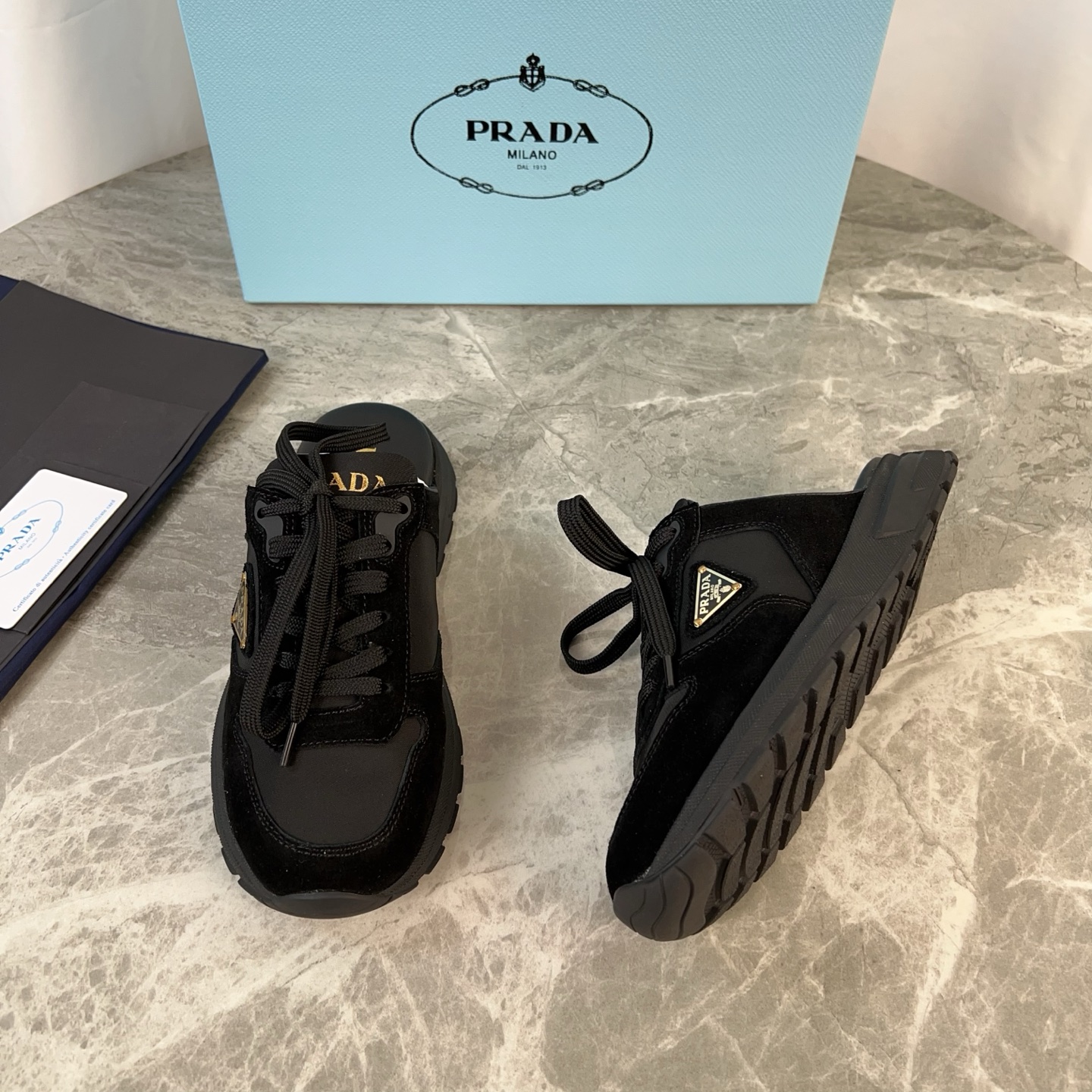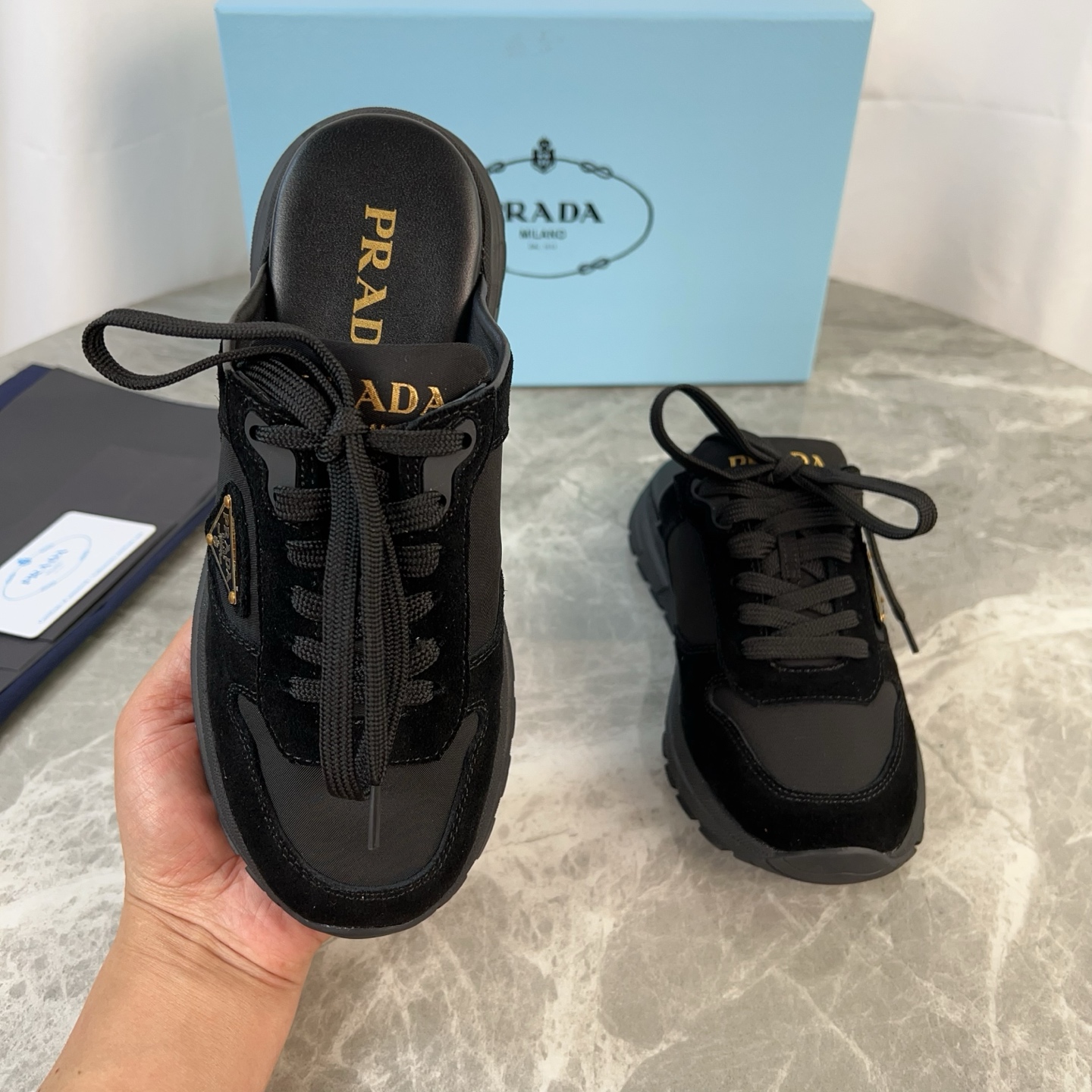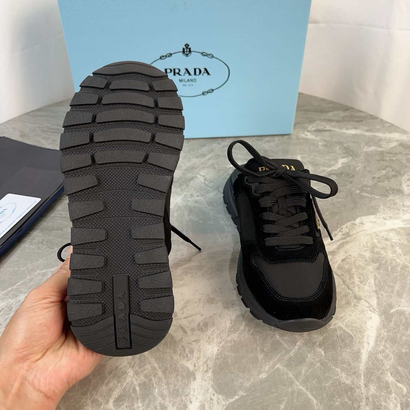 這款鞋子是AAAAA 1:1 質量(非常棒). 使用了和原版一模一樣的材料. 商標部分也保持了和普拉達/Prada一樣. 圖片拍攝是實物鞋子拍攝, 您所收到的實物保證和我們圖片一模一樣.