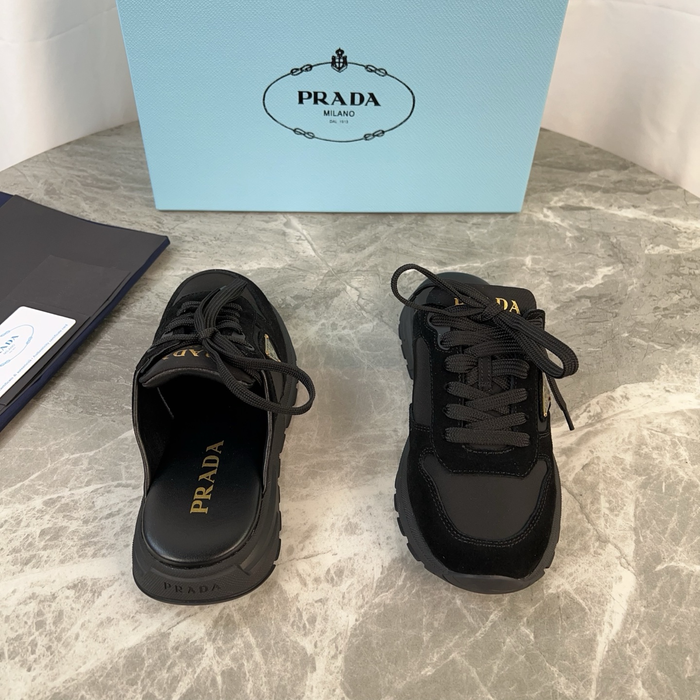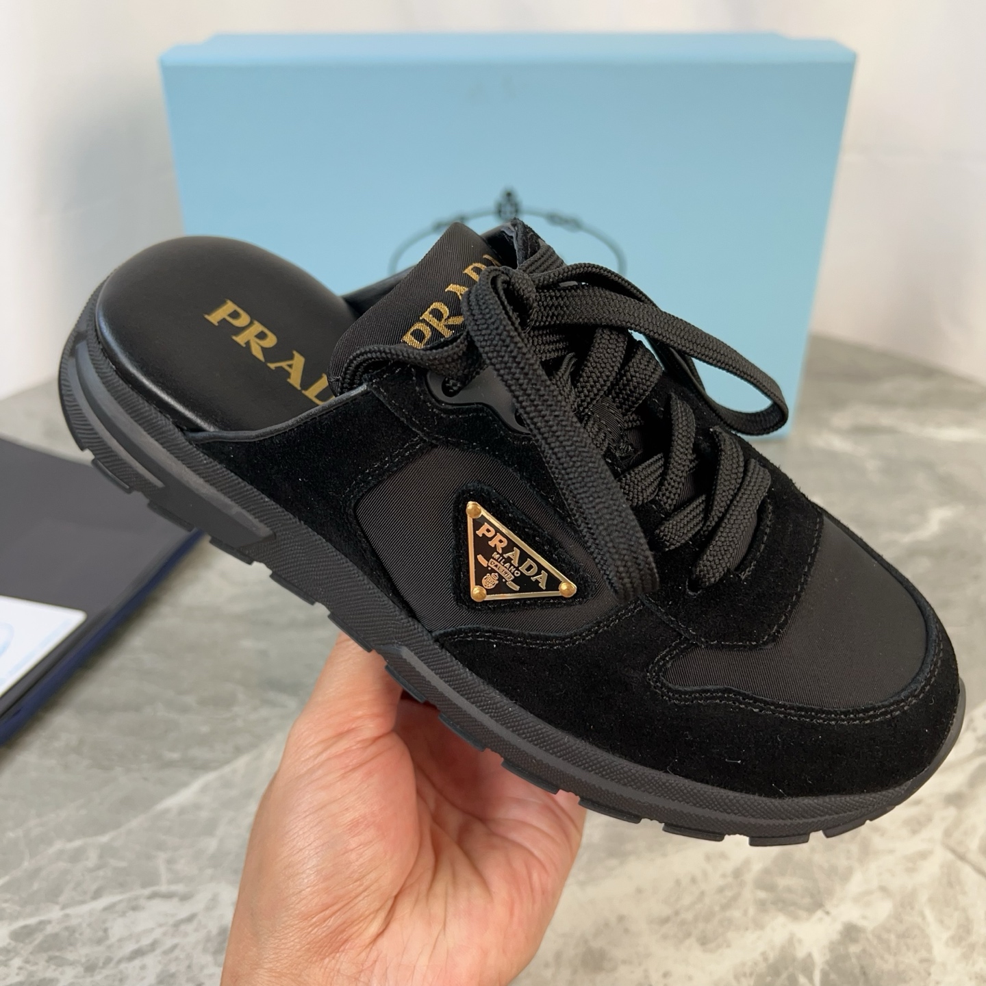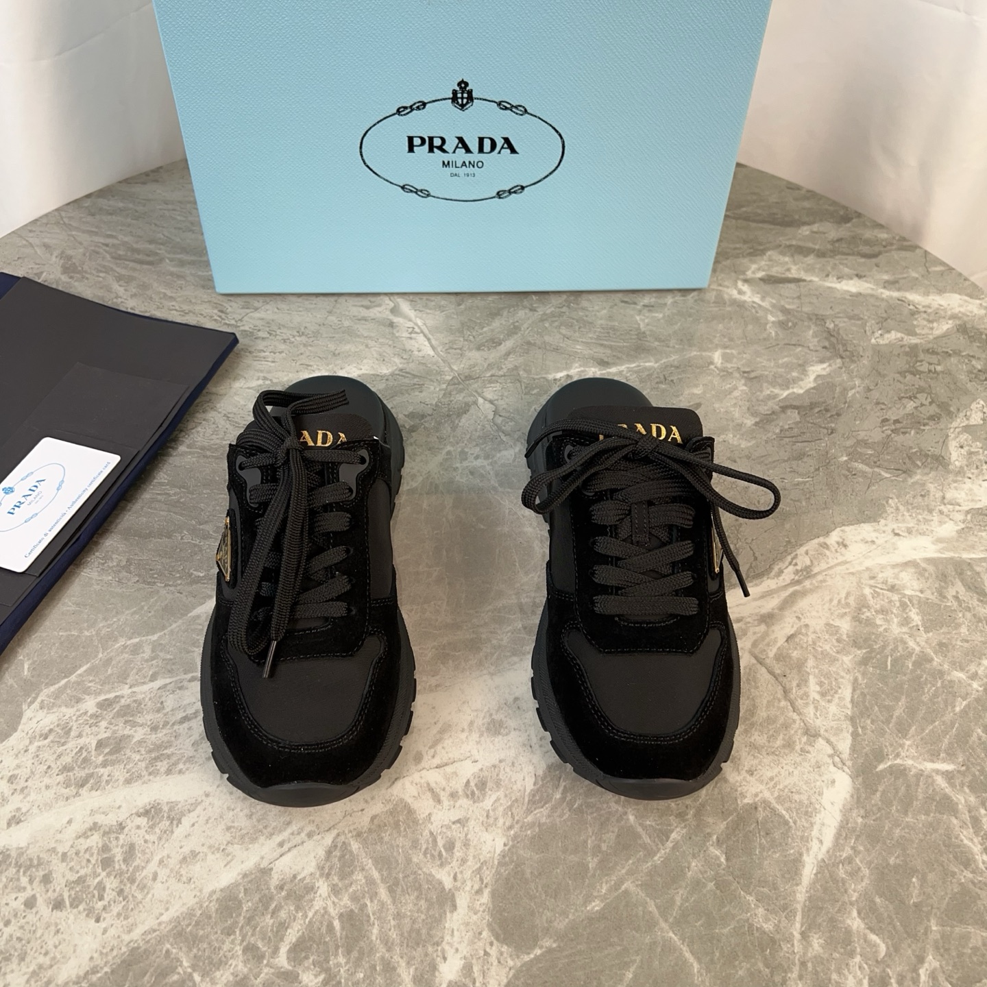 這款鞋子是AAAAA 1:1 質量(非常棒). 使用了和原版一模一樣的材料. 商標部分也保持了和普拉達/Prada一樣. 圖片拍攝是實物鞋子拍攝, 您所收到的實物保證和我們圖片一模一樣.