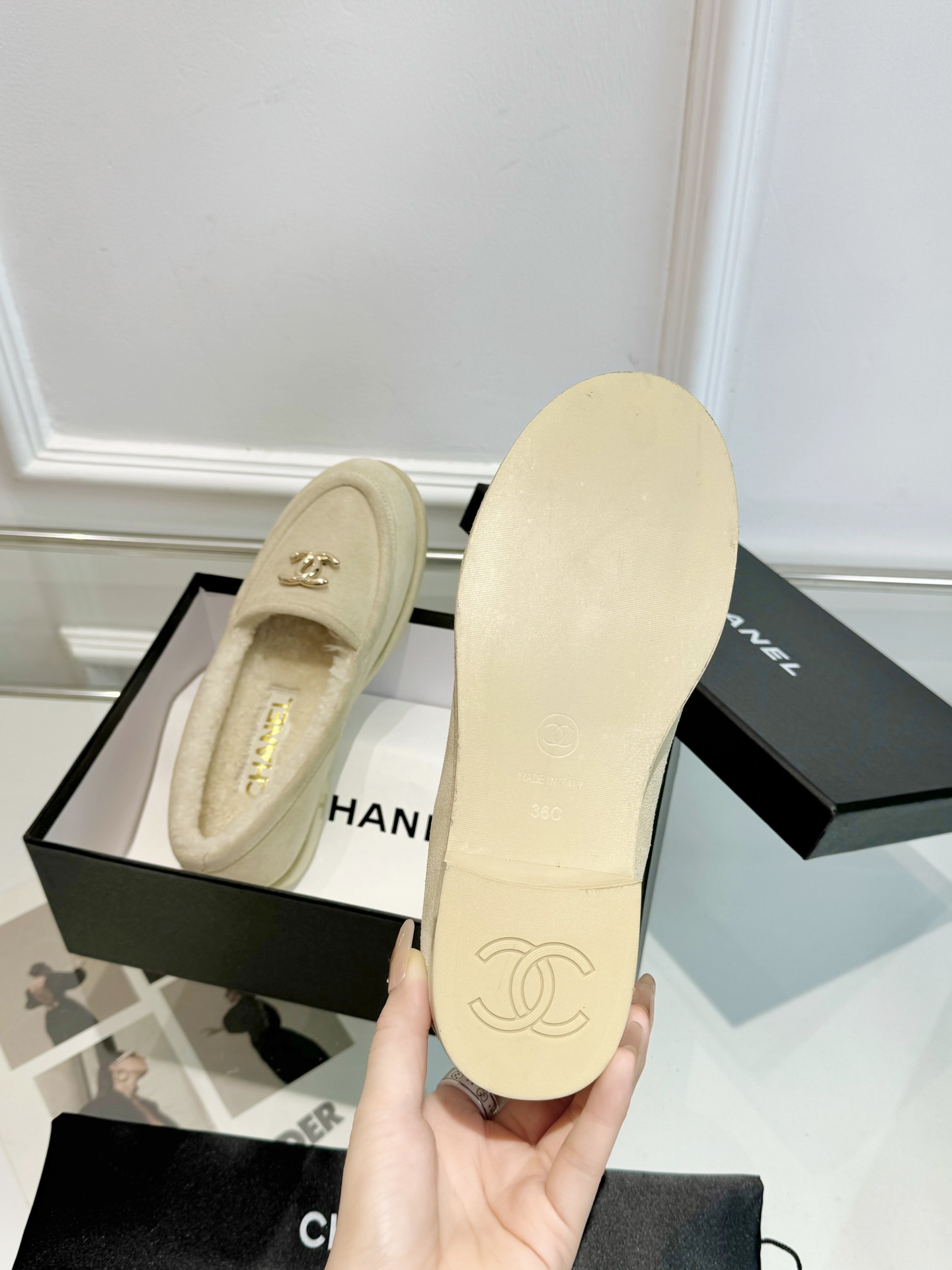這款鞋子是AAAAA 1:1 質量(非常棒). 使用了和原版一模一樣的材料. 商標部分也保持了和香奈兒/Chanel一樣. 圖片拍攝是實物鞋子拍攝, 您所收到的實物保證和我們圖片一模一樣.