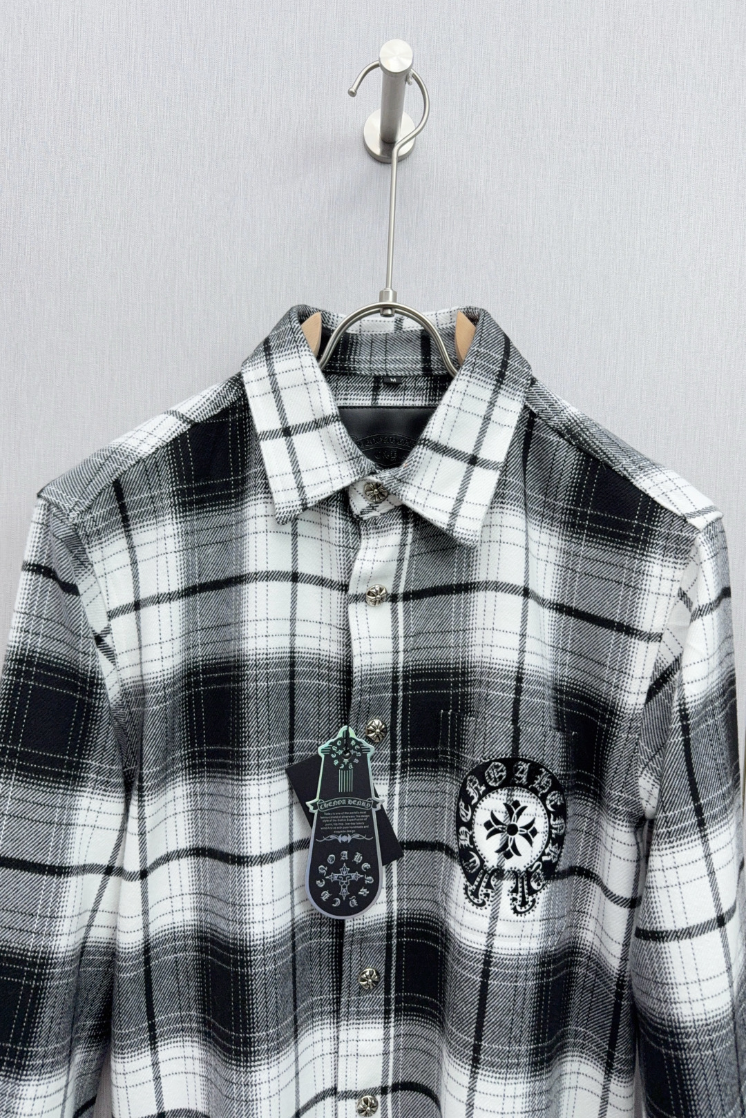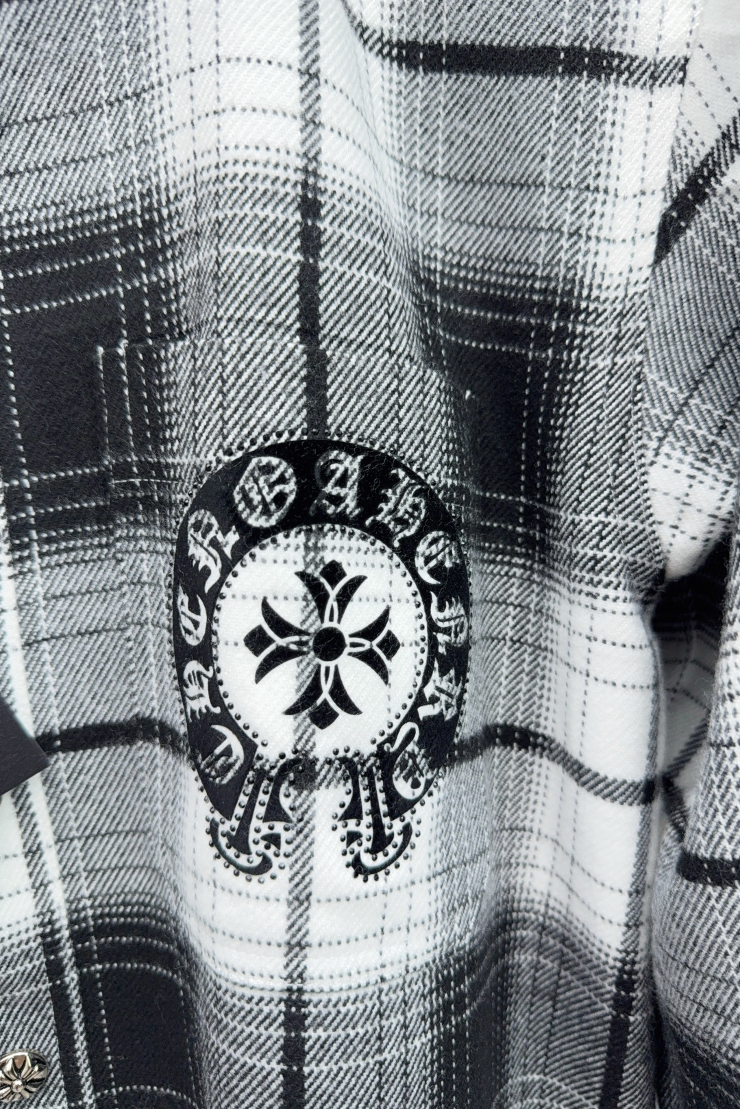 這款衣服是AAAAA 1:1 質量(非常棒). 使用了和原版一模一樣的材料. 商標部分也保持了和鉻心/Chrome Hearts一樣. 圖片拍攝是實物衣服拍攝, 您所收到的實物保證和我們圖片一模一樣.