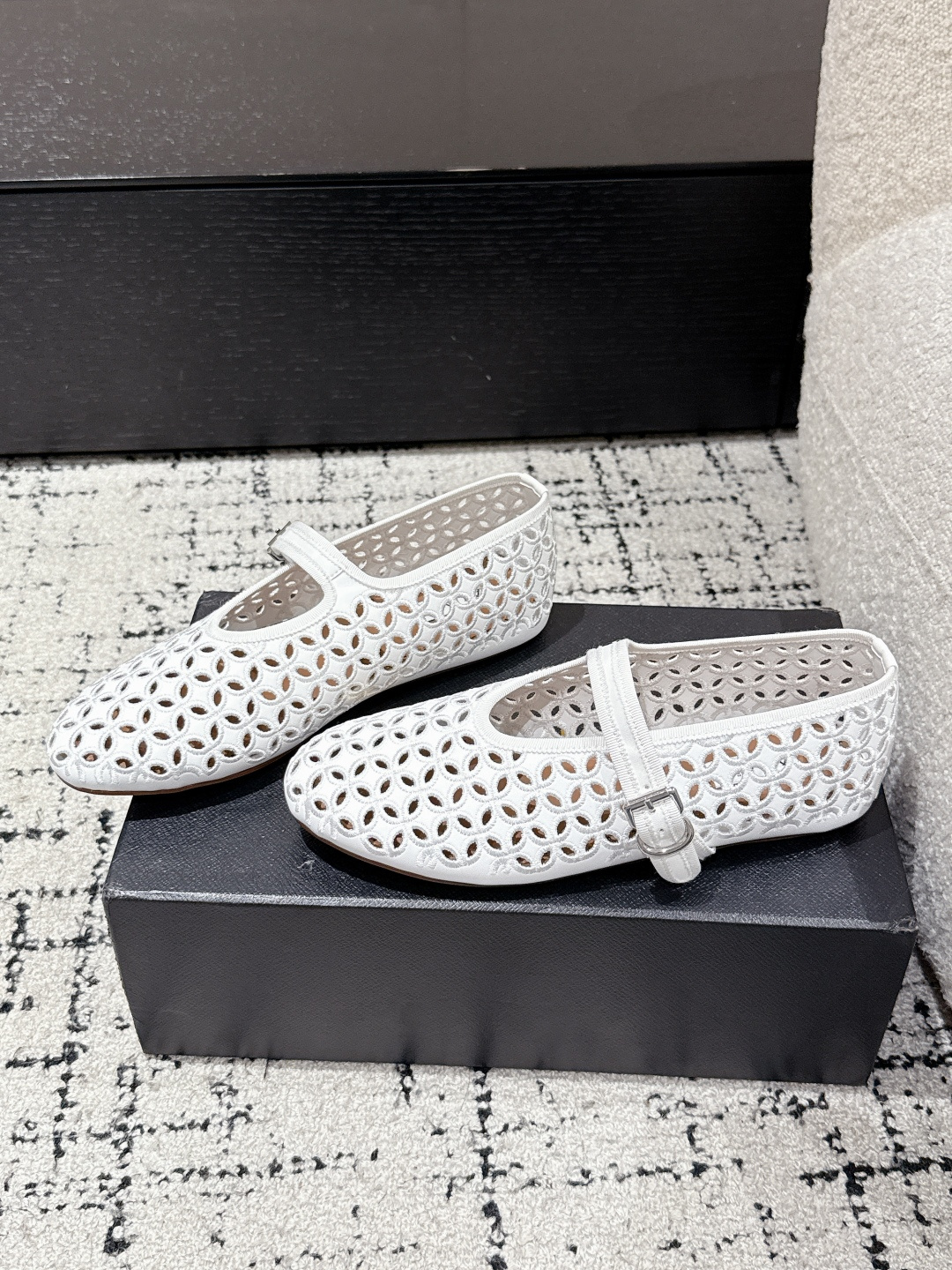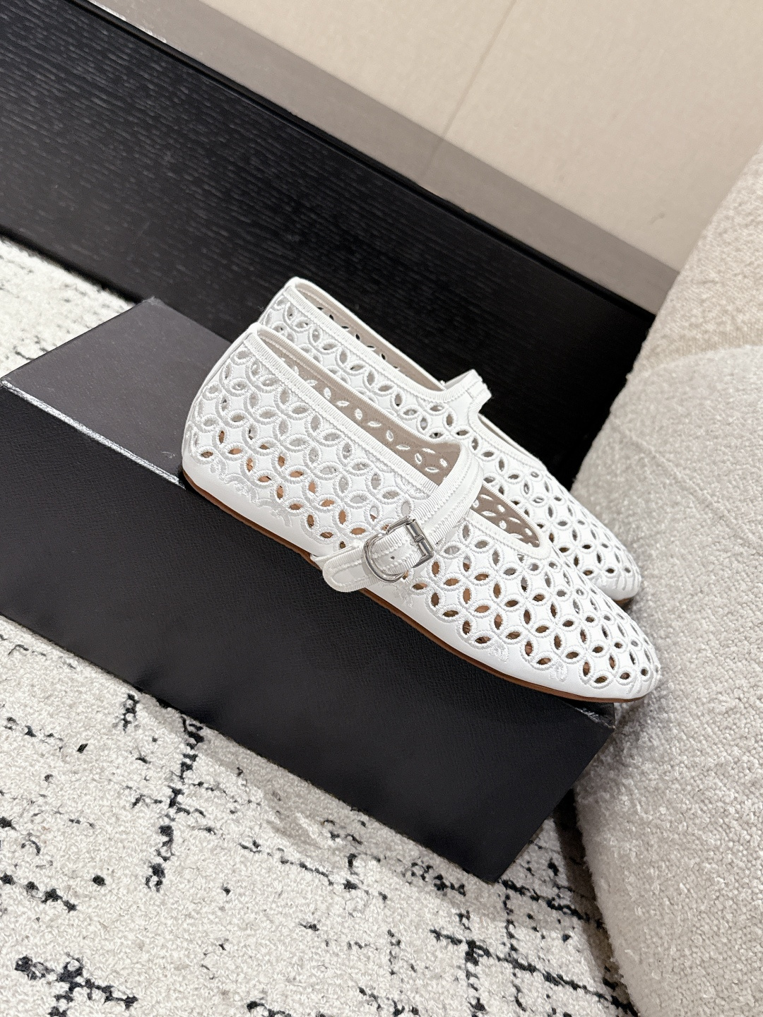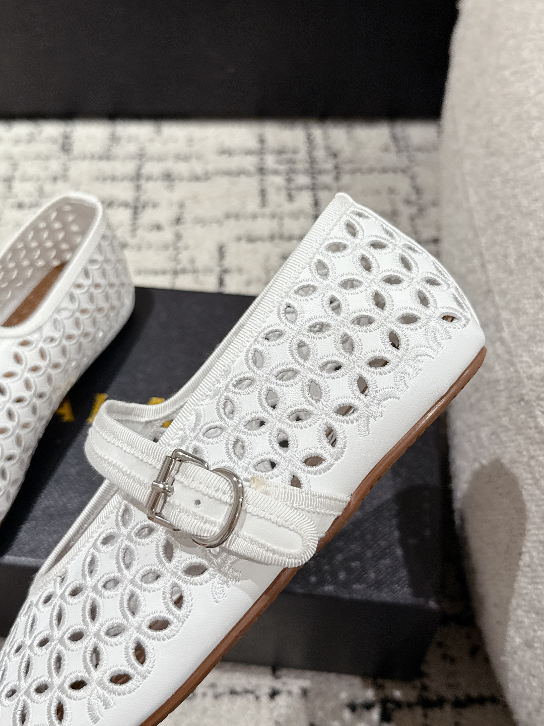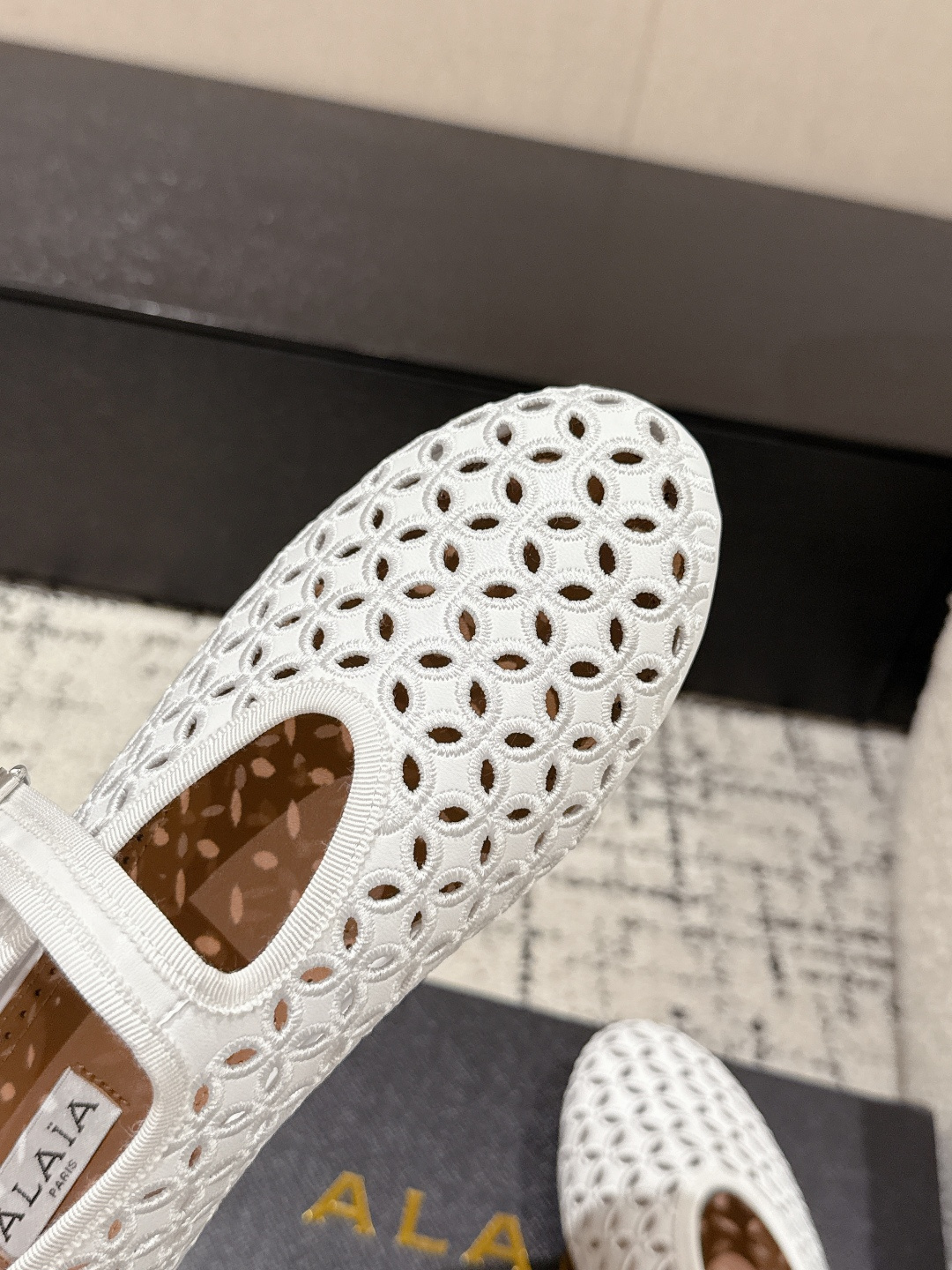 這款鞋子是AAAAA 1:1 質量(非常棒). 使用了和原版一模一樣的材料. 商標部分也保持了和Alaia一樣. 圖片拍攝是實物鞋子拍攝, 您所收到的實物保證和我們圖片一模一樣.