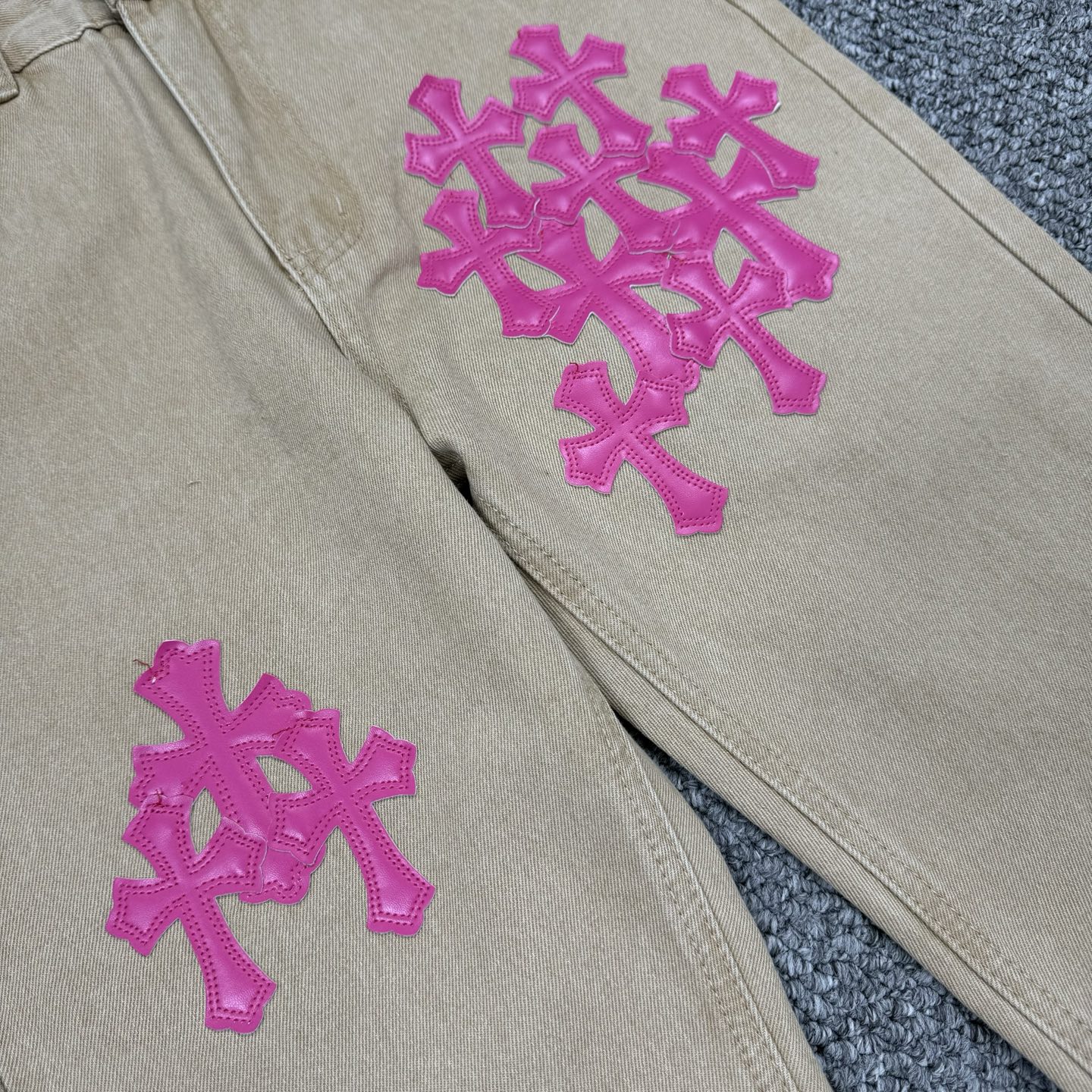 這款衣服是AAAAA 1:1 質量(非常棒). 使用了和原版一模一樣的材料. 商標部分也保持了和鉻心/Chrome Hearts一樣. 圖片拍攝是實物衣服拍攝, 您所收到的實物保證和我們圖片一模一樣.