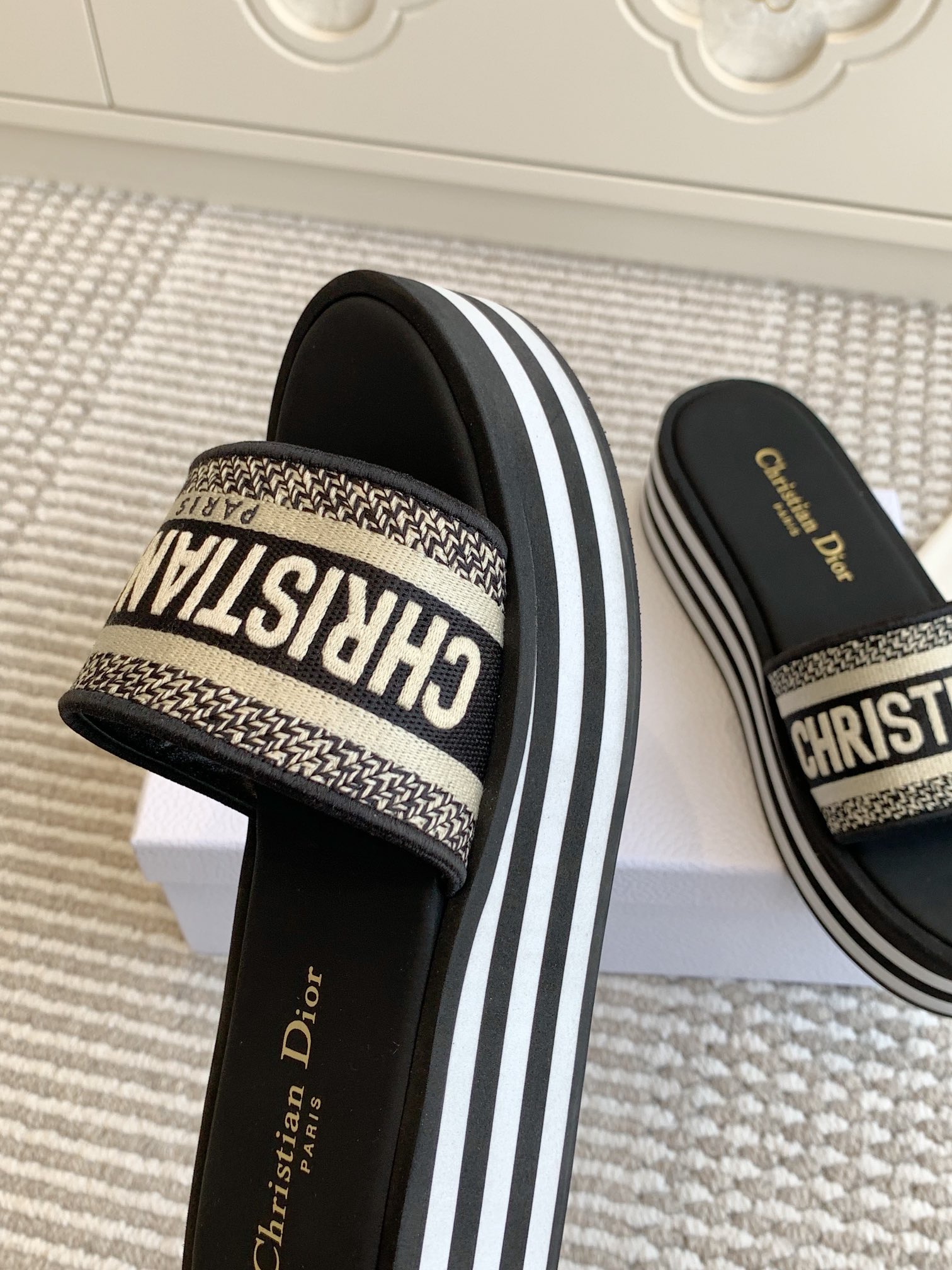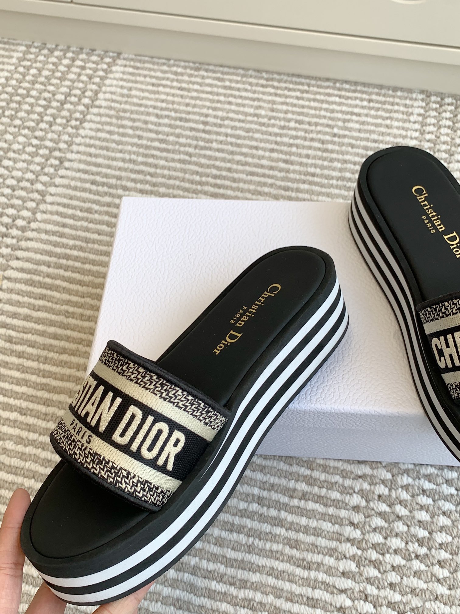 這款鞋子是AAAAA 1:1 質量(非常棒). 使用了和原版一模一樣的材料. 商標部分也保持了和迪奧/Dior一樣. 圖片拍攝是實物鞋子拍攝, 您所收到的實物保證和我們圖片一模一樣.