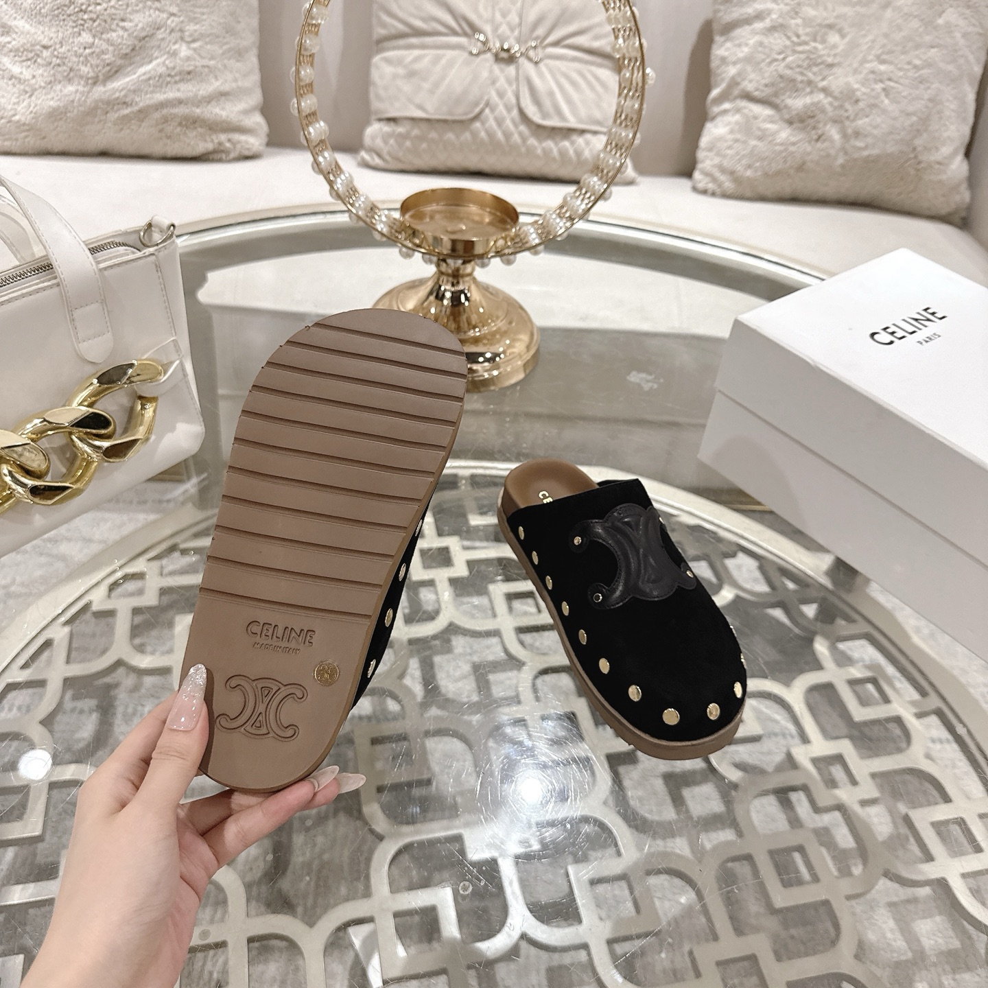 這款鞋子是AAAAA 1:1 質量(非常棒). 使用了和原版一模一樣的材料. 商標部分也保持了和思琳/赛琳/Celine一樣. 圖片拍攝是實物鞋子拍攝, 您所收到的實物保證和我們圖片一模一樣.