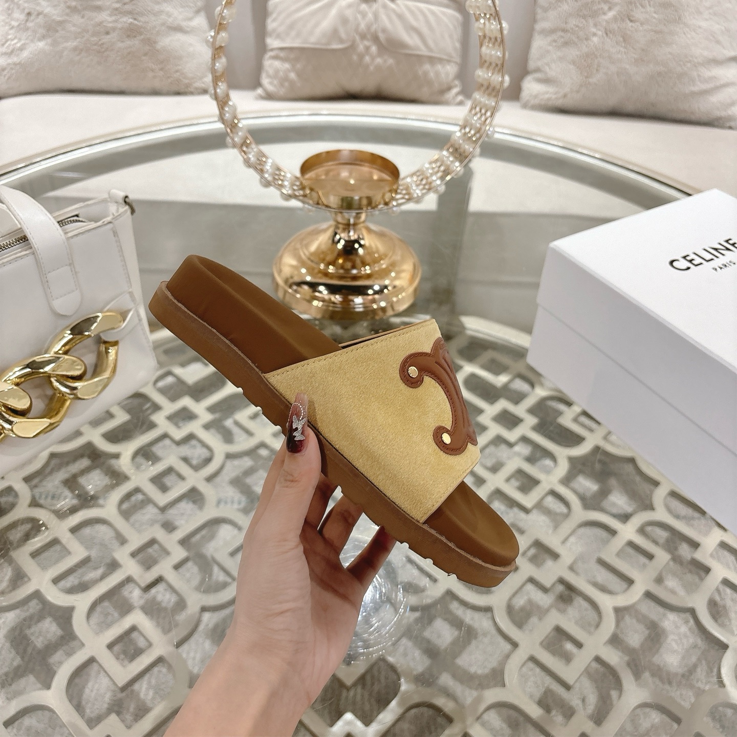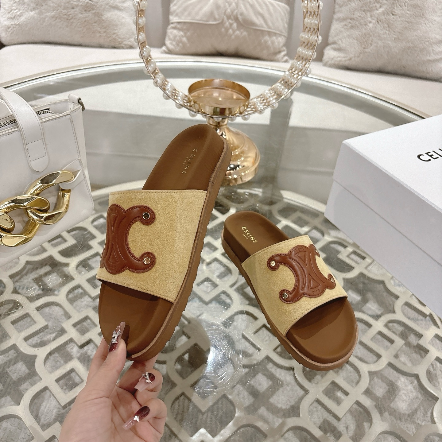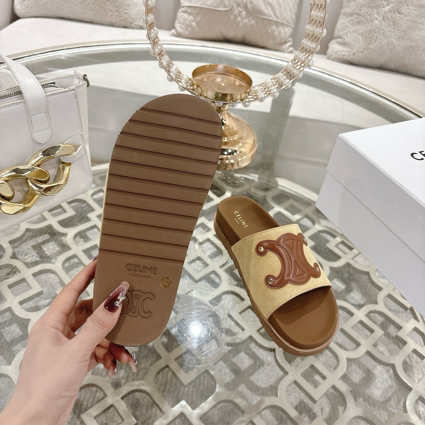 這款鞋子是AAAAA 1:1 質量(非常棒). 使用了和原版一模一樣的材料. 商標部分也保持了和思琳/赛琳/Celine一樣. 圖片拍攝是實物鞋子拍攝, 您所收到的實物保證和我們圖片一模一樣.