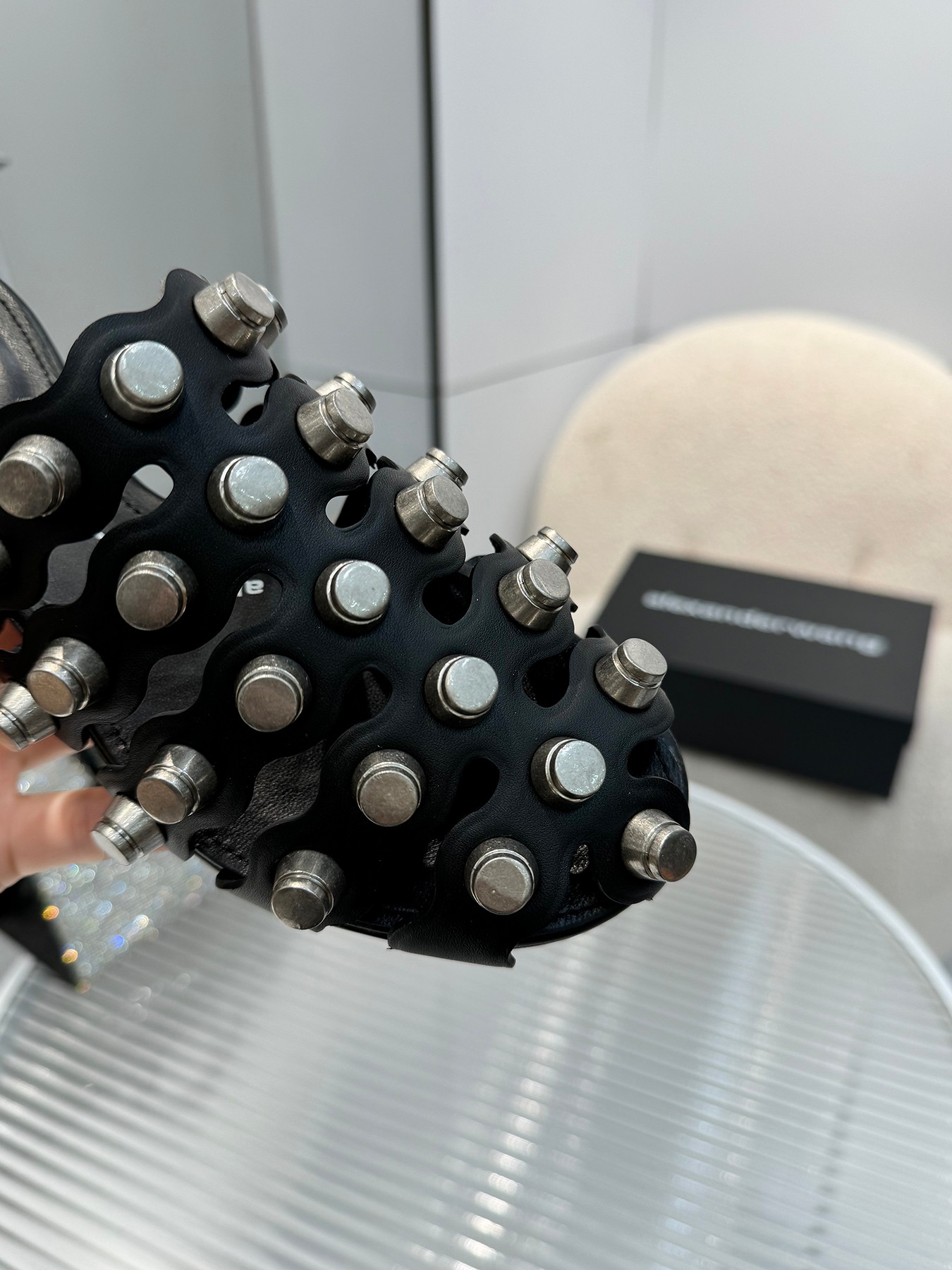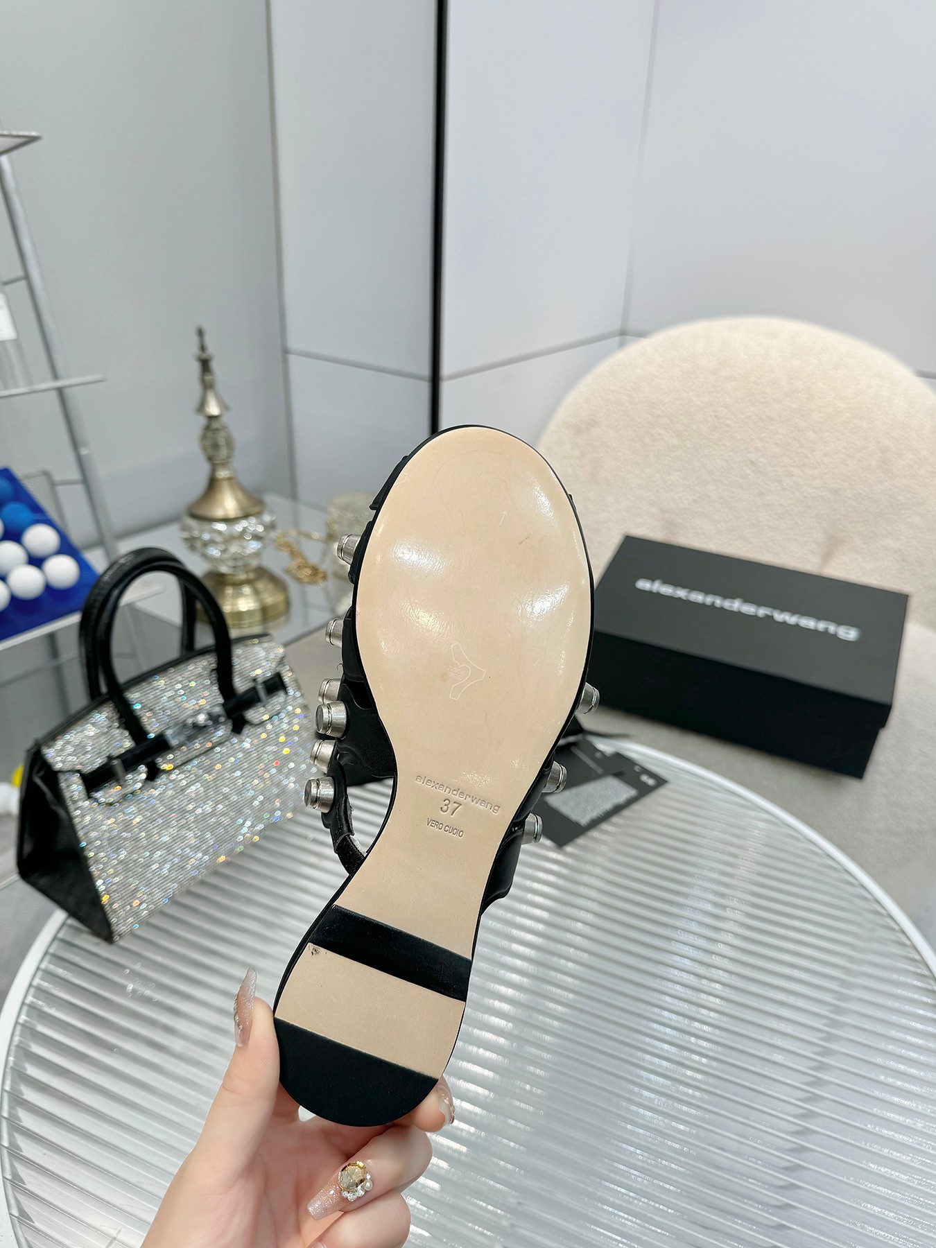 這款鞋子是AAAAA 1:1 質量(非常棒). 使用了和原版一模一樣的材料. 商標部分也保持了和Alexander Wang一樣. 圖片拍攝是實物鞋子拍攝, 您所收到的實物保證和我們圖片一模一樣.