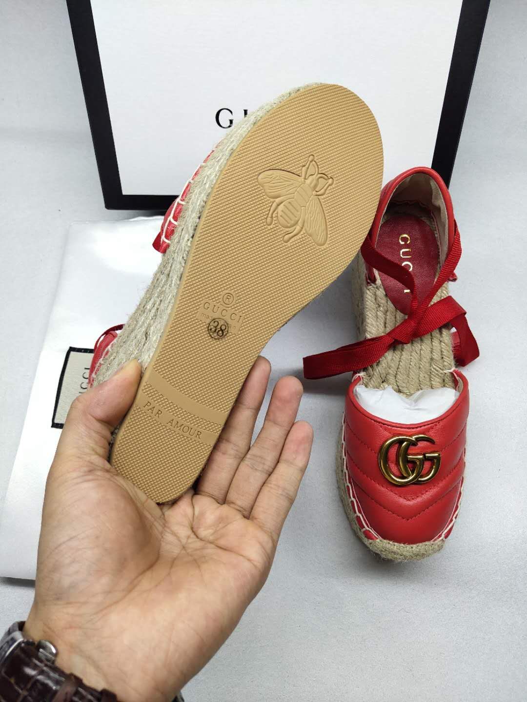 這款鞋子是AAAAA 1:1 質量(非常棒). 使用了和原版一模一樣的材料. 商標部分也保持了和古奇/Gucci一樣. 圖片拍攝是實物鞋子拍攝, 您所收到的實物保證和我們圖片一模一樣.