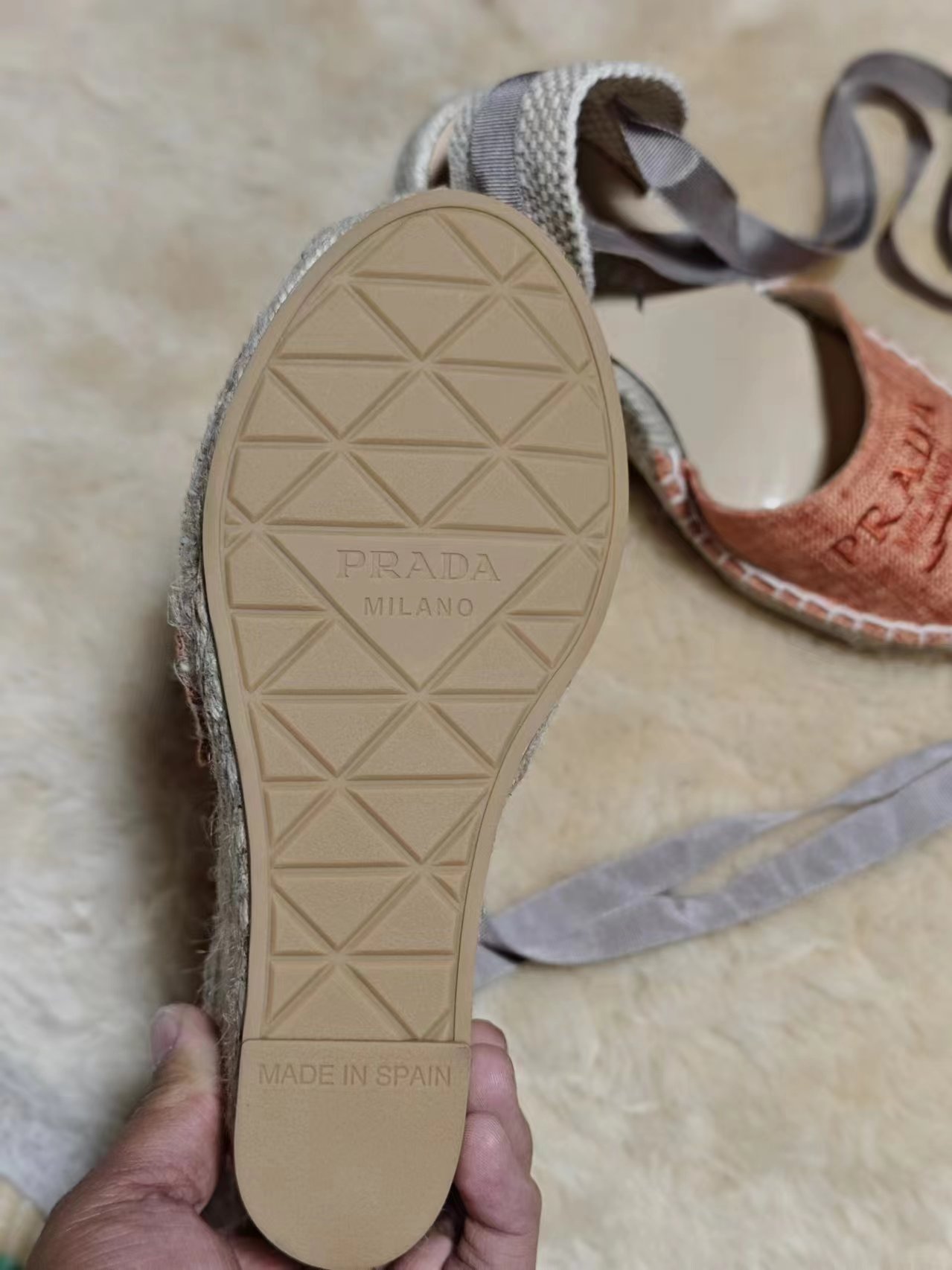 這款鞋子是AAAAA 1:1 質量(非常棒). 使用了和原版一模一樣的材料. 商標部分也保持了和普拉達/Prada一樣. 圖片拍攝是實物鞋子拍攝, 您所收到的實物保證和我們圖片一模一樣.