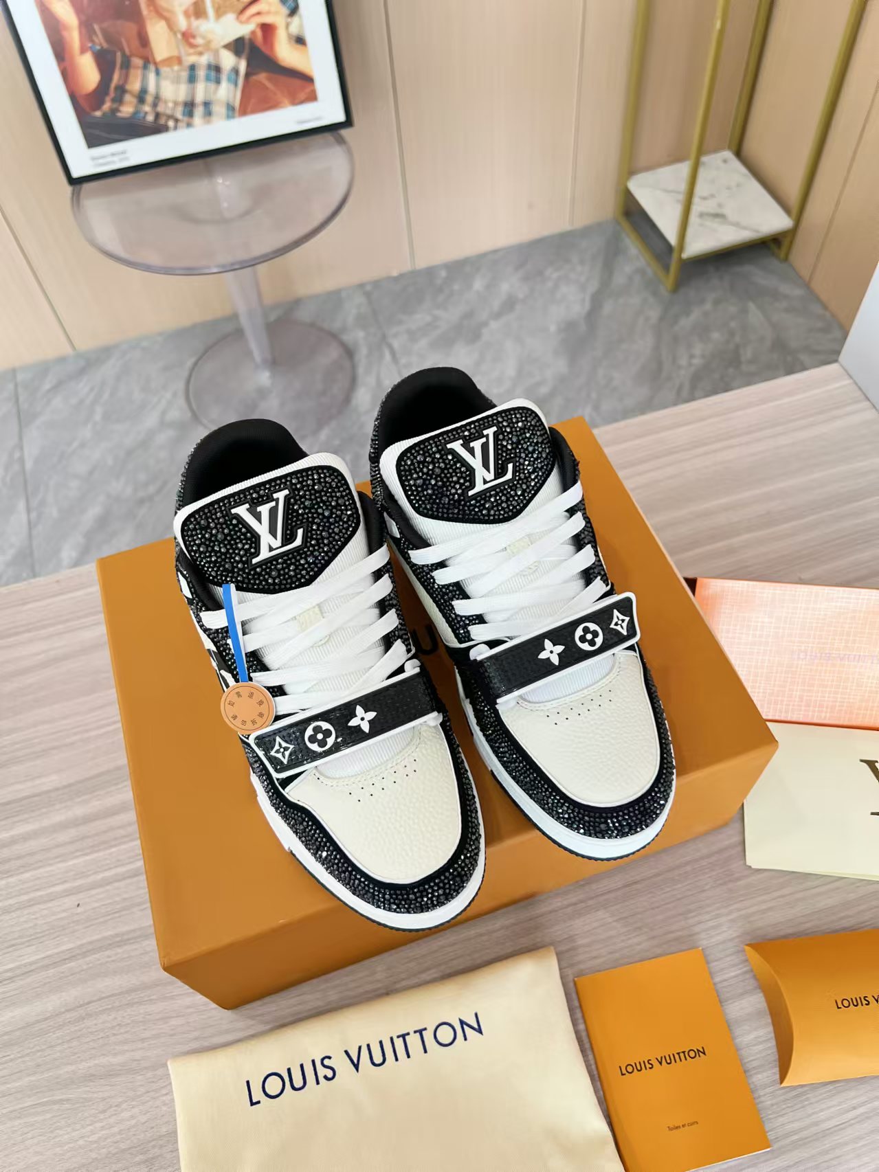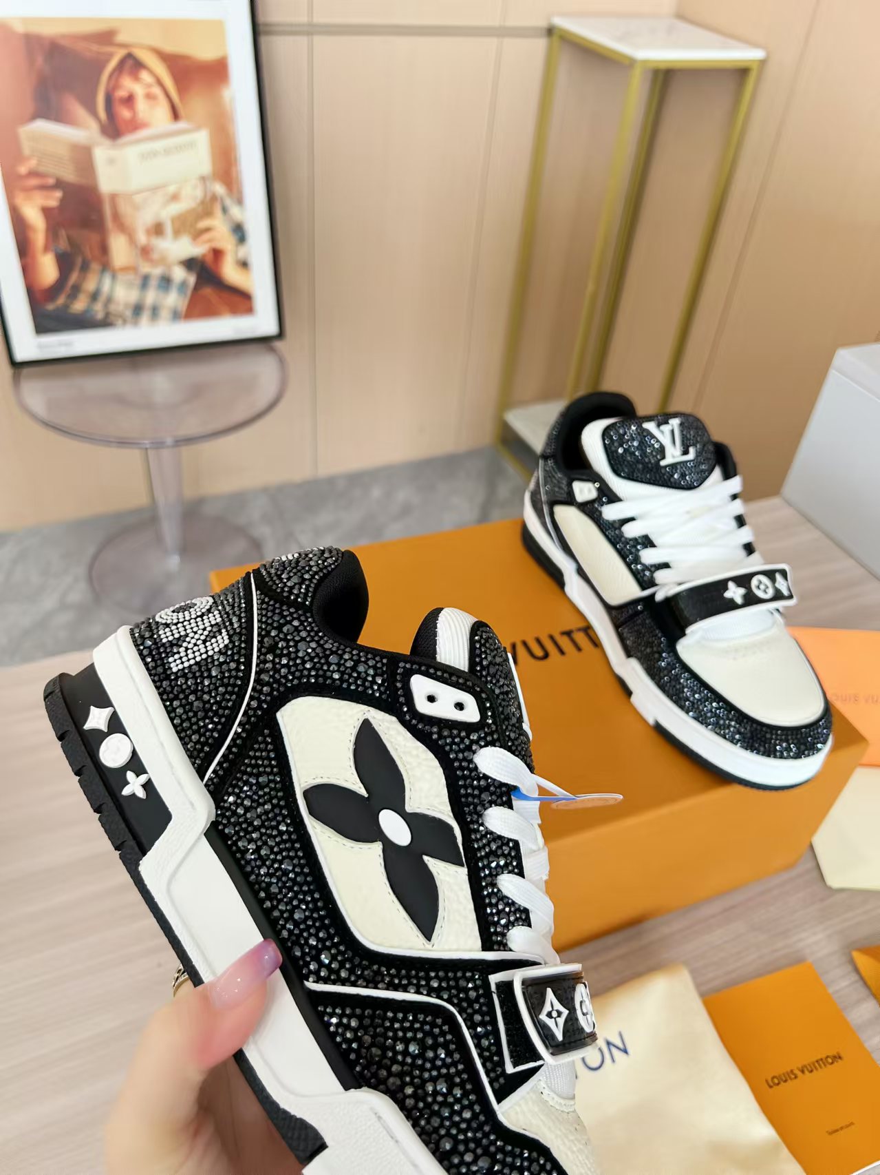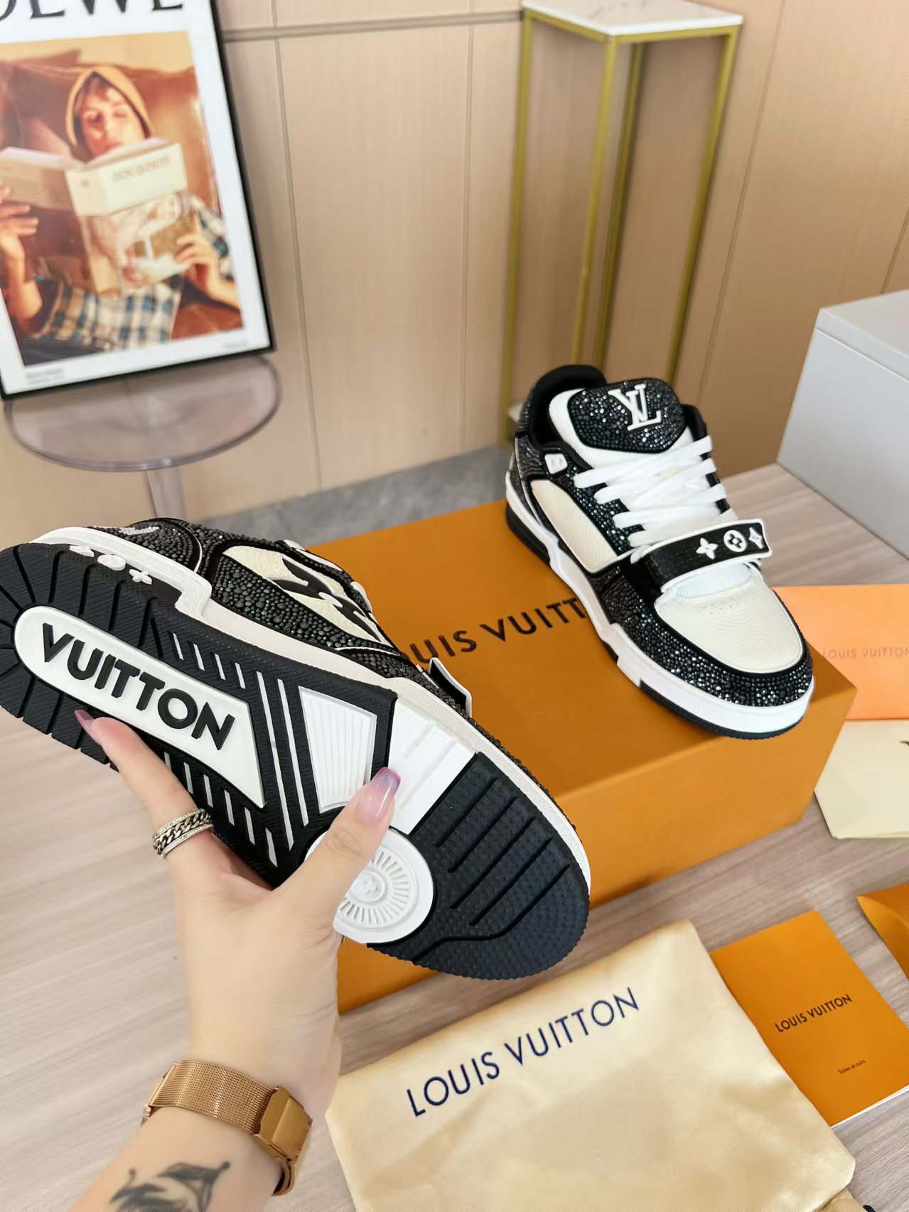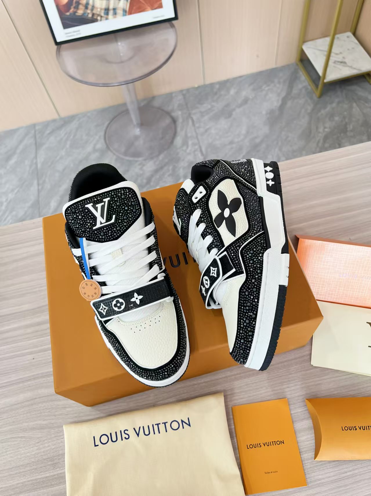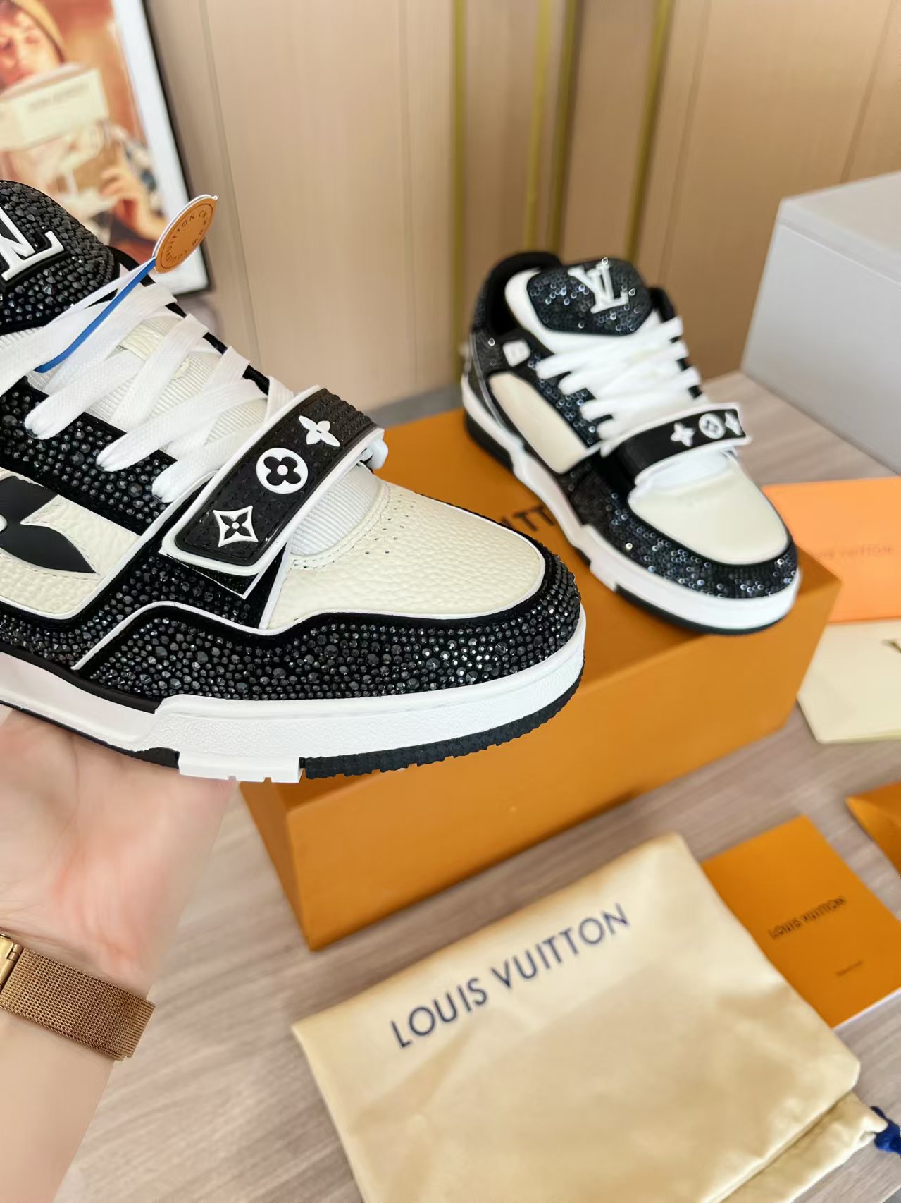 這款鞋子是AAAAA 1:1 質量(非常棒). 使用了和原版一模一樣的材料. 商標部分也保持了和路易威登/Louis Vuitton一樣. 圖片拍攝是實物鞋子拍攝, 您所收到的實物保證和我們圖片一模一樣.