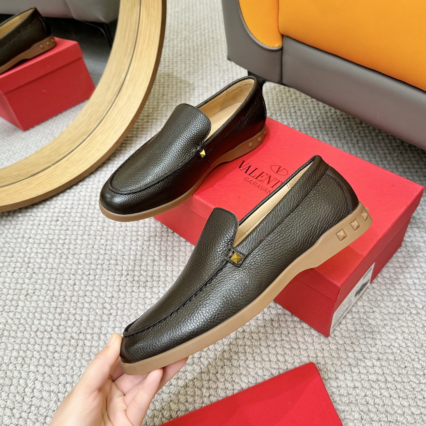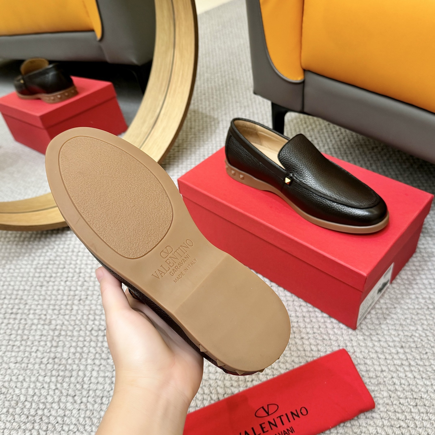 這款鞋子是AAAAA 1:1 質量(非常棒). 使用了和原版一模一樣的材料. 商標部分也保持了和瓦倫蒂諾/Valentino一樣. 圖片拍攝是實物鞋子拍攝, 您所收到的實物保證和我們圖片一模一樣.