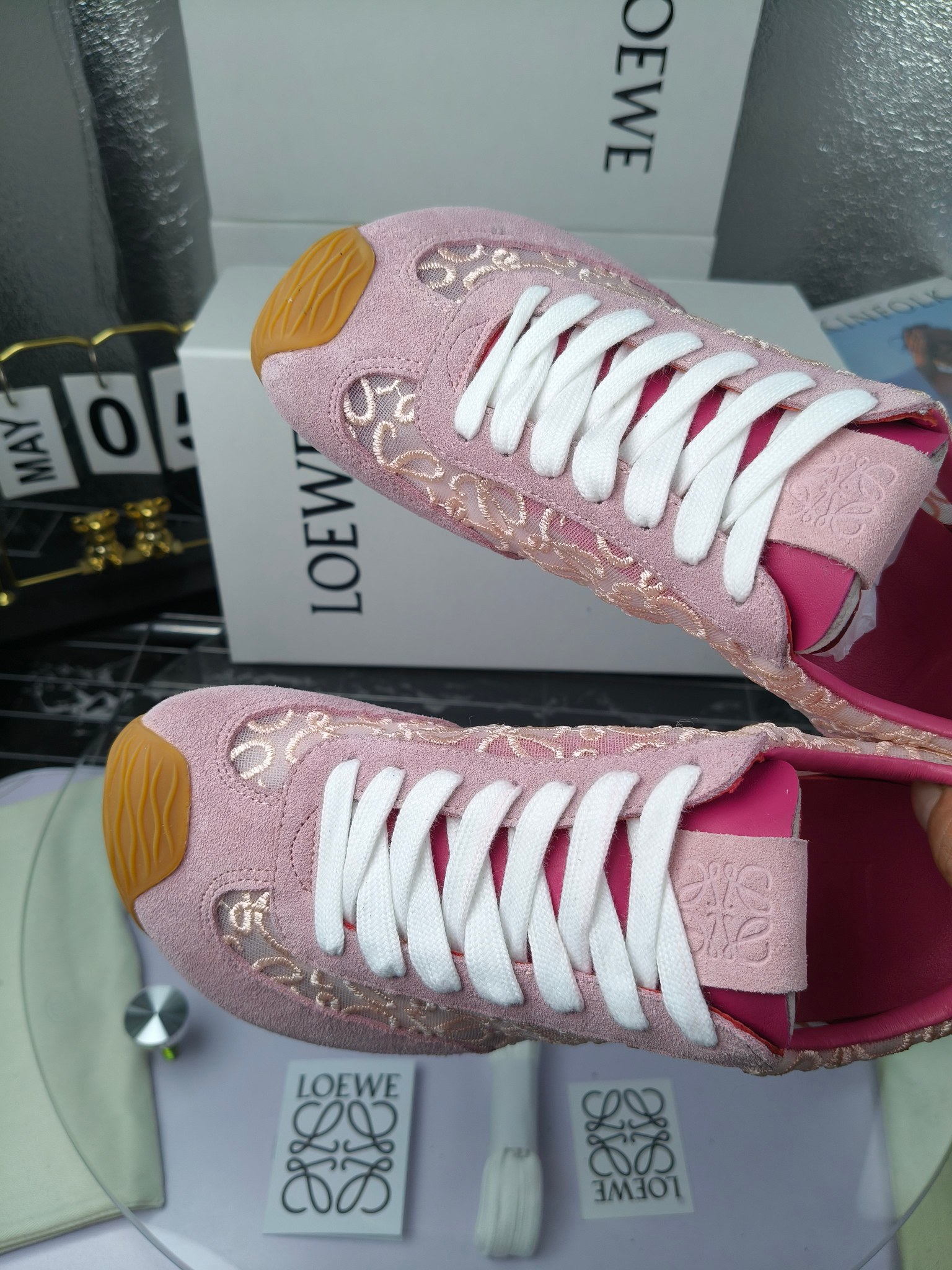 這款鞋子是AAAAA 1:1 質量(非常棒). 使用了和原版一模一樣的材料. 商標部分也保持了和Loewe一樣. 圖片拍攝是實物鞋子拍攝, 您所收到的實物保證和我們圖片一模一樣.