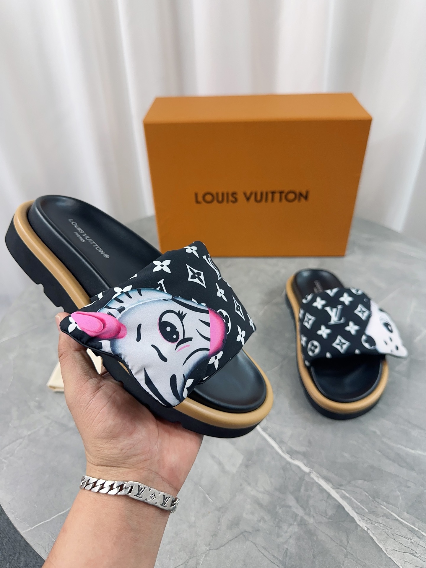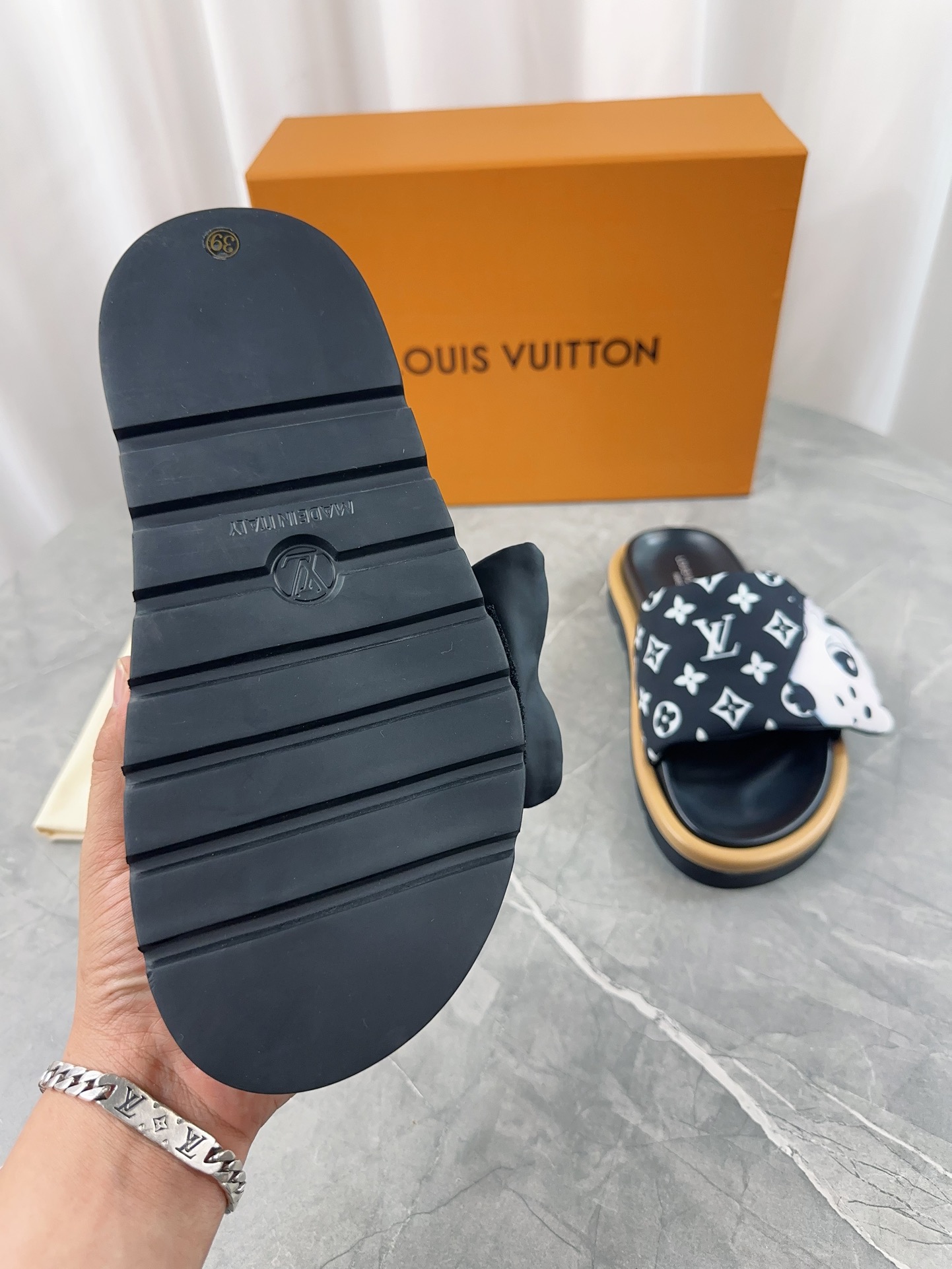 這款鞋子是AAAAA 1:1 質量(非常棒). 使用了和原版一模一樣的材料. 商標部分也保持了和路易威登/Louis Vuitton一樣. 圖片拍攝是實物鞋子拍攝, 您所收到的實物保證和我們圖片一模一樣.