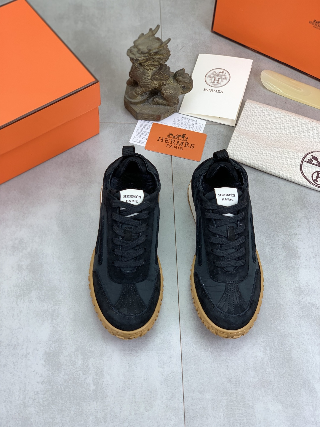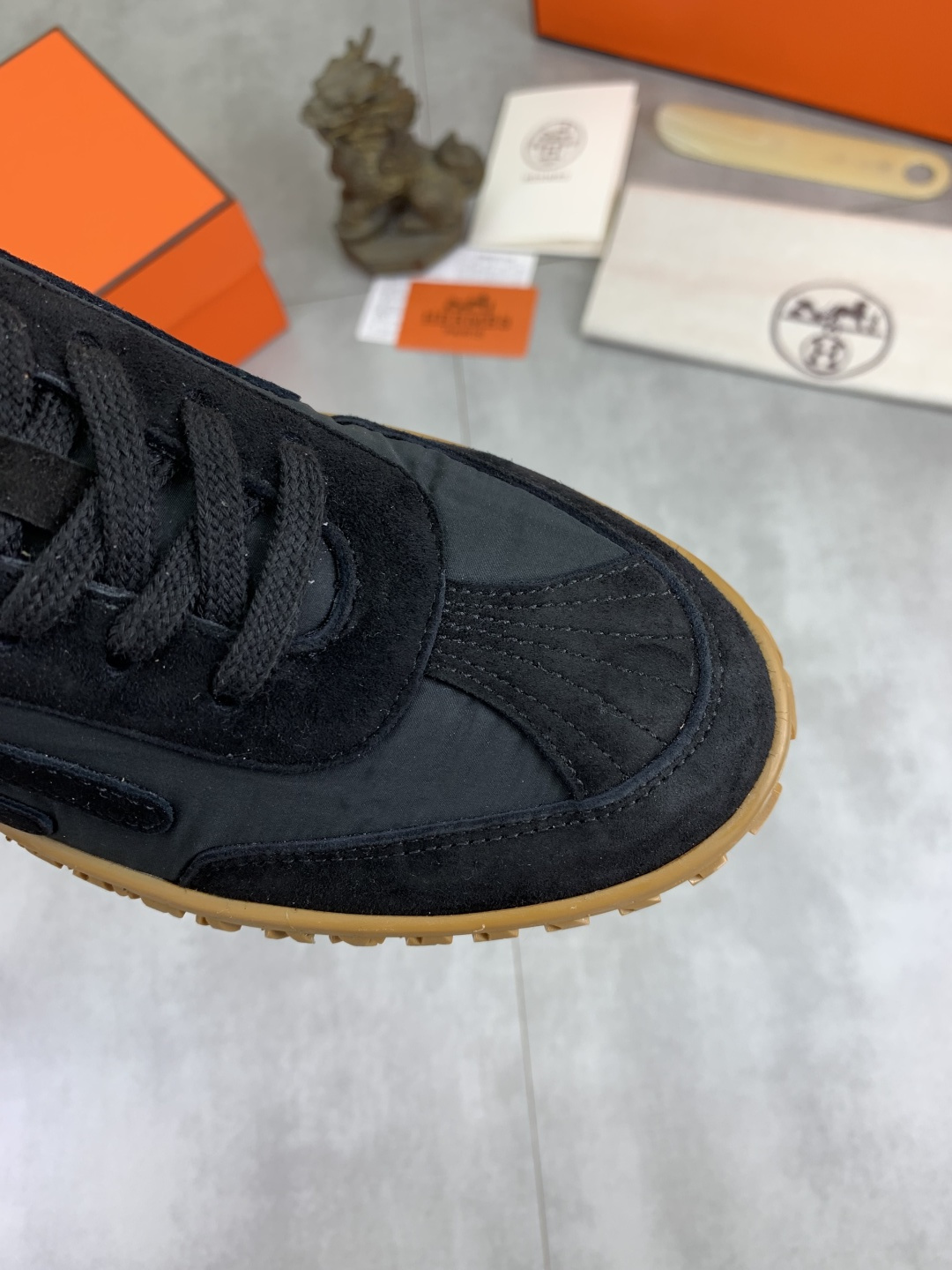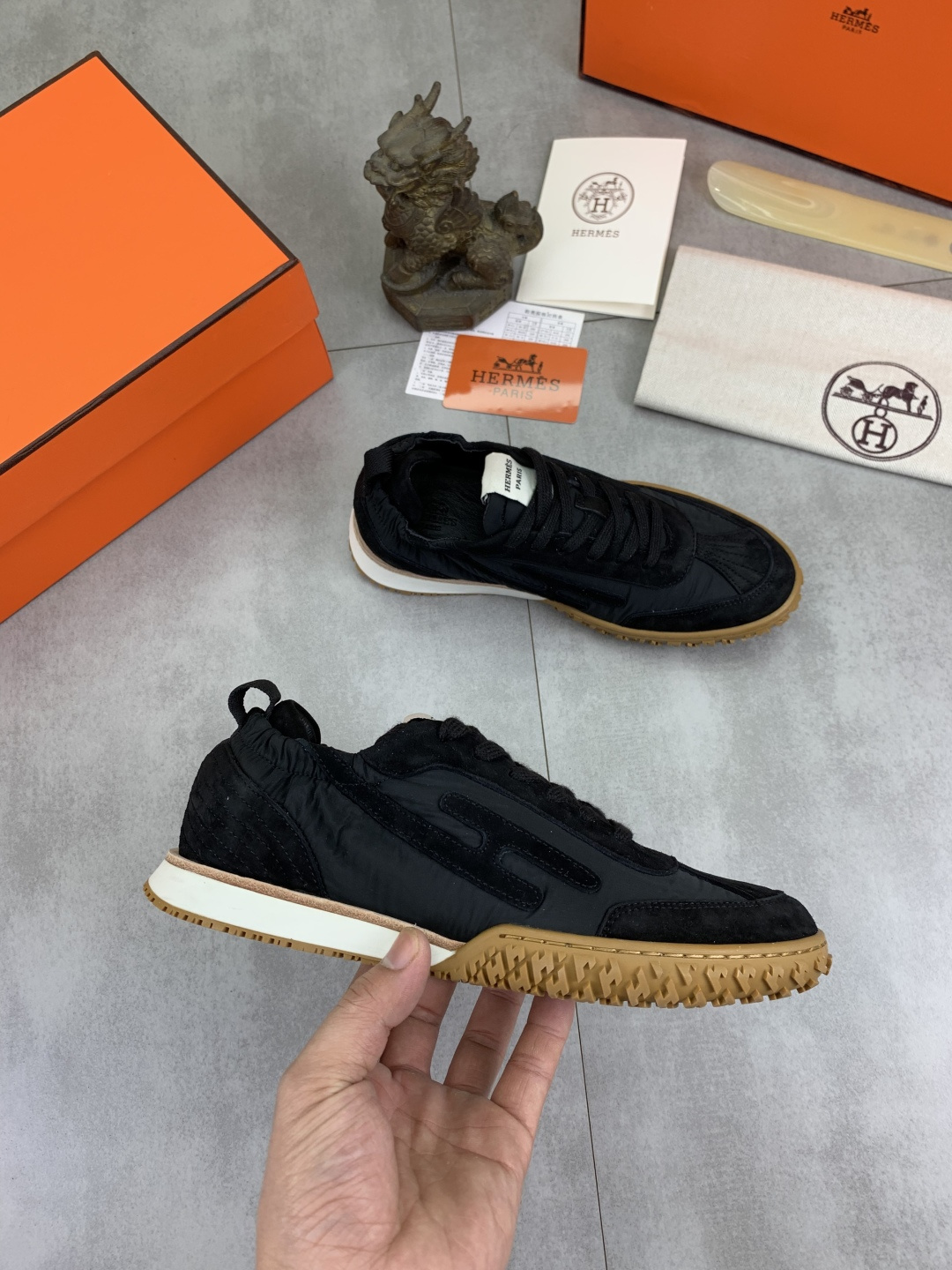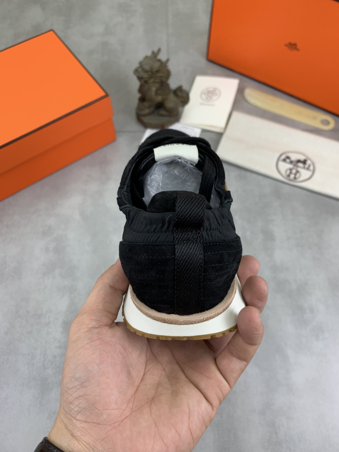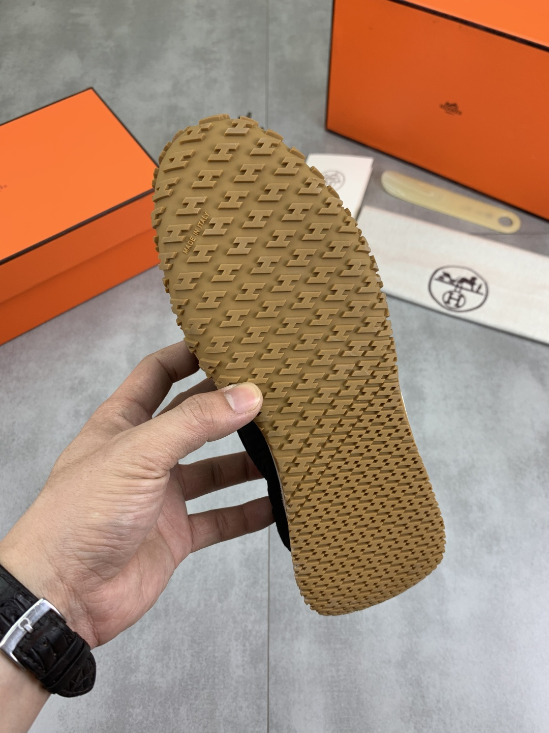 這款鞋子是AAAAA 1:1 質量(非常棒). 使用了和原版一模一樣的材料. 商標部分也保持了和愛馬仕/Hermes一樣. 圖片拍攝是實物鞋子拍攝, 您所收到的實物保證和我們圖片一模一樣.