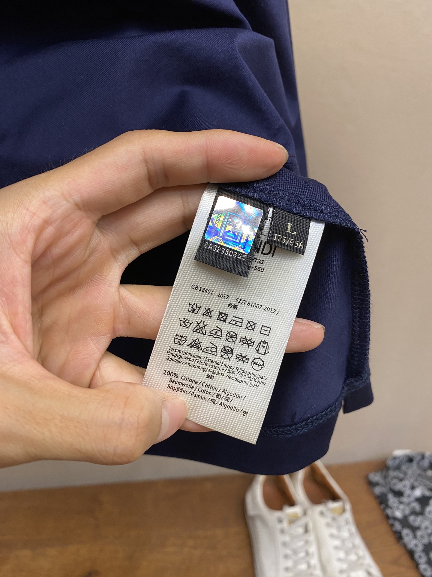 這款衣服是AAAAA 1:1 質量(非常棒). 使用了和原版一模一樣的材料. 商標部分也保持了和芬迪/Fendi一樣. 圖片拍攝是實物衣服拍攝, 您所收到的實物保證和我們圖片一模一樣.
