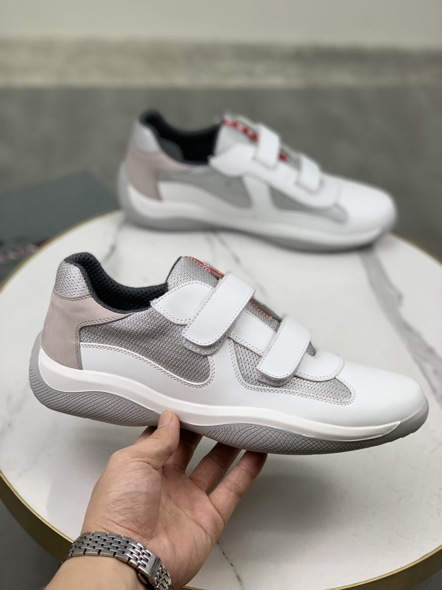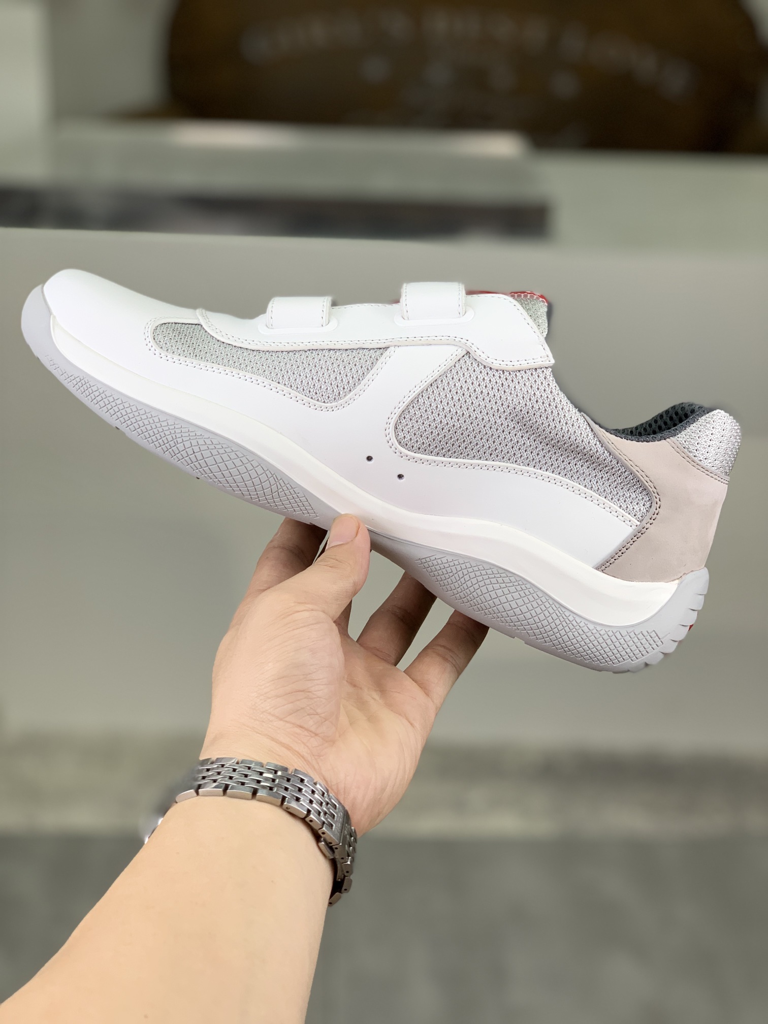 這款鞋子是AAAAA 1:1 質量(非常棒). 使用了和原版一模一樣的材料. 商標部分也保持了和普拉達/Prada一樣. 圖片拍攝是實物鞋子拍攝, 您所收到的實物保證和我們圖片一模一樣.