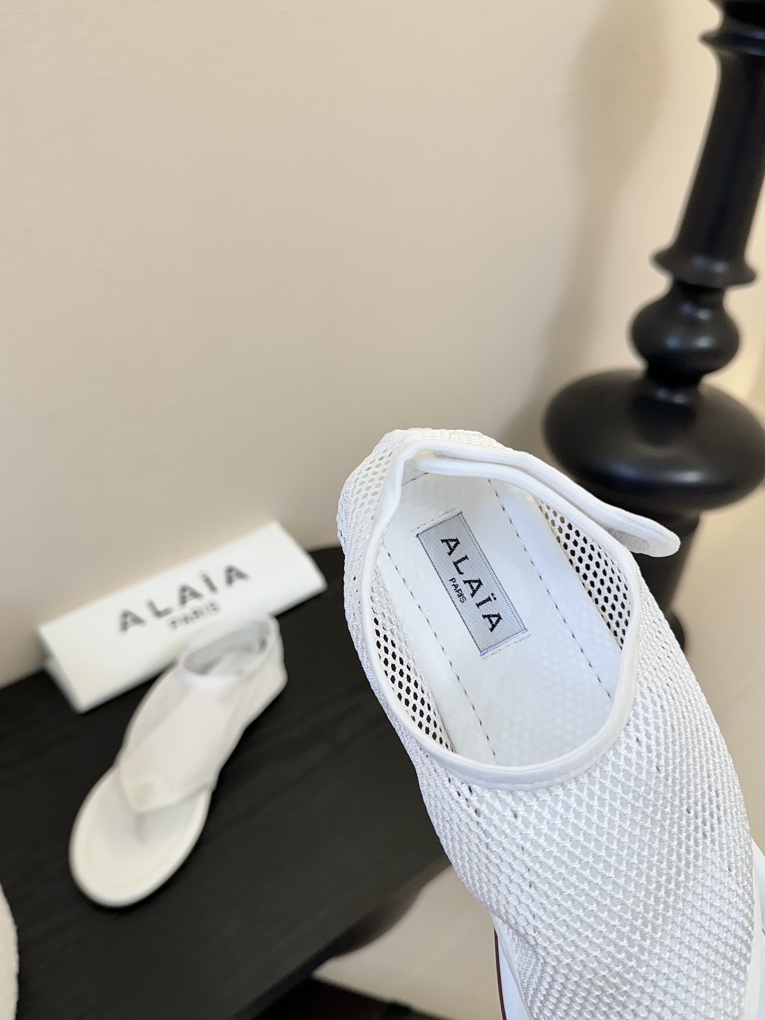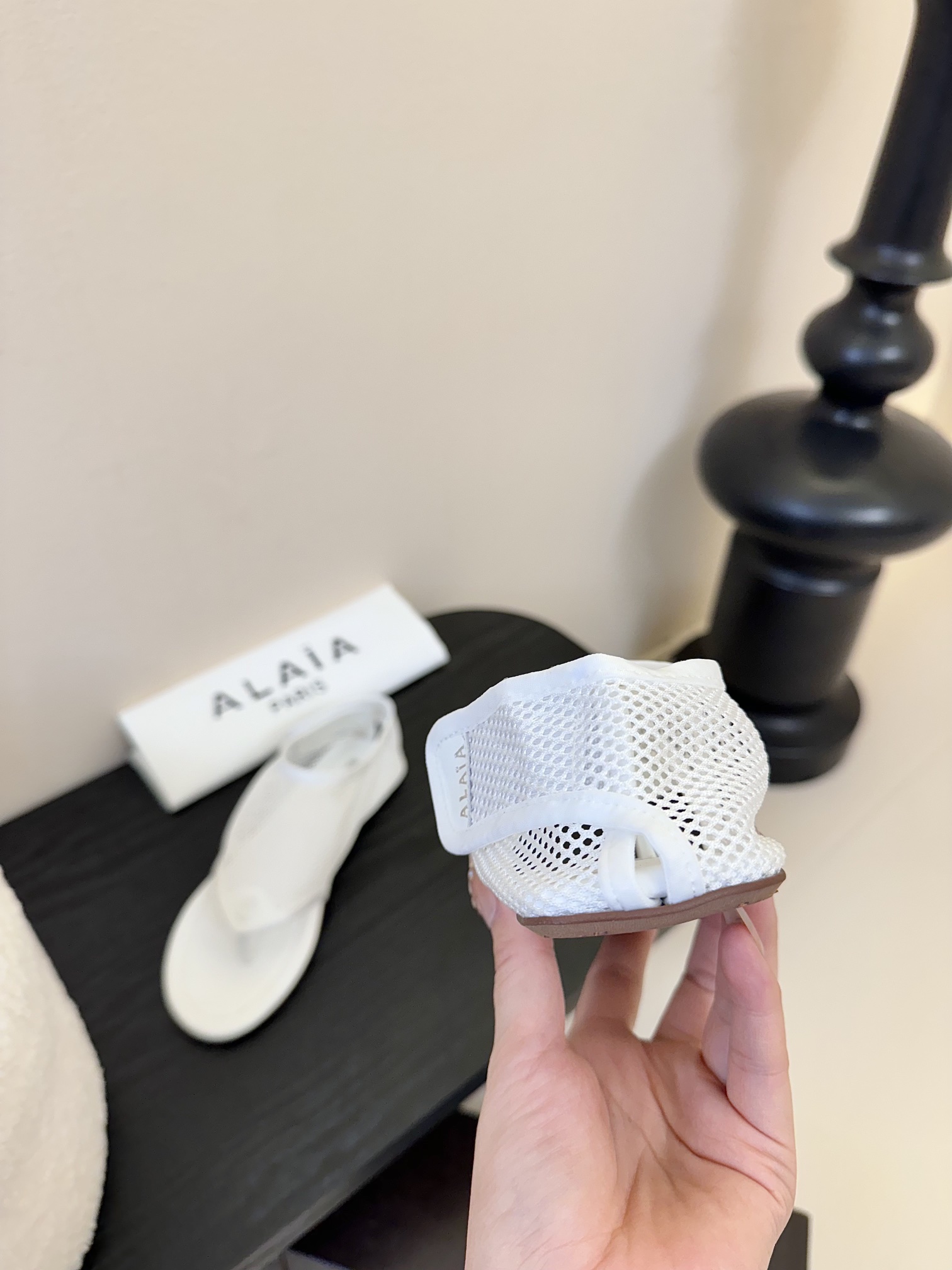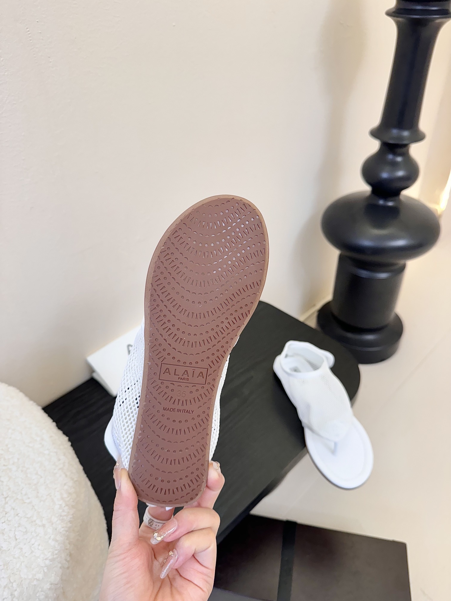 這款鞋子是AAAAA 1:1 質量(非常棒). 使用了和原版一模一樣的材料. 商標部分也保持了和Alaia一樣. 圖片拍攝是實物鞋子拍攝, 您所收到的實物保證和我們圖片一模一樣.