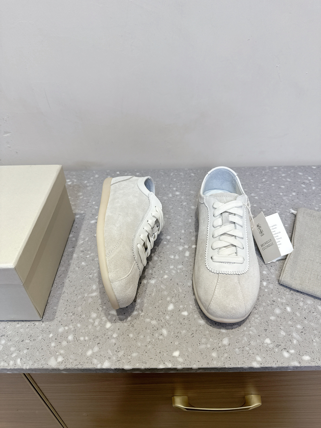 這款鞋子是AAAAA 1:1 質量(非常棒). 使用了和原版一模一樣的材料. 商標部分也保持了和Brunello Cucinelli一樣. 圖片拍攝是實物鞋子拍攝, 您所收到的實物保證和我們圖片一模一樣.
