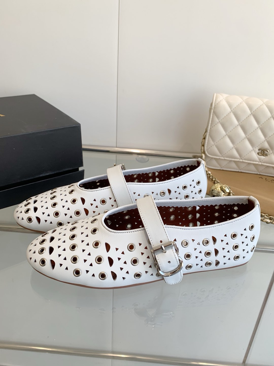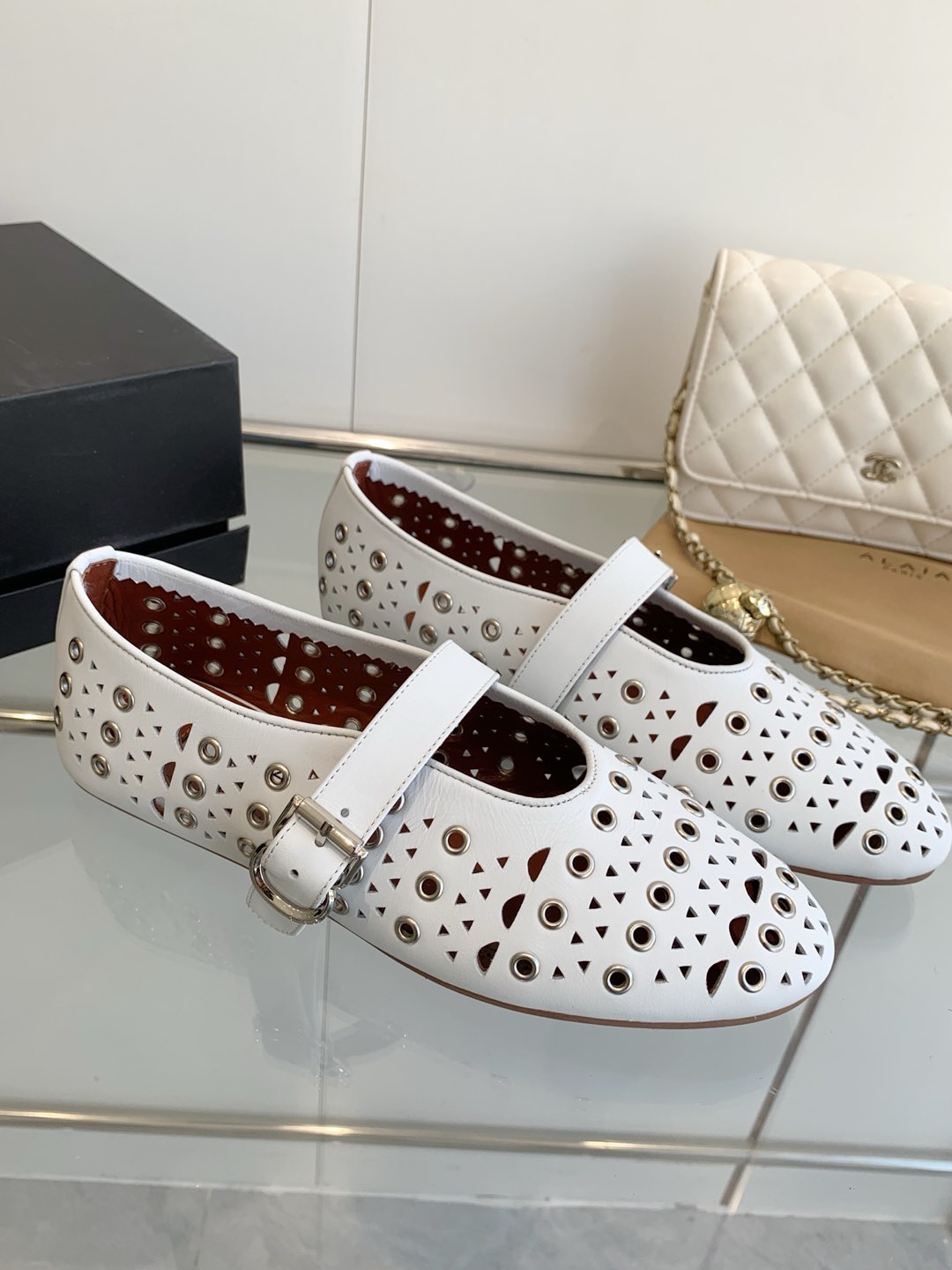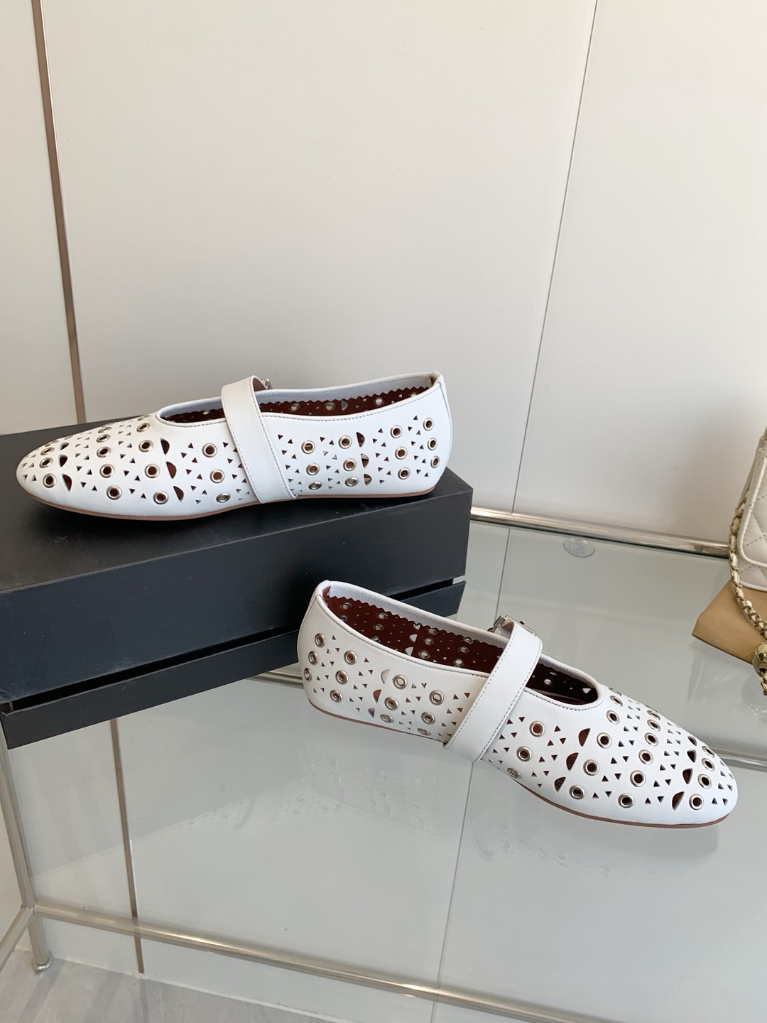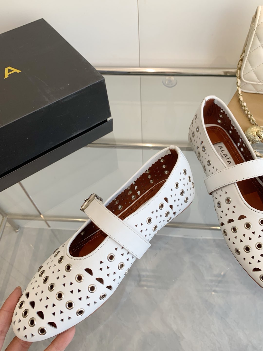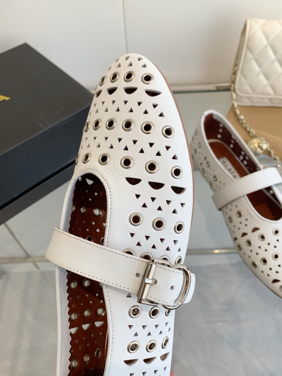 這款鞋子是AAAAA 1:1 質量(非常棒). 使用了和原版一模一樣的材料. 商標部分也保持了和Alaia一樣. 圖片拍攝是實物鞋子拍攝, 您所收到的實物保證和我們圖片一模一樣.