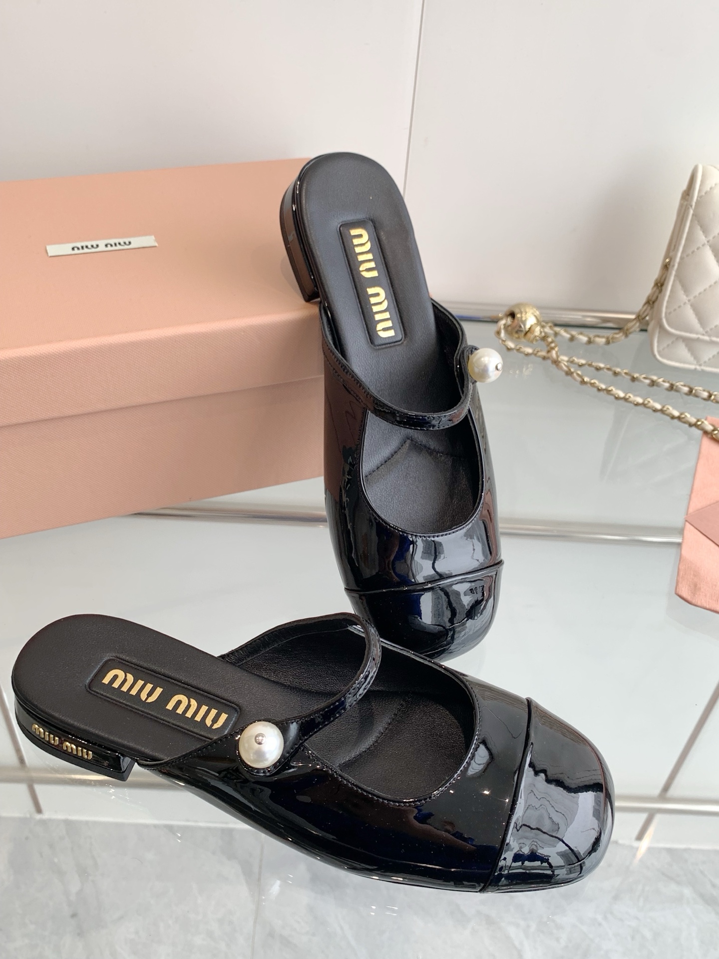 這款鞋子是AAAAA 1:1 質量(非常棒). 使用了和原版一模一樣的材料. 商標部分也保持了和繆繆/Miu Miu一樣. 圖片拍攝是實物鞋子拍攝, 您所收到的實物保證和我們圖片一模一樣.