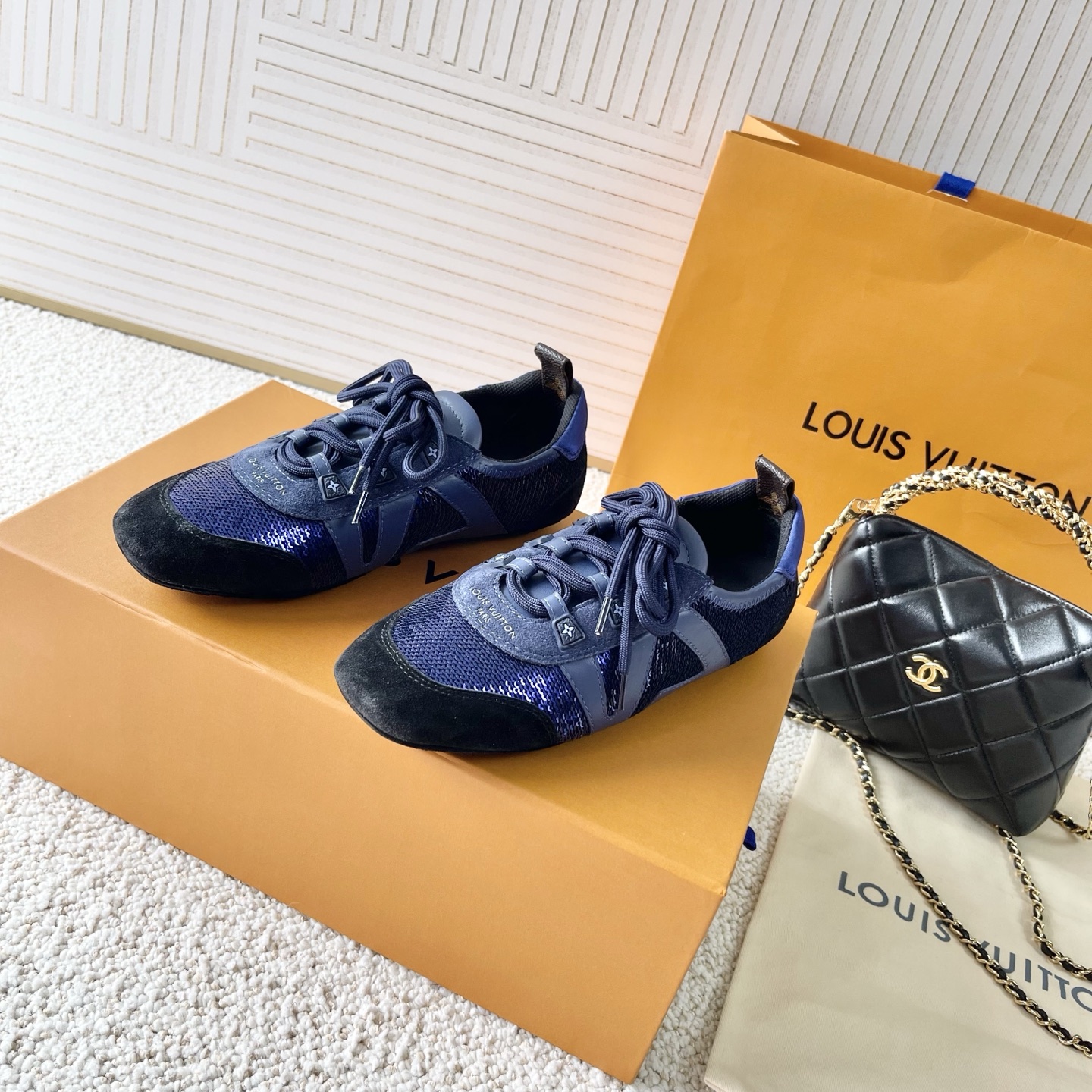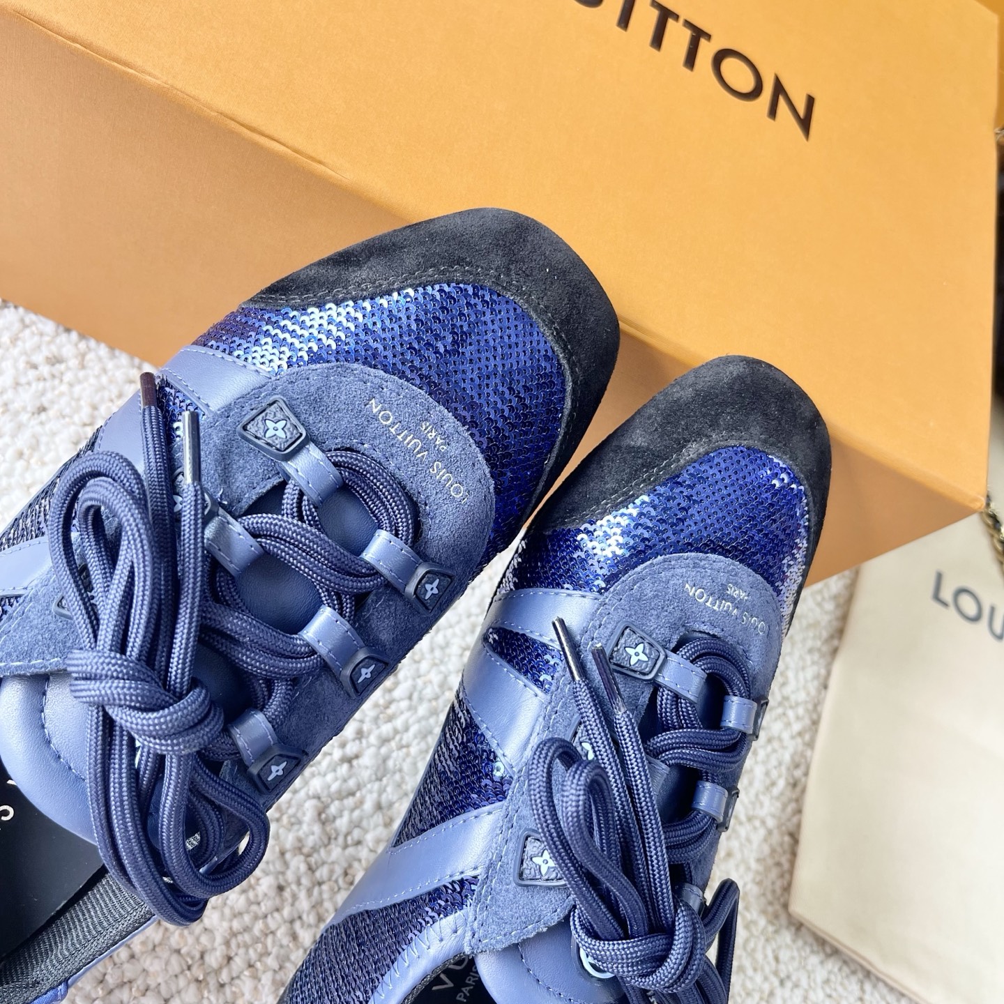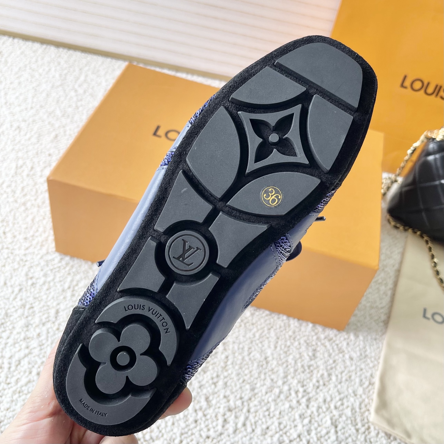 這款鞋子是AAAAA 1:1 質量(非常棒). 使用了和原版一模一樣的材料. 商標部分也保持了和路易威登/Louis Vuitton一樣. 圖片拍攝是實物鞋子拍攝, 您所收到的實物保證和我們圖片一模一樣.