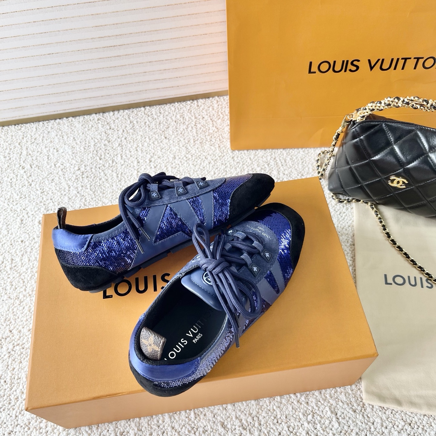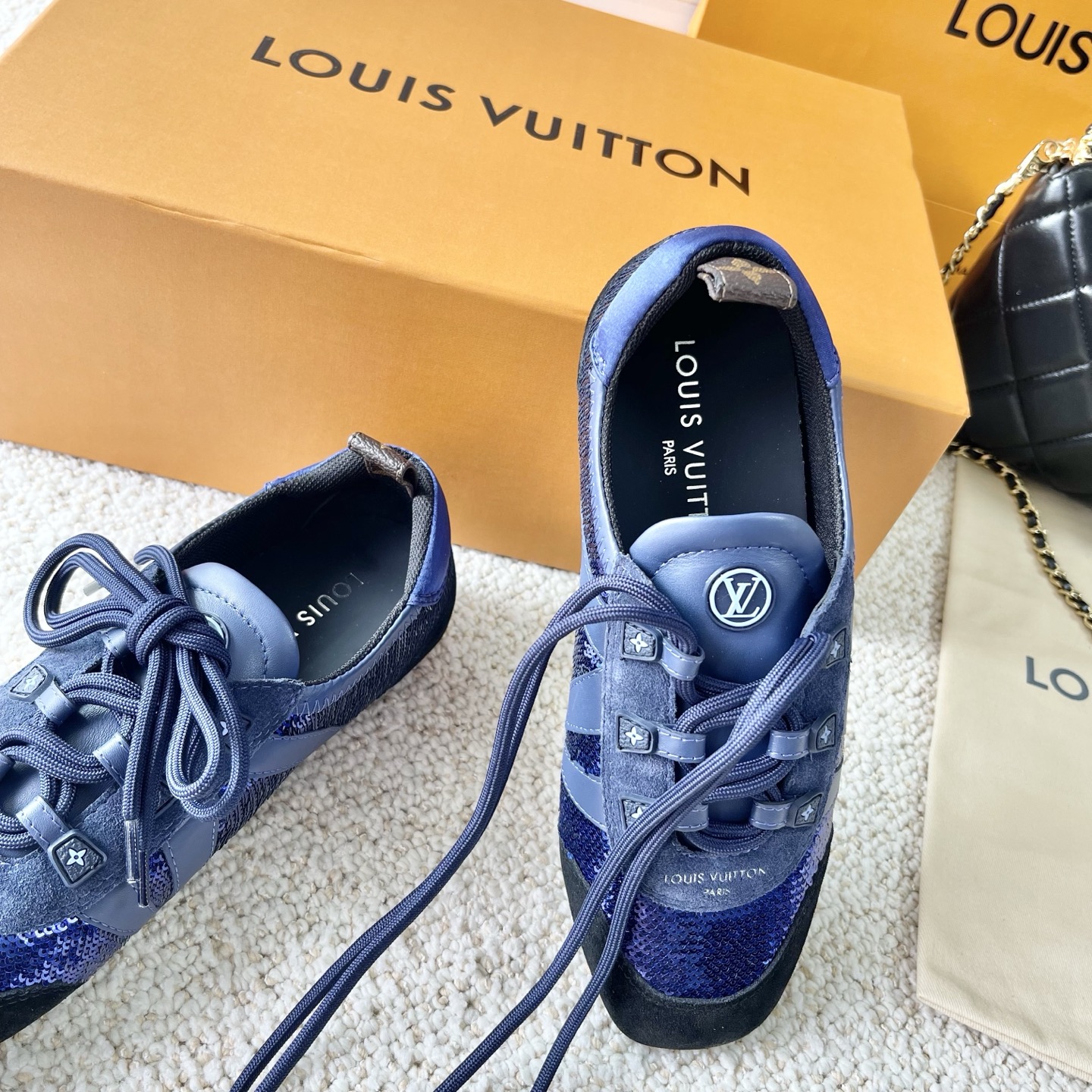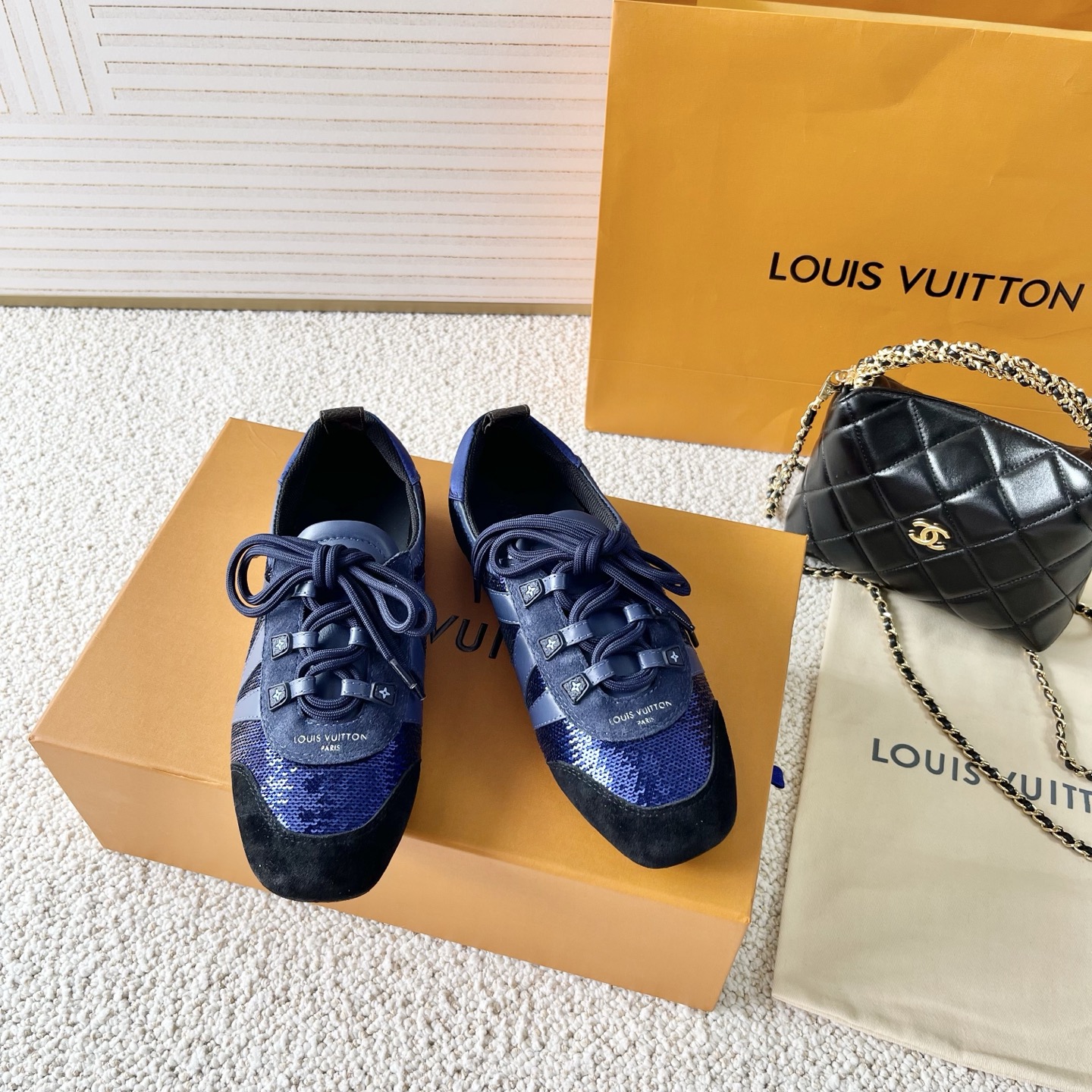 這款鞋子是AAAAA 1:1 質量(非常棒). 使用了和原版一模一樣的材料. 商標部分也保持了和路易威登/Louis Vuitton一樣. 圖片拍攝是實物鞋子拍攝, 您所收到的實物保證和我們圖片一模一樣.