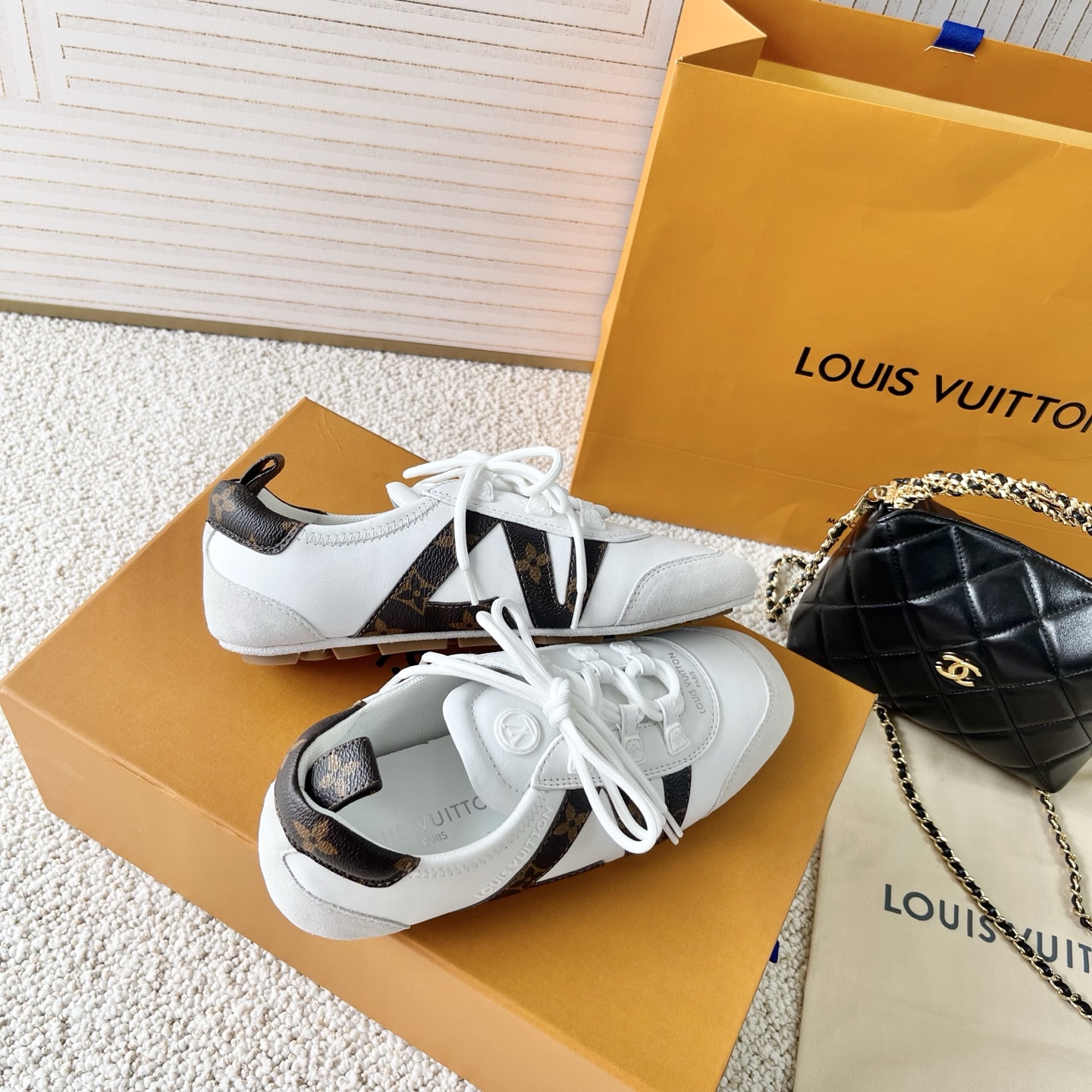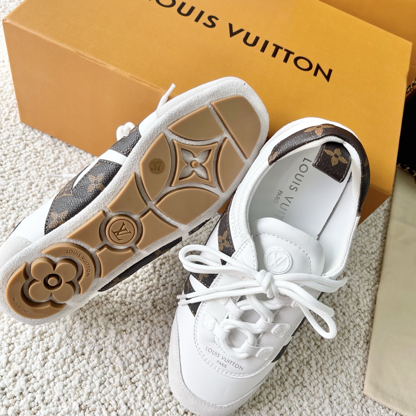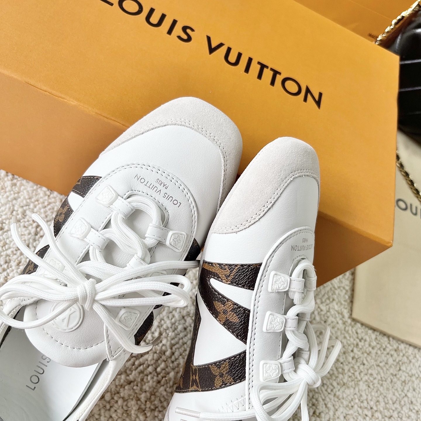 這款鞋子是AAAAA 1:1 質量(非常棒). 使用了和原版一模一樣的材料. 商標部分也保持了和路易威登/Louis Vuitton一樣. 圖片拍攝是實物鞋子拍攝, 您所收到的實物保證和我們圖片一模一樣.