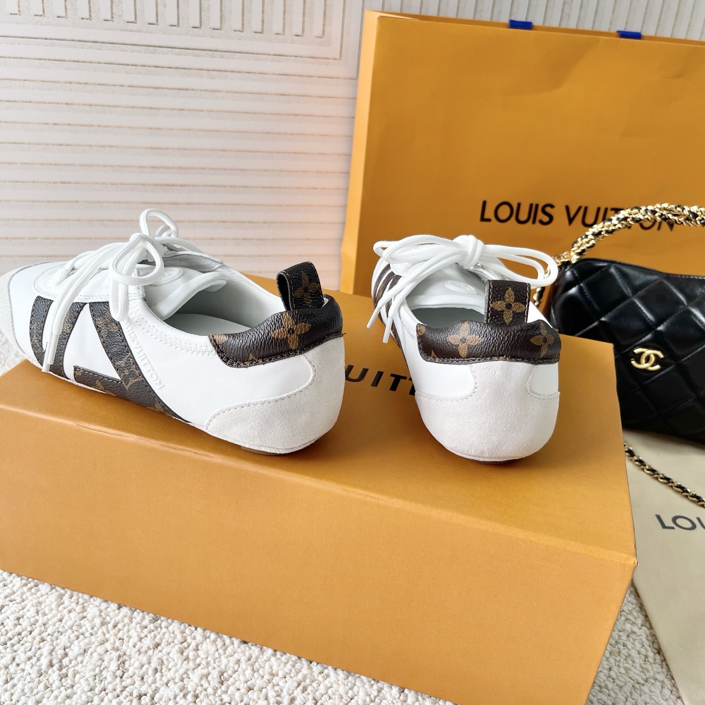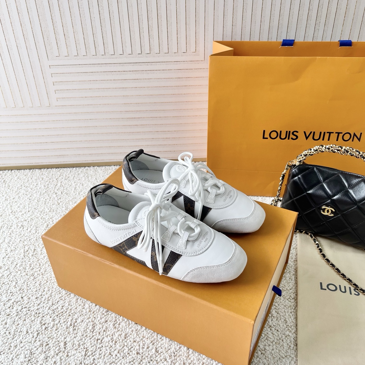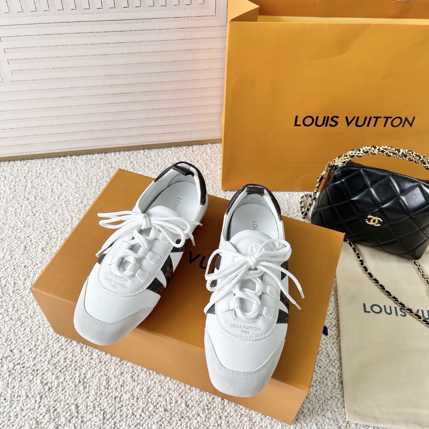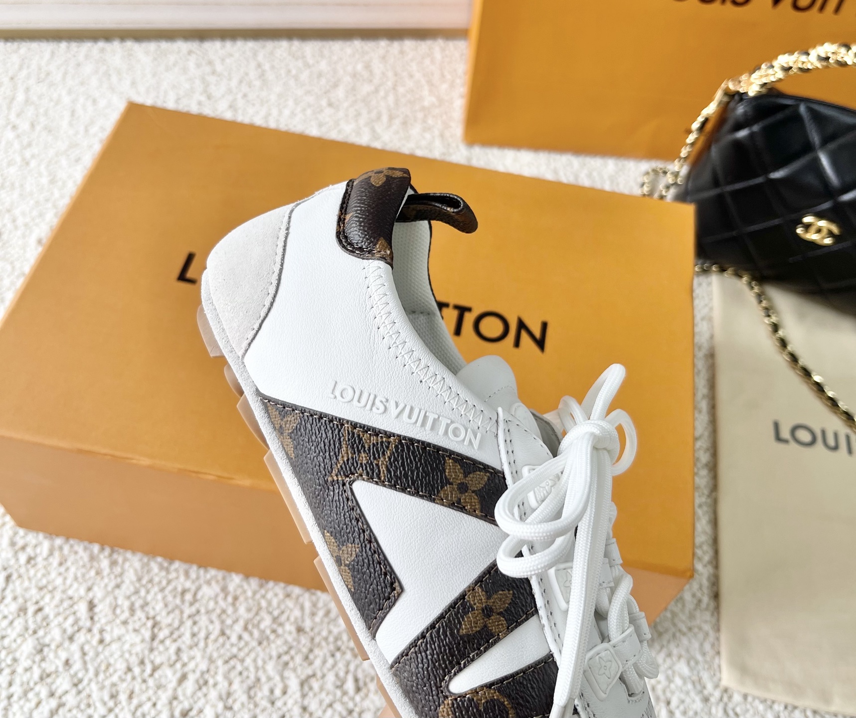 這款鞋子是AAAAA 1:1 質量(非常棒). 使用了和原版一模一樣的材料. 商標部分也保持了和路易威登/Louis Vuitton一樣. 圖片拍攝是實物鞋子拍攝, 您所收到的實物保證和我們圖片一模一樣.