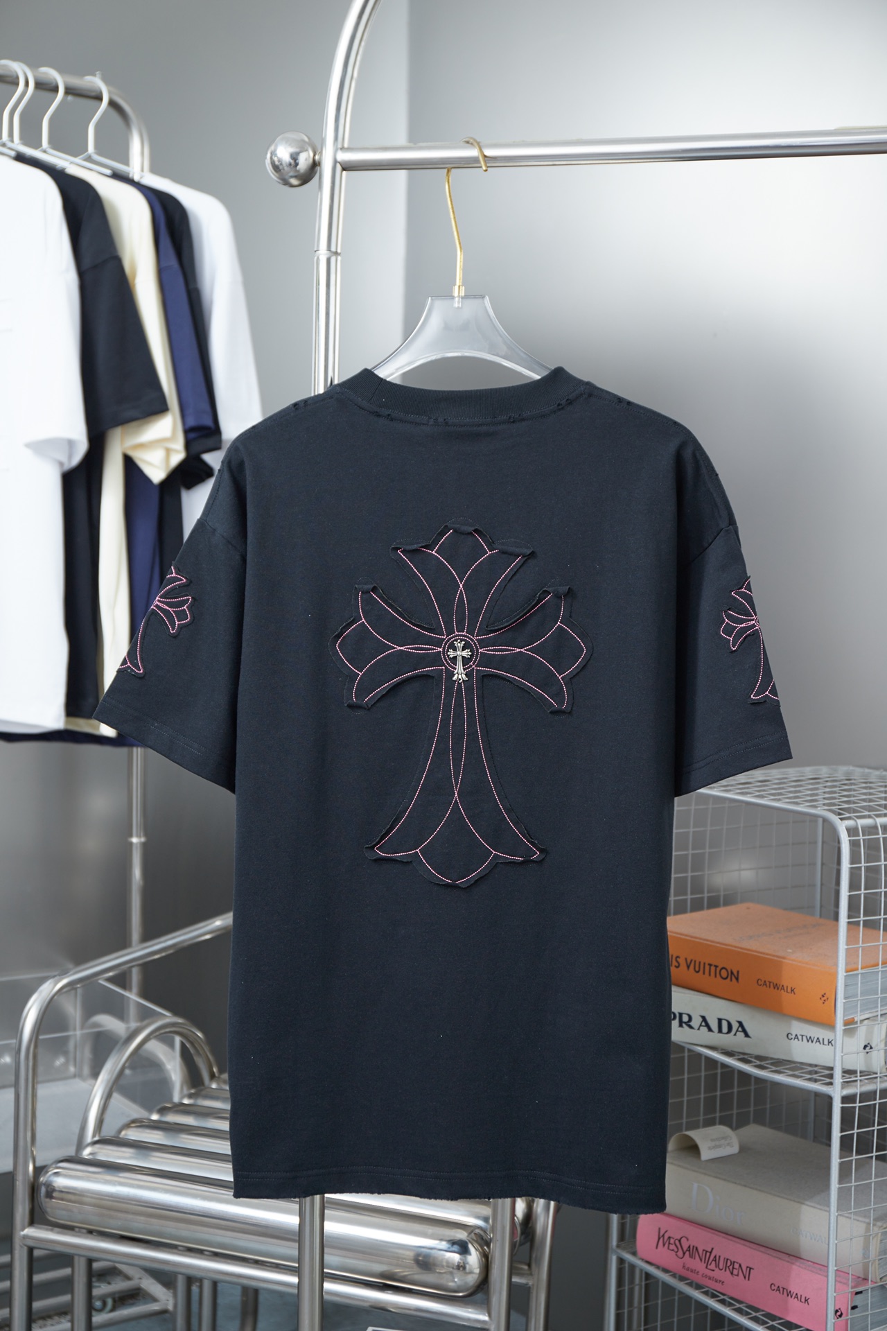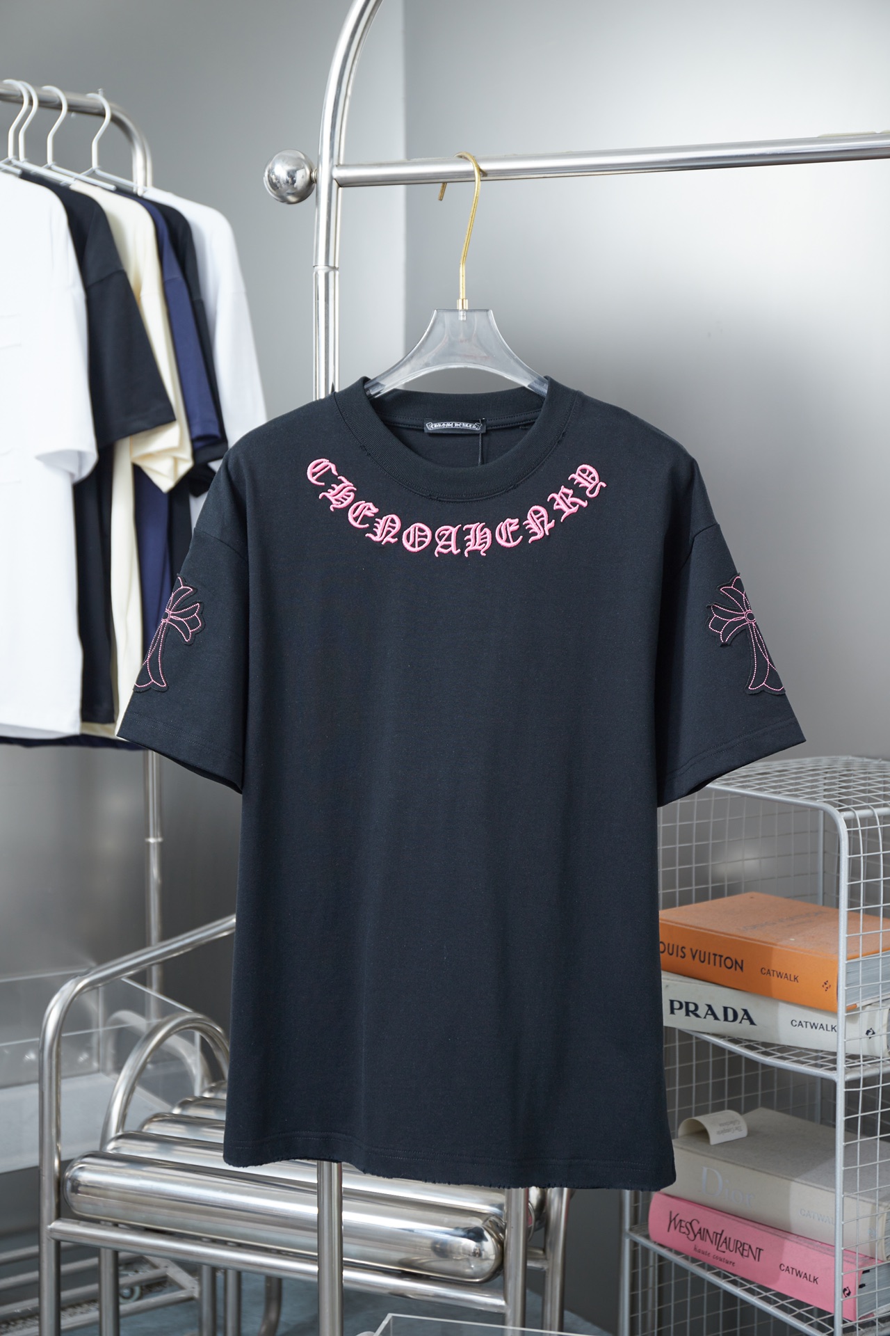 這款衣服是AAAAA 1:1 質量(非常棒). 使用了和原版一模一樣的材料. 商標部分也保持了和鉻心/Chrome Hearts一樣. 圖片拍攝是實物衣服拍攝, 您所收到的實物保證和我們圖片一模一樣.