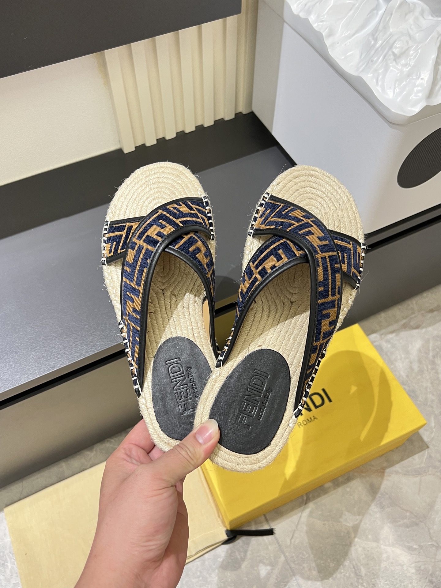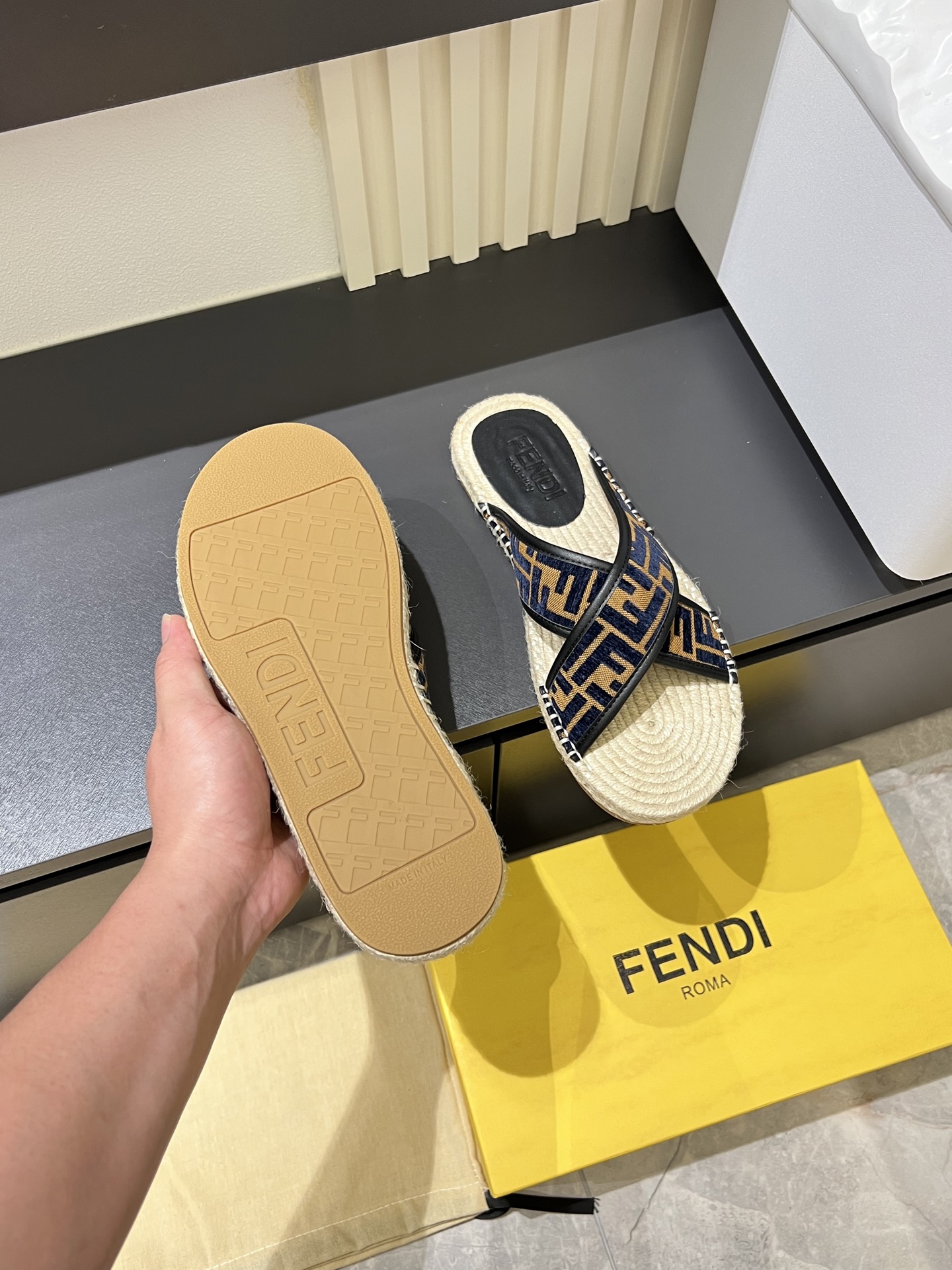 這款鞋子是AAAAA 1:1 質量(非常棒). 使用了和原版一模一樣的材料. 商標部分也保持了和芬迪/Fendi一樣. 圖片拍攝是實物鞋子拍攝, 您所收到的實物保證和我們圖片一模一樣.