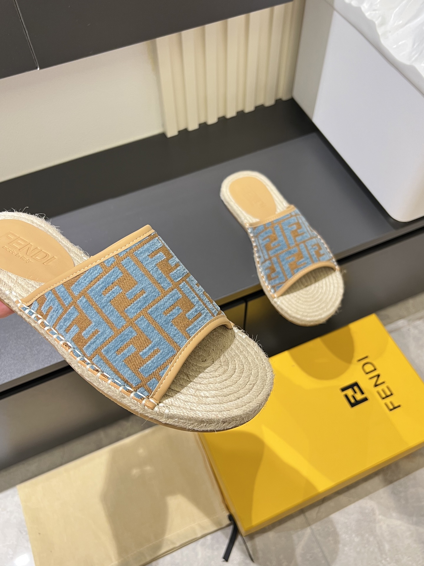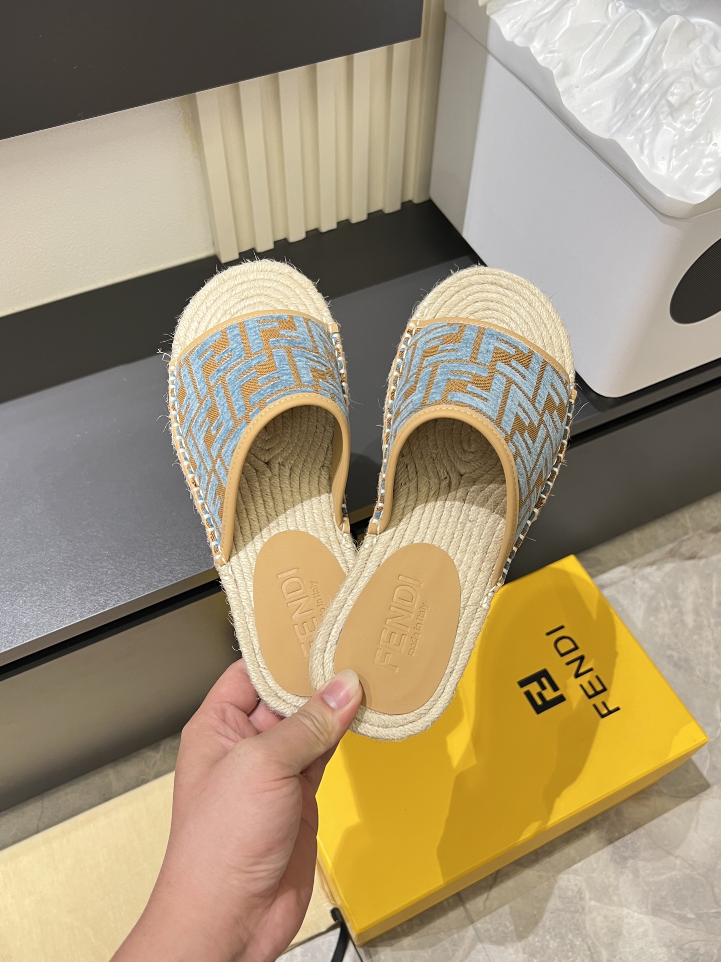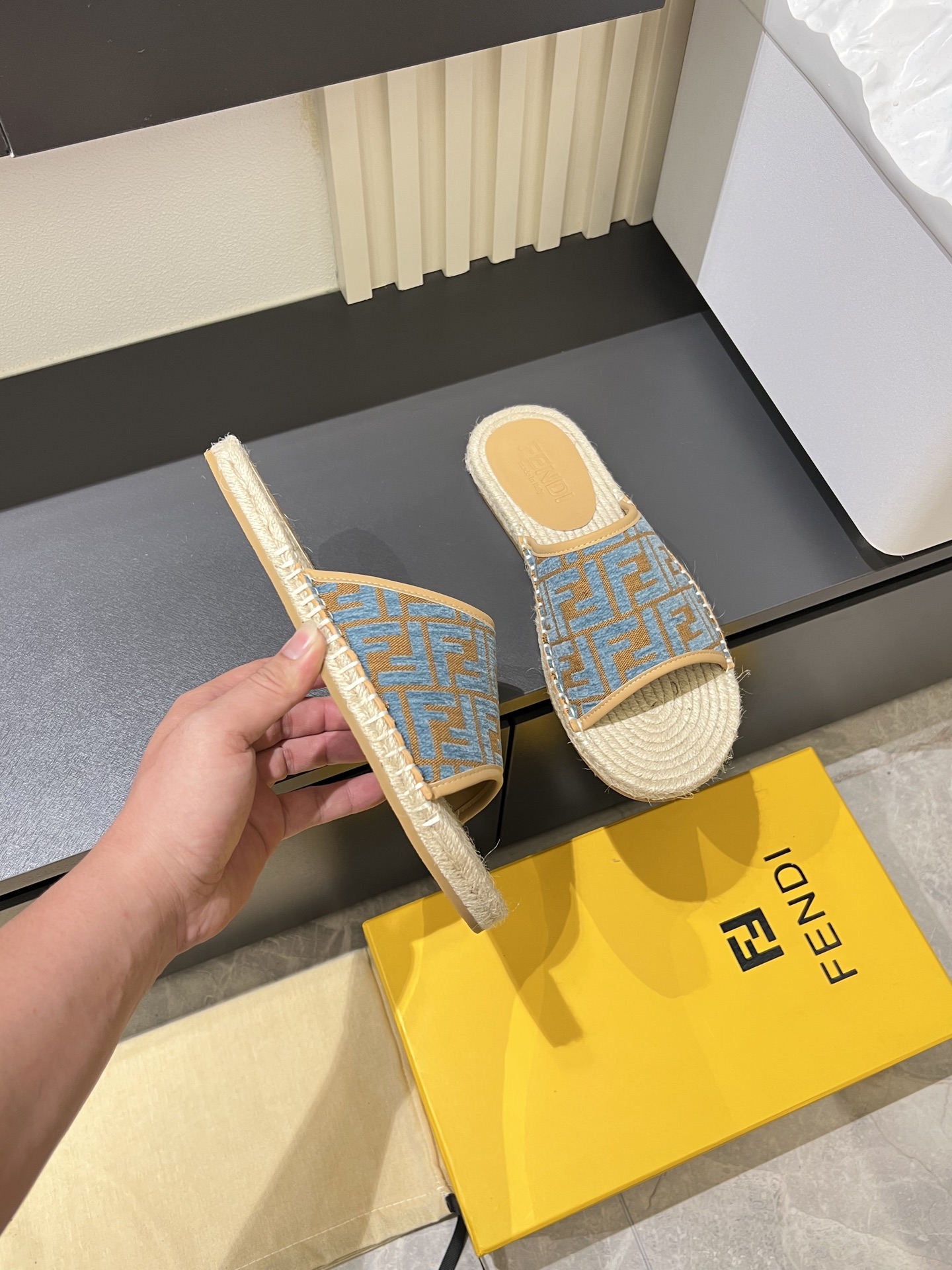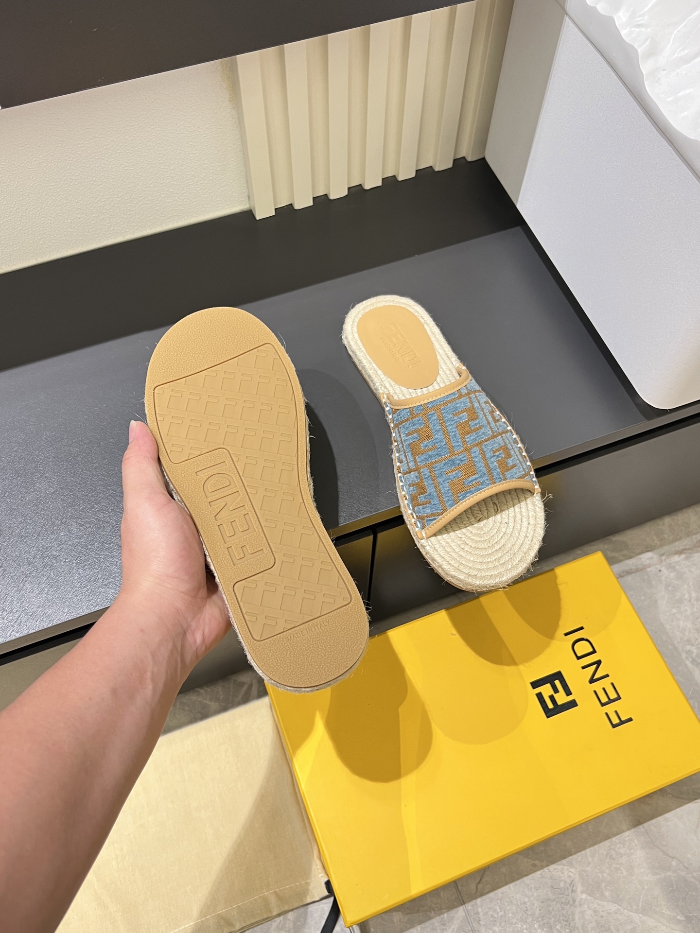 這款鞋子是AAAAA 1:1 質量(非常棒). 使用了和原版一模一樣的材料. 商標部分也保持了和芬迪/Fendi一樣. 圖片拍攝是實物鞋子拍攝, 您所收到的實物保證和我們圖片一模一樣.