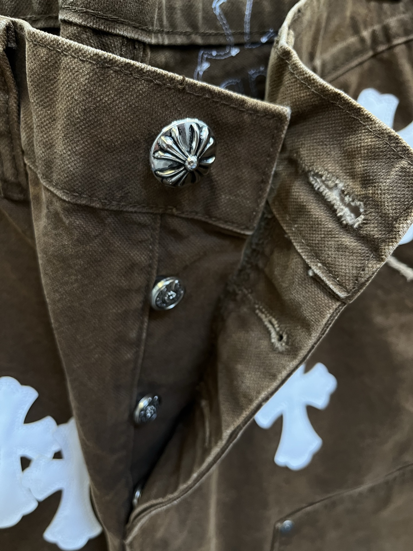 這款衣服是AAAAA 1:1 質量(非常棒). 使用了和原版一模一樣的材料. 商標部分也保持了和鉻心/Chrome Hearts一樣. 圖片拍攝是實物衣服拍攝, 您所收到的實物保證和我們圖片一模一樣.