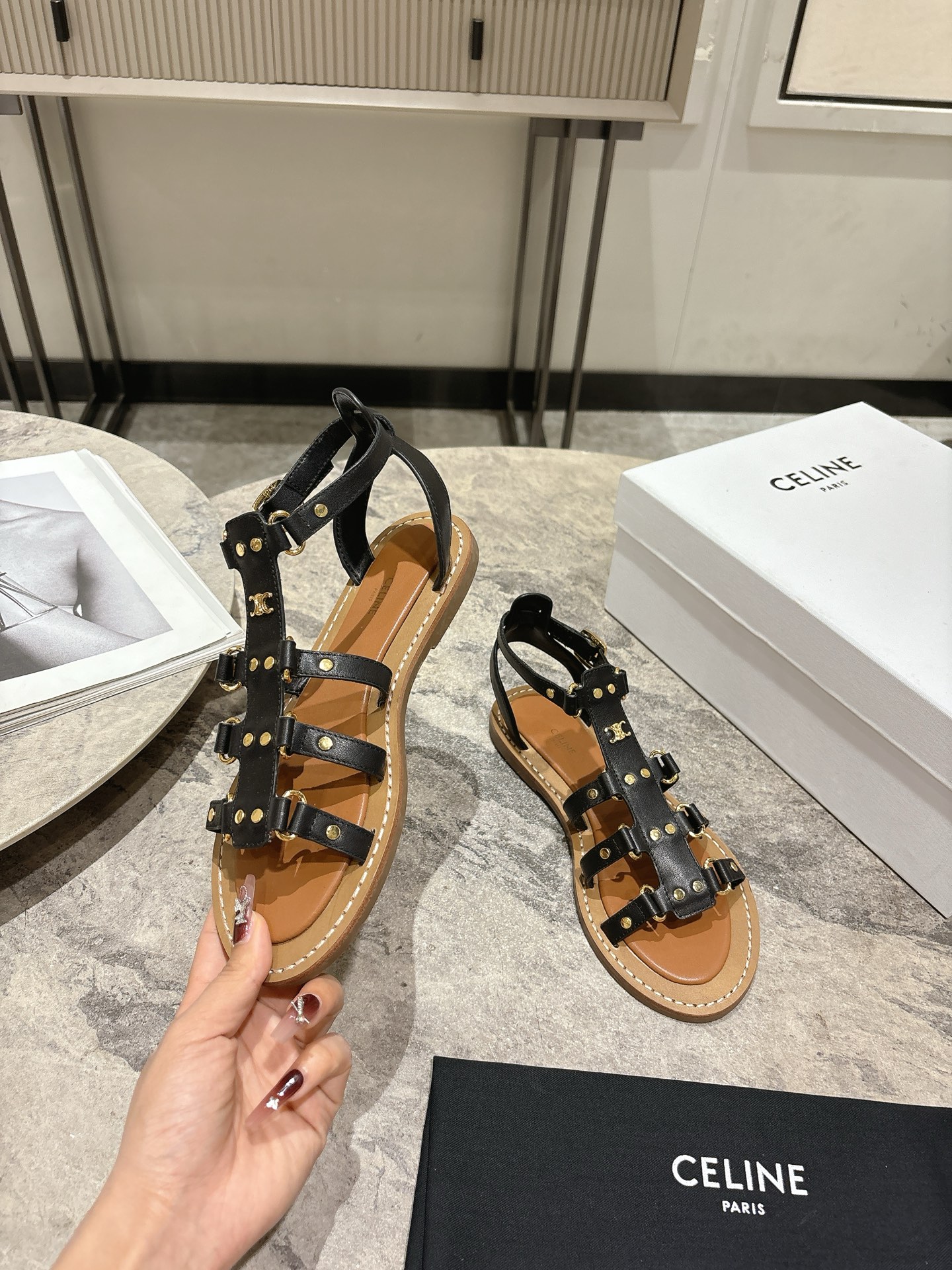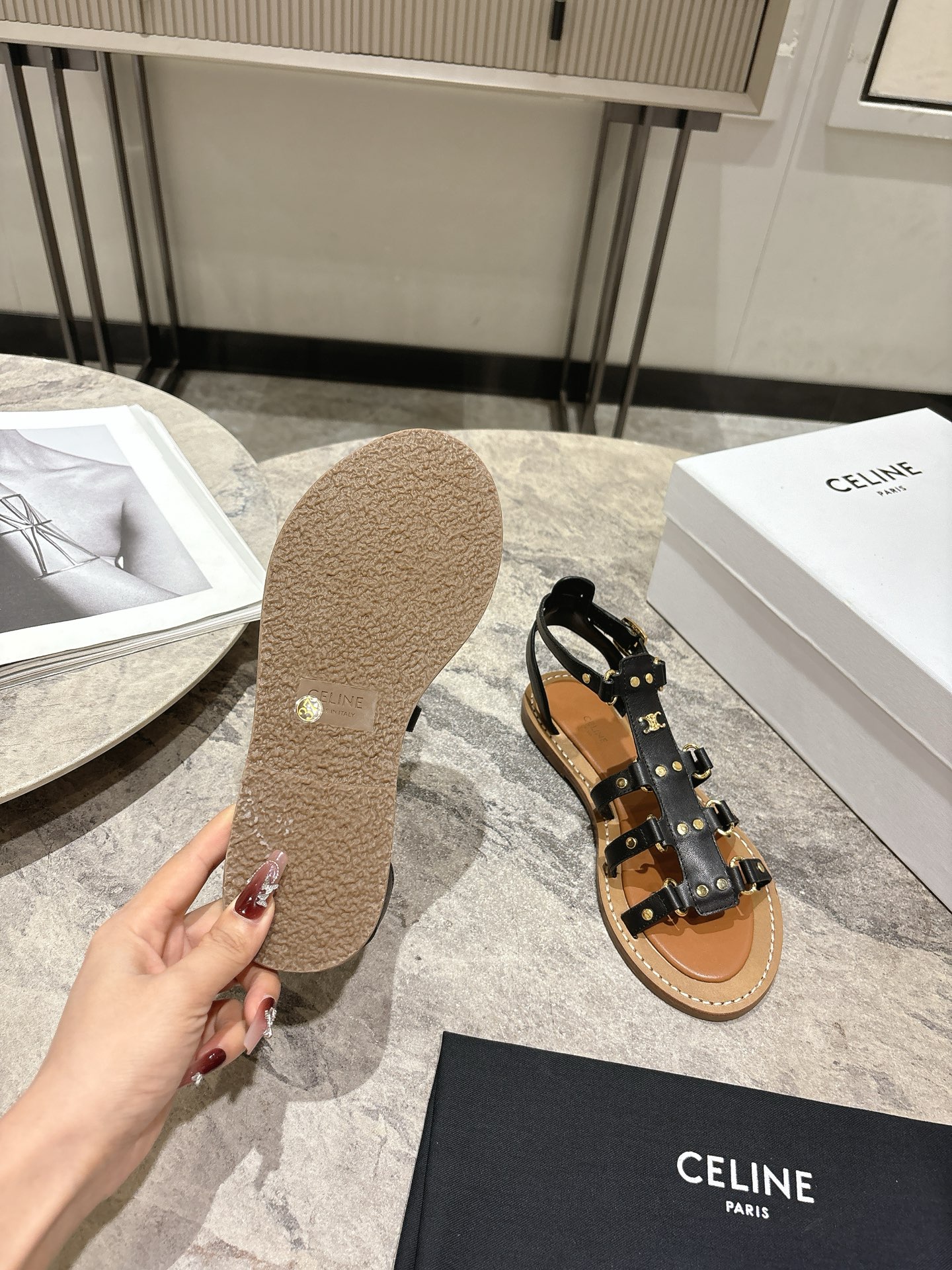這款鞋子是AAAAA 1:1 質量(非常棒). 使用了和原版一模一樣的材料. 商標部分也保持了和思琳/赛琳/Celine一樣. 圖片拍攝是實物鞋子拍攝, 您所收到的實物保證和我們圖片一模一樣.