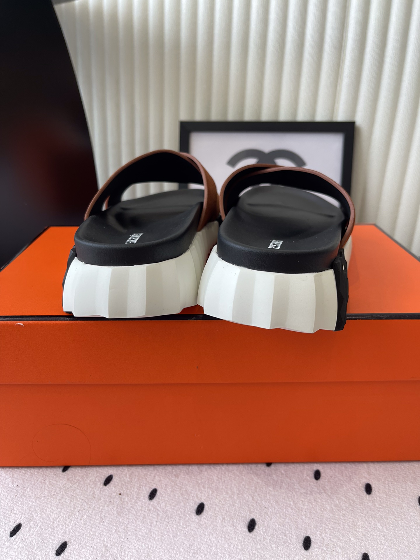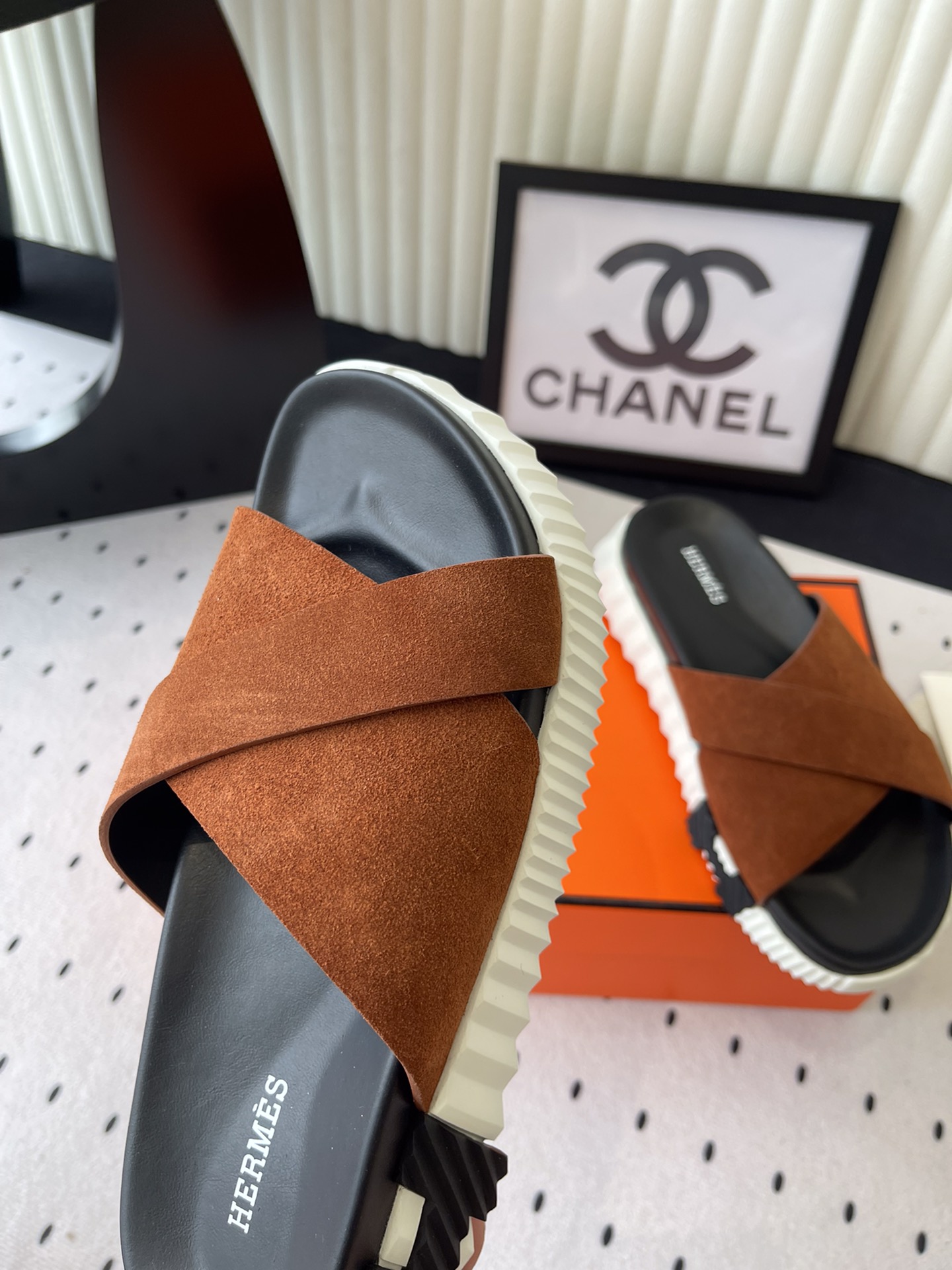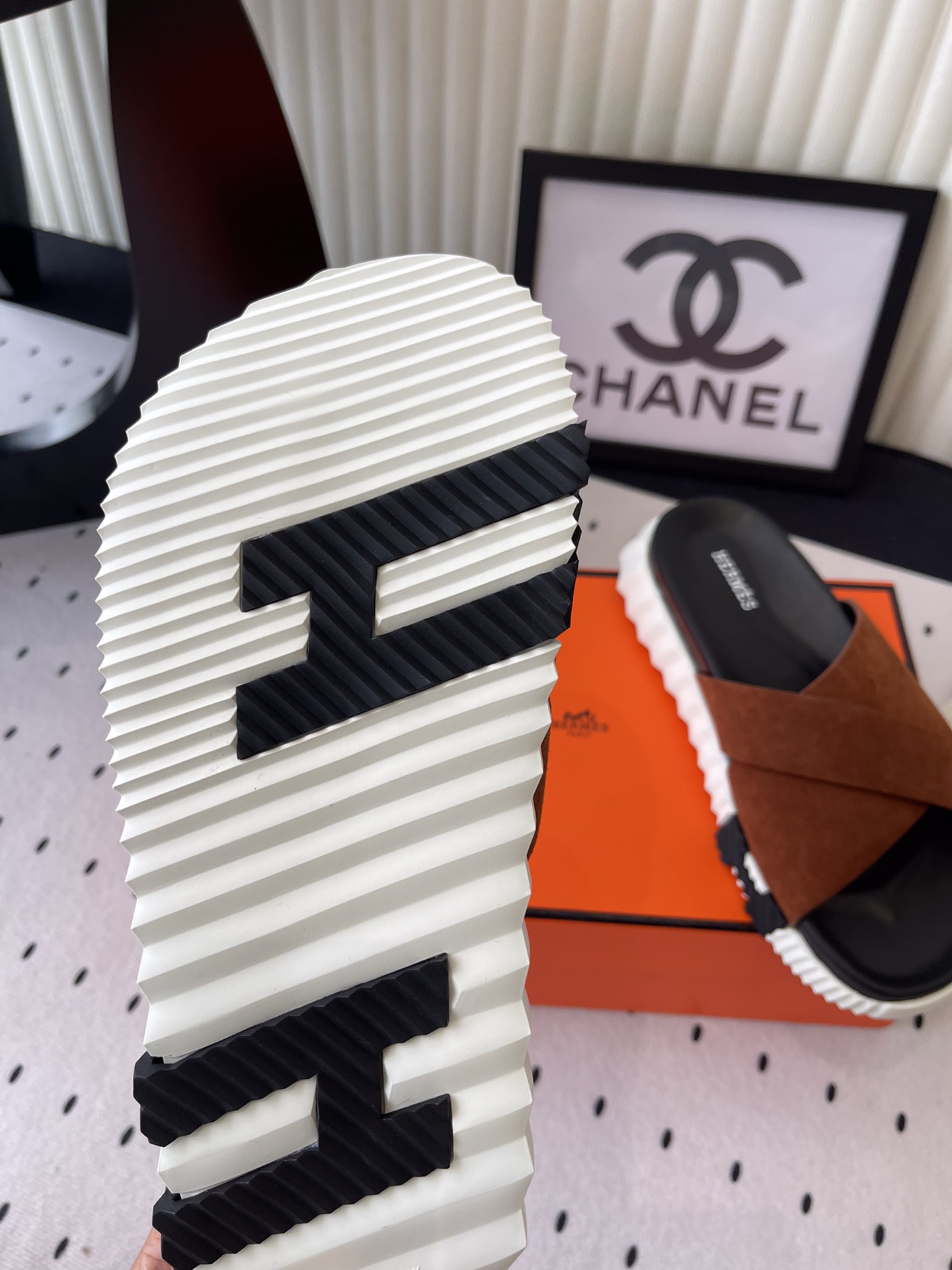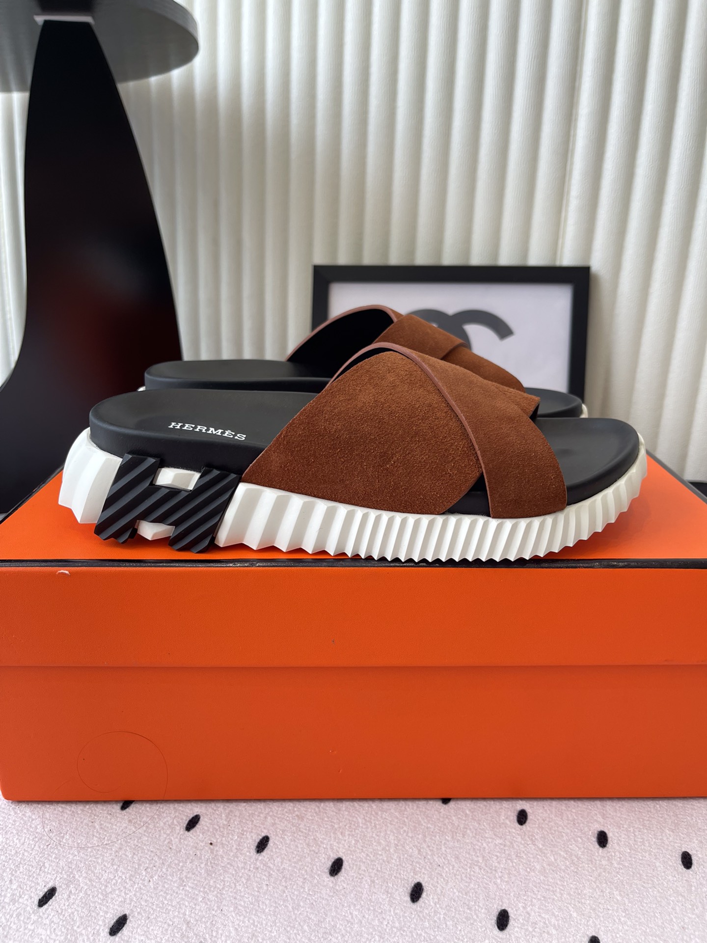 這款鞋子是AAAAA 1:1 質量(非常棒). 使用了和原版一模一樣的材料. 商標部分也保持了和愛馬仕/Hermes一樣. 圖片拍攝是實物鞋子拍攝, 您所收到的實物保證和我們圖片一模一樣.