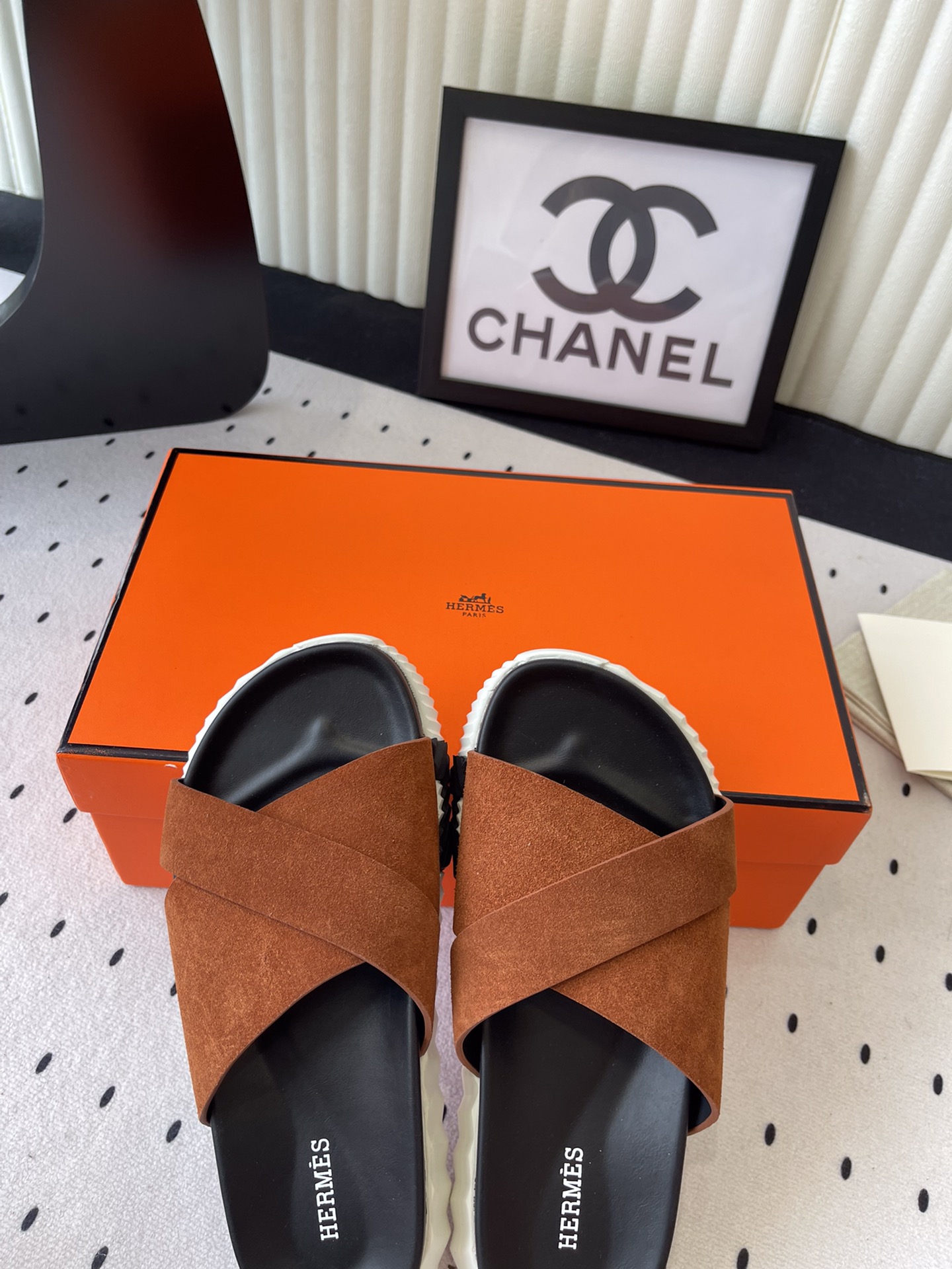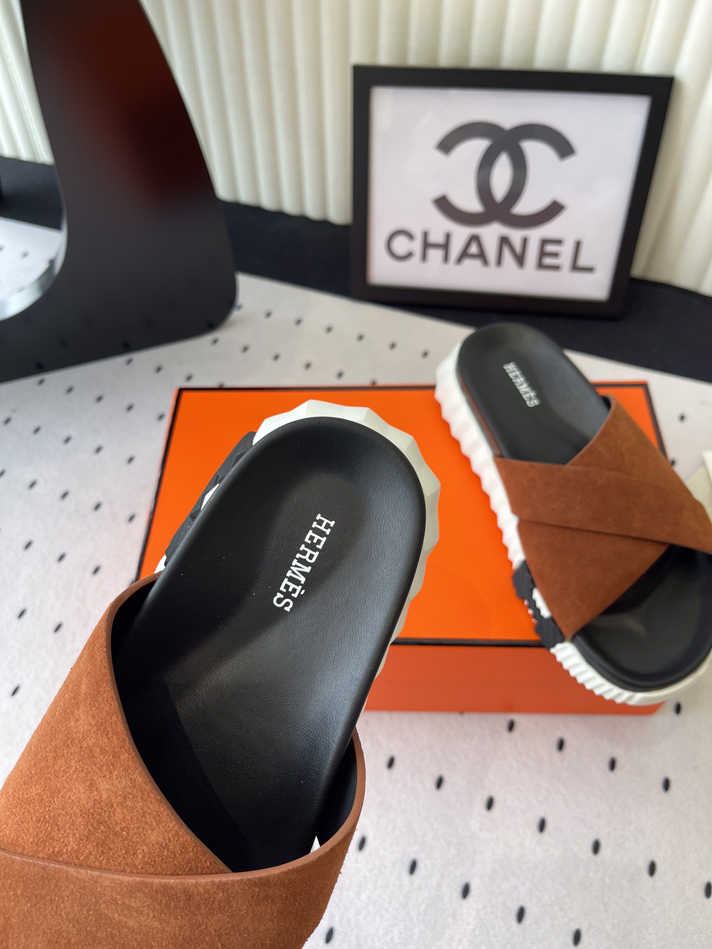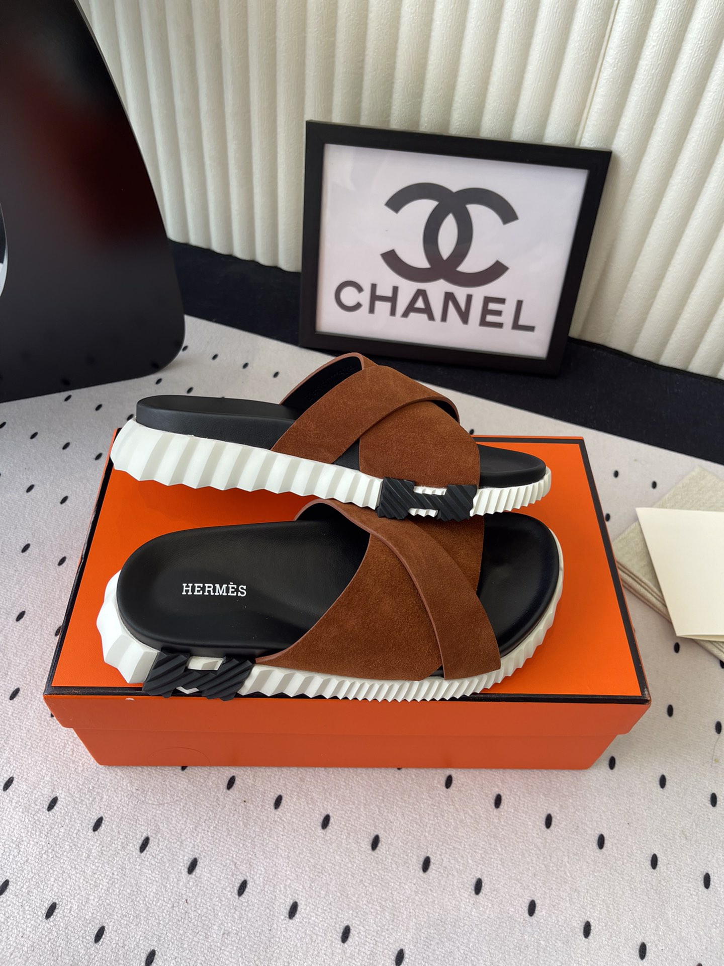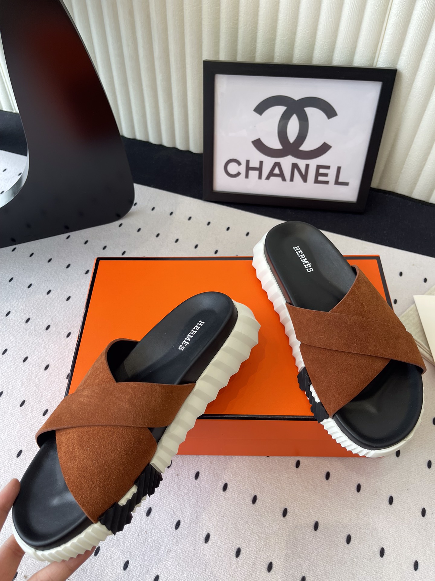 這款鞋子是AAAAA 1:1 質量(非常棒). 使用了和原版一模一樣的材料. 商標部分也保持了和愛馬仕/Hermes一樣. 圖片拍攝是實物鞋子拍攝, 您所收到的實物保證和我們圖片一模一樣.