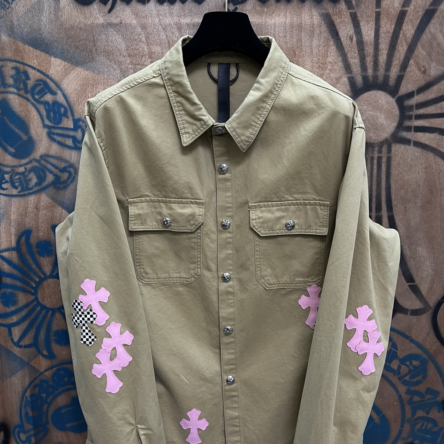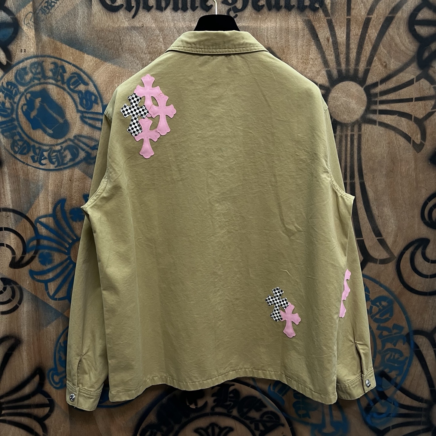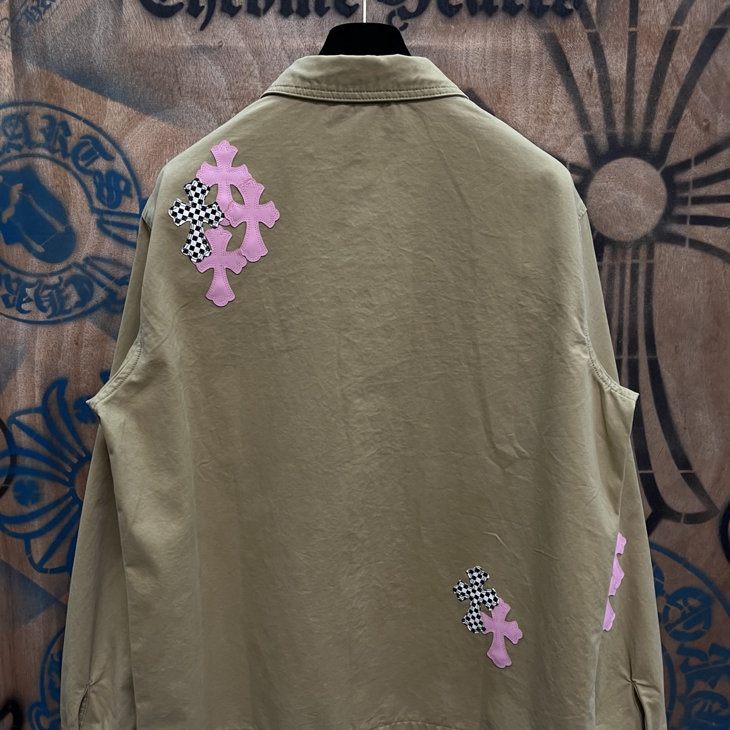 這款衣服是AAAAA 1:1 質量(非常棒). 使用了和原版一模一樣的材料. 商標部分也保持了和鉻心/Chrome Hearts一樣. 圖片拍攝是實物衣服拍攝, 您所收到的實物保證和我們圖片一模一樣.