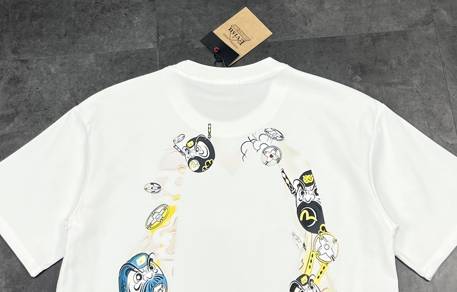 這款衣服是AAAAA 1:1 質量(非常棒). 使用了和原版一模一樣的材料. 商標部分也保持了和EVISU一樣. 圖片拍攝是實物衣服拍攝, 您所收到的實物保證和我們圖片一模一樣.