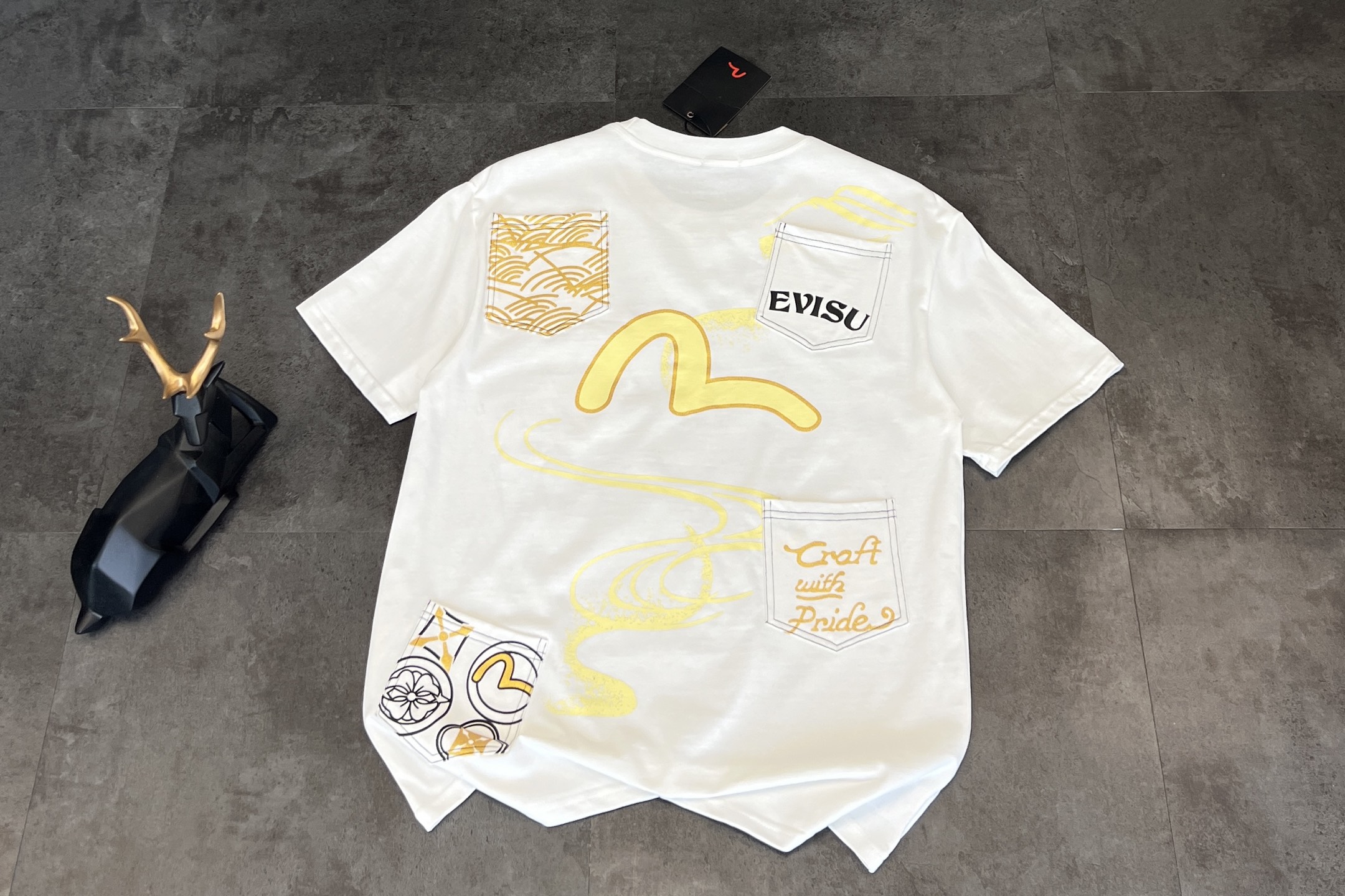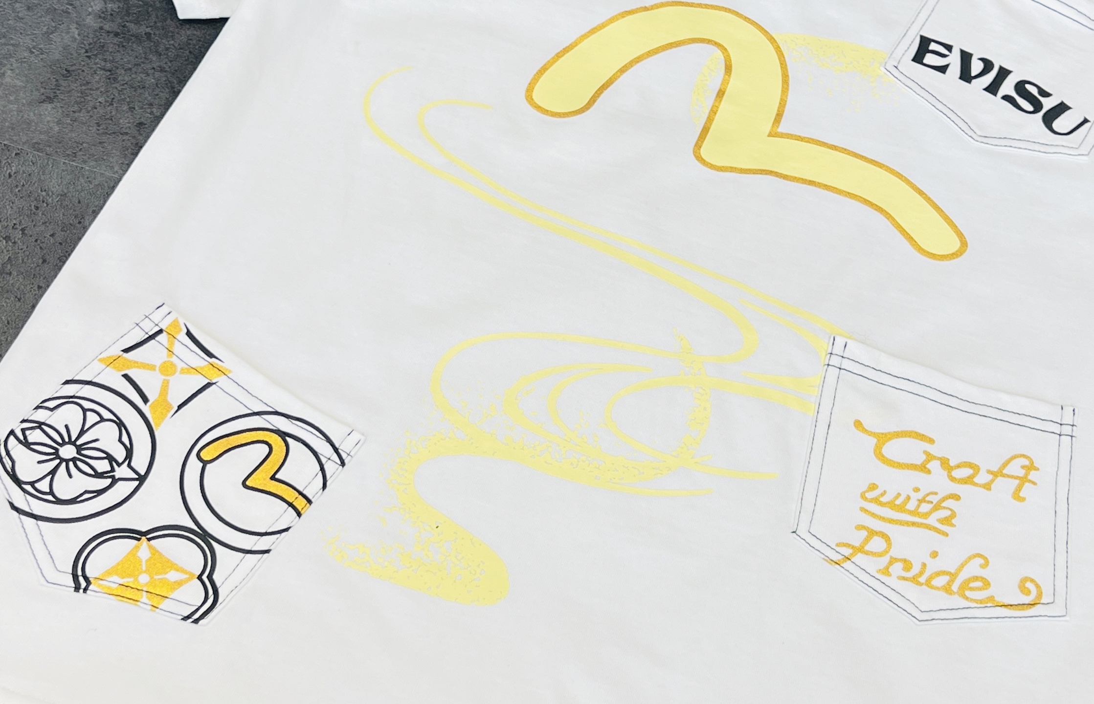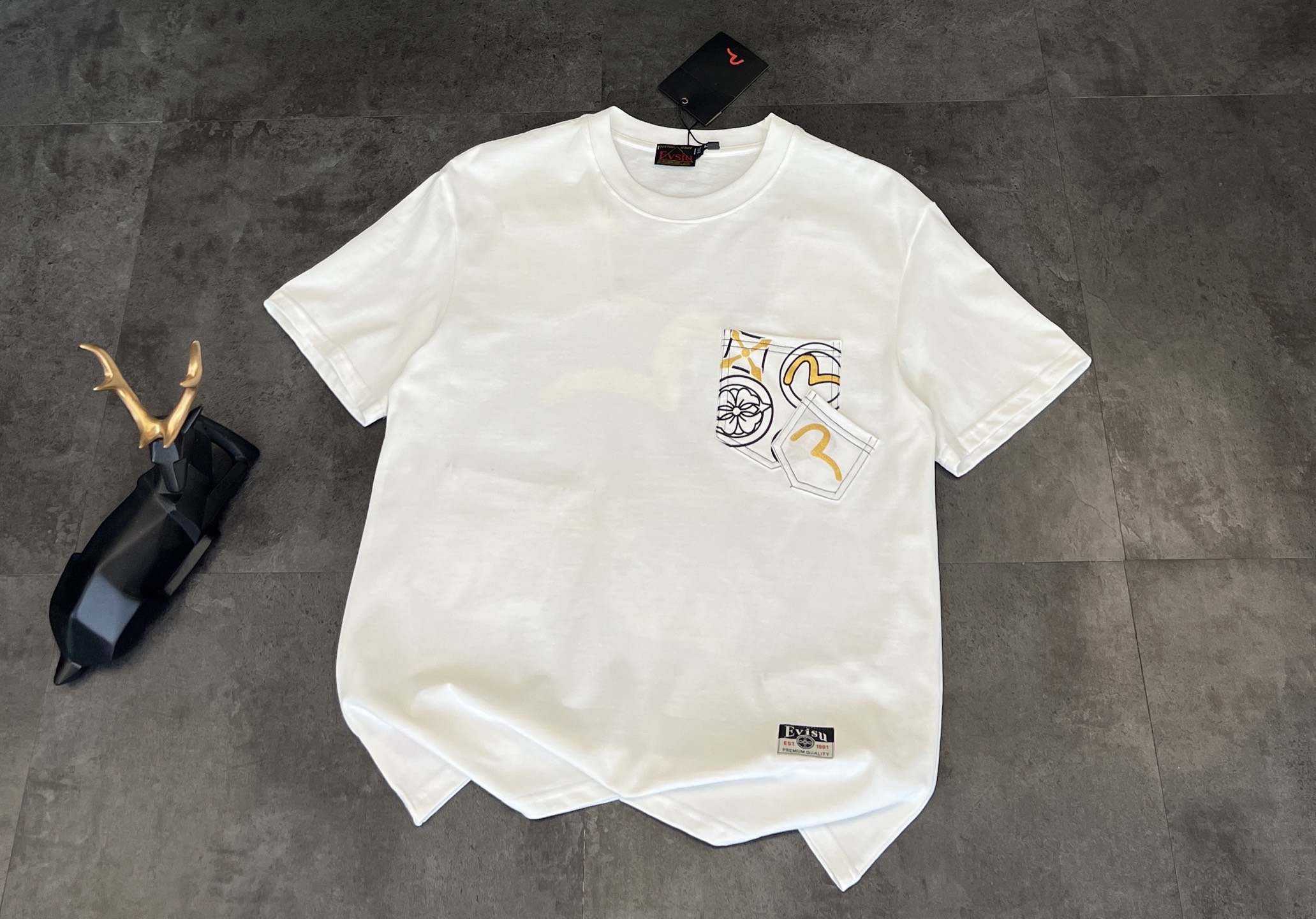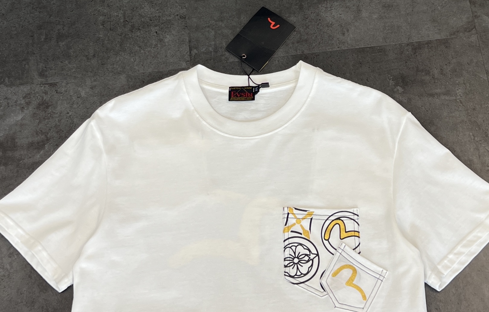 這款衣服是AAAAA 1:1 質量(非常棒). 使用了和原版一模一樣的材料. 商標部分也保持了和EVISU一樣. 圖片拍攝是實物衣服拍攝, 您所收到的實物保證和我們圖片一模一樣.