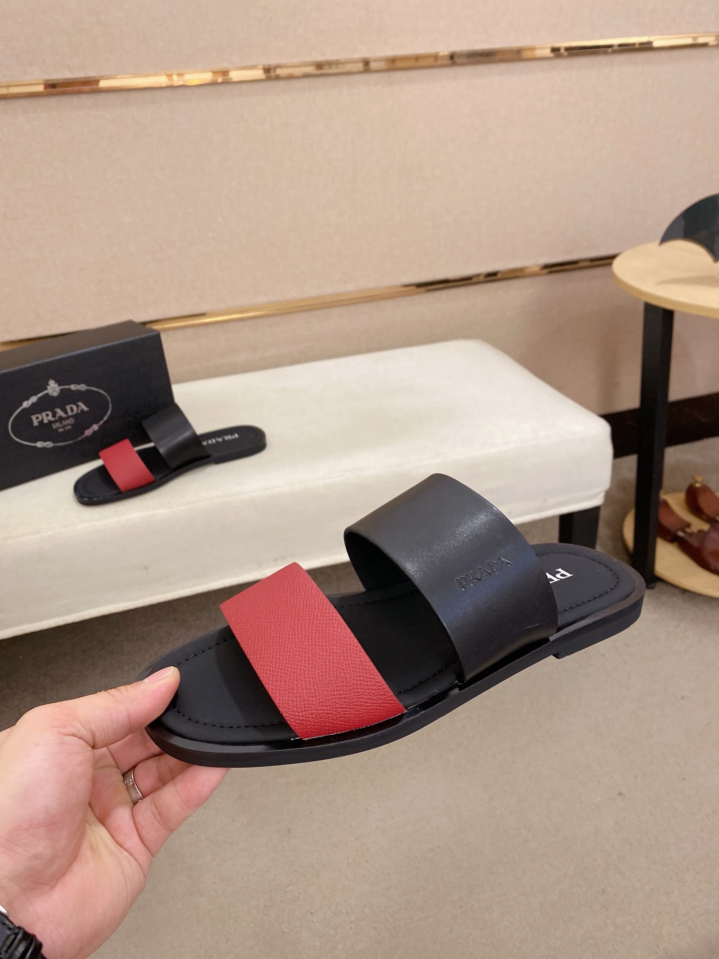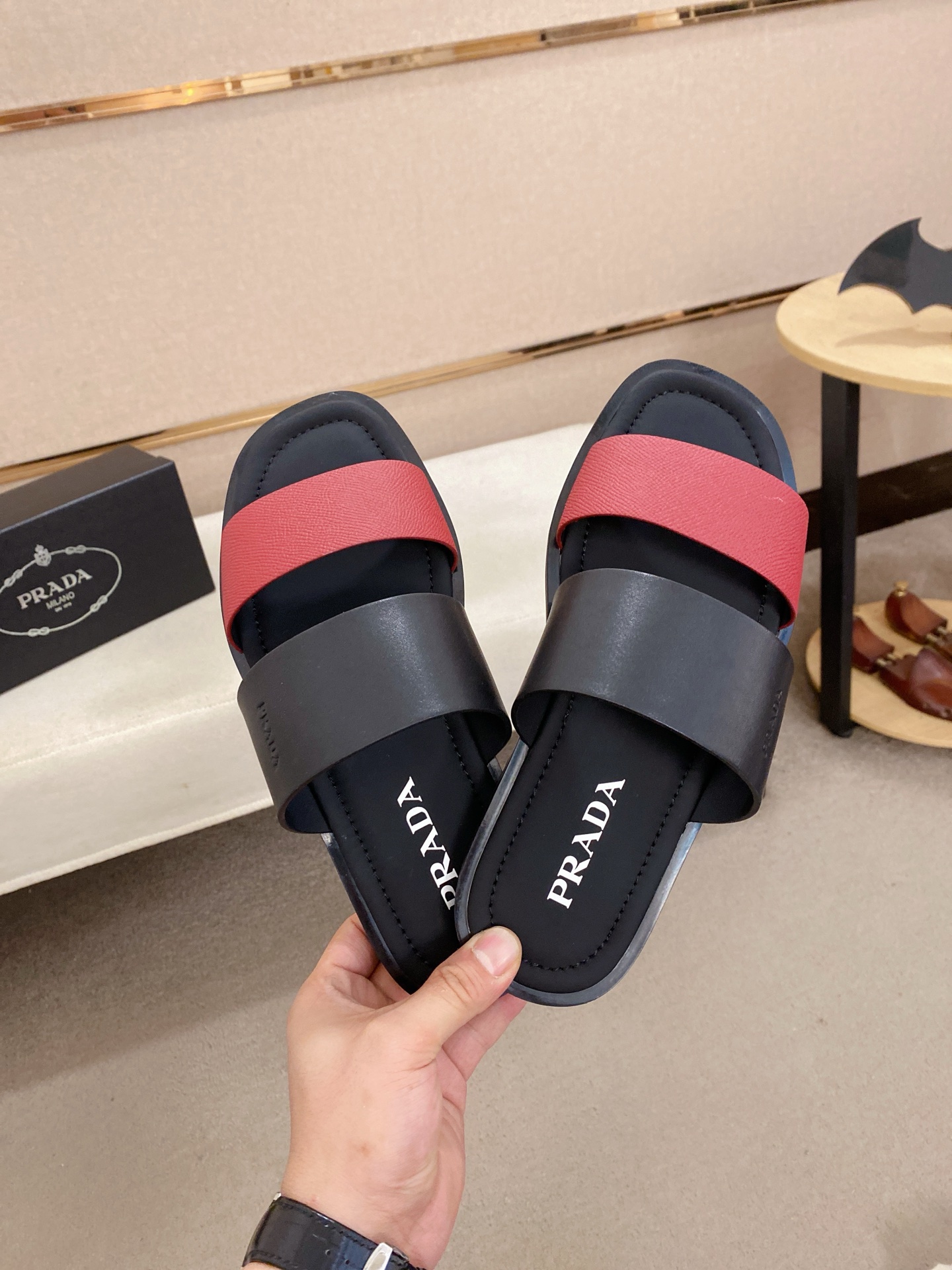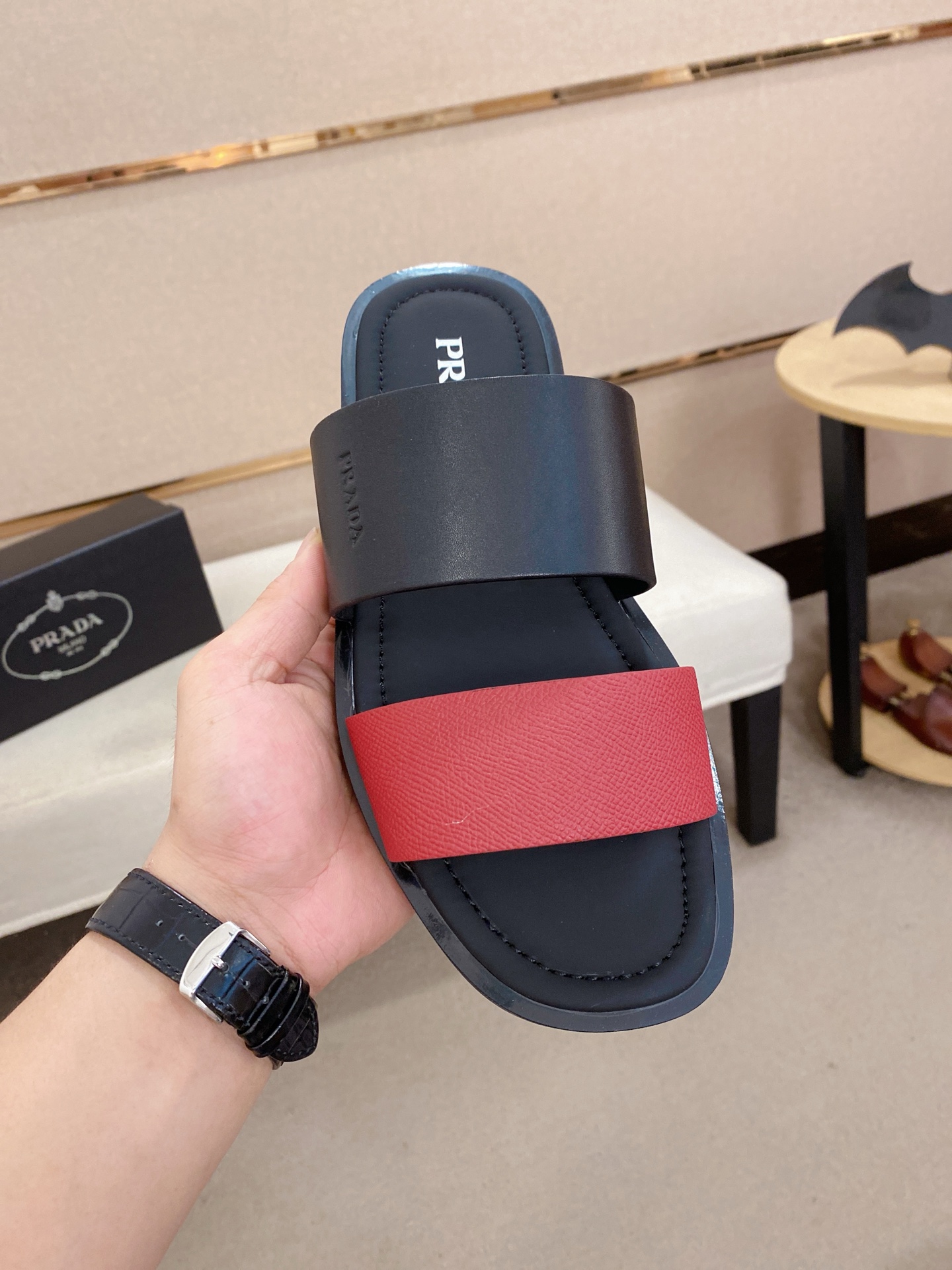 這款鞋子是AAAAA 1:1 質量(非常棒). 使用了和原版一模一樣的材料. 商標部分也保持了和普拉達/Prada一樣. 圖片拍攝是實物鞋子拍攝, 您所收到的實物保證和我們圖片一模一樣.