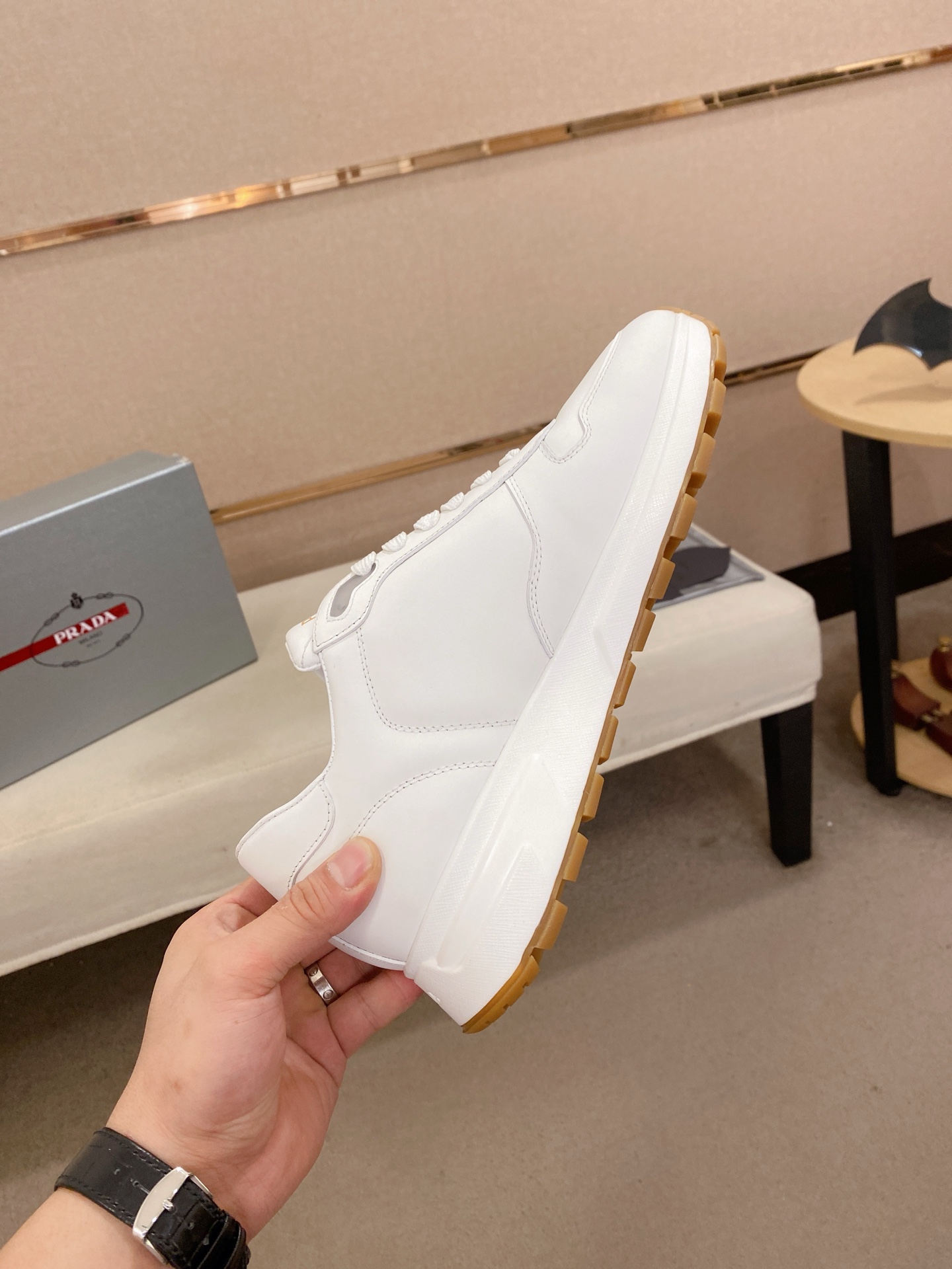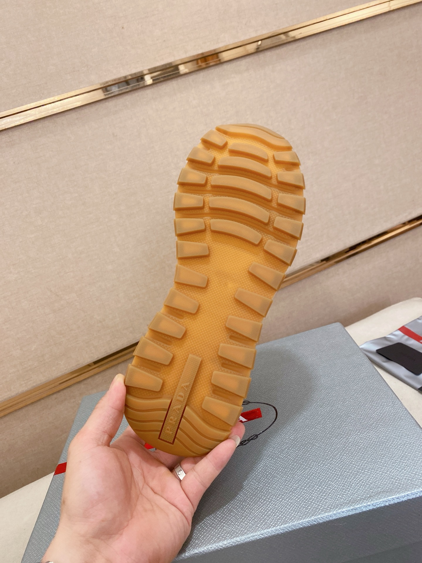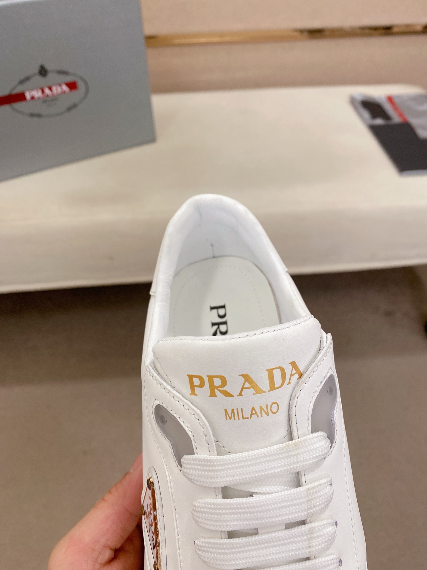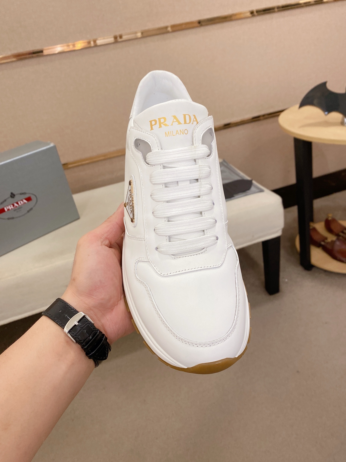 這款鞋子是AAAAA 1:1 質量(非常棒). 使用了和原版一模一樣的材料. 商標部分也保持了和普拉達/Prada一樣. 圖片拍攝是實物鞋子拍攝, 您所收到的實物保證和我們圖片一模一樣.