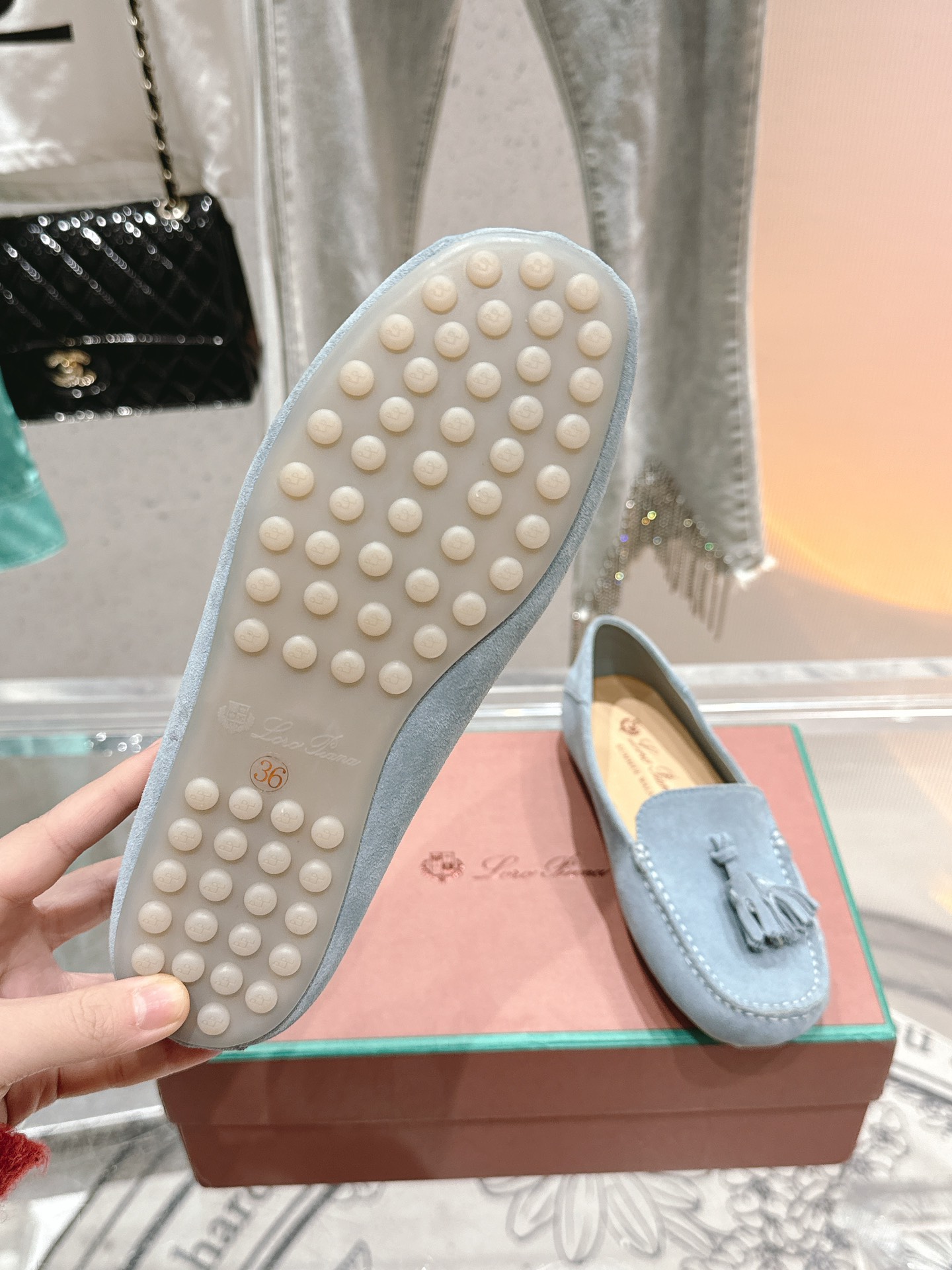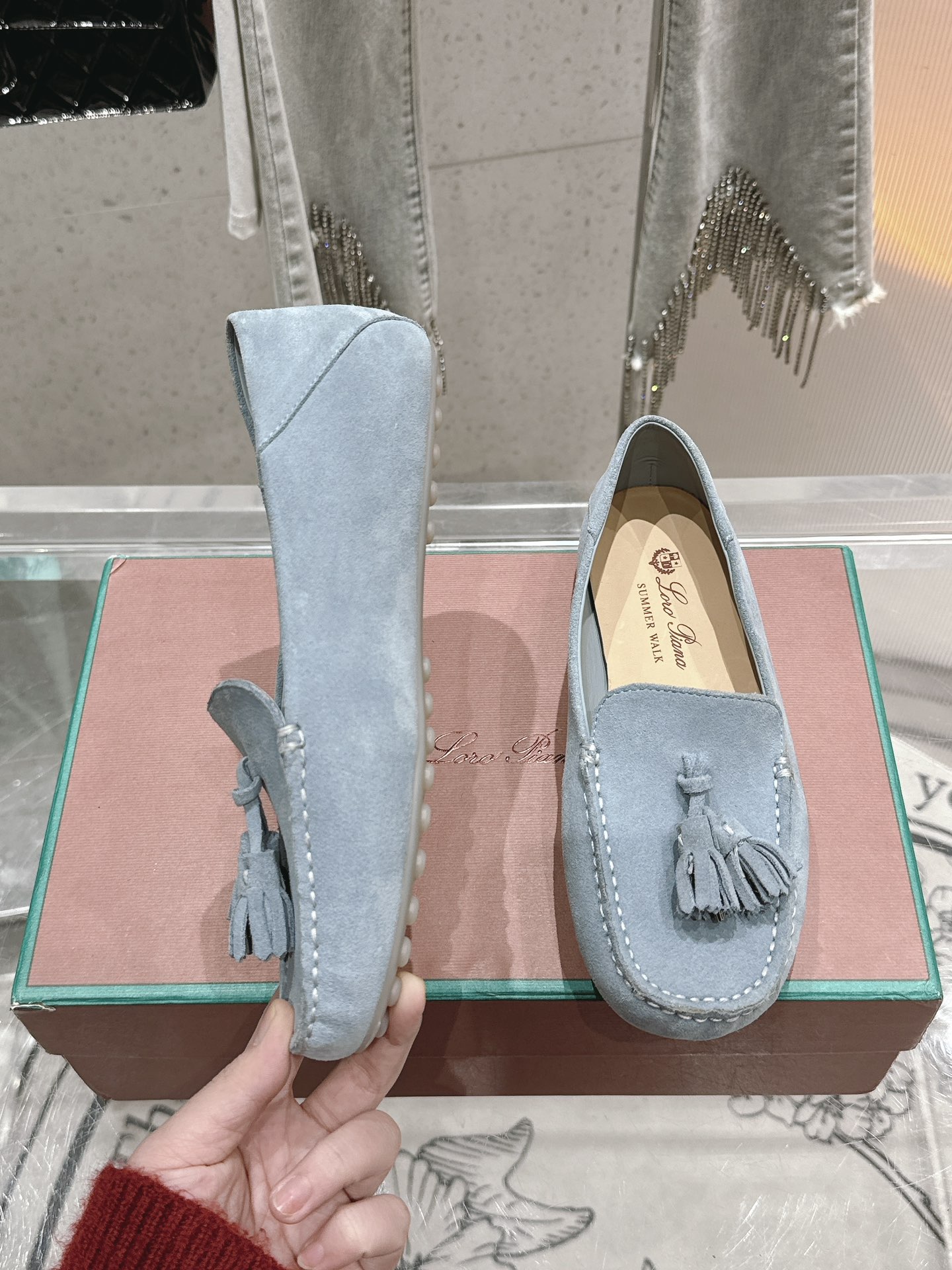 這款鞋子是AAAAA 1:1 質量(非常棒). 使用了和原版一模一樣的材料. 商標部分也保持了和Loro Piana一樣. 圖片拍攝是實物鞋子拍攝, 您所收到的實物保證和我們圖片一模一樣.