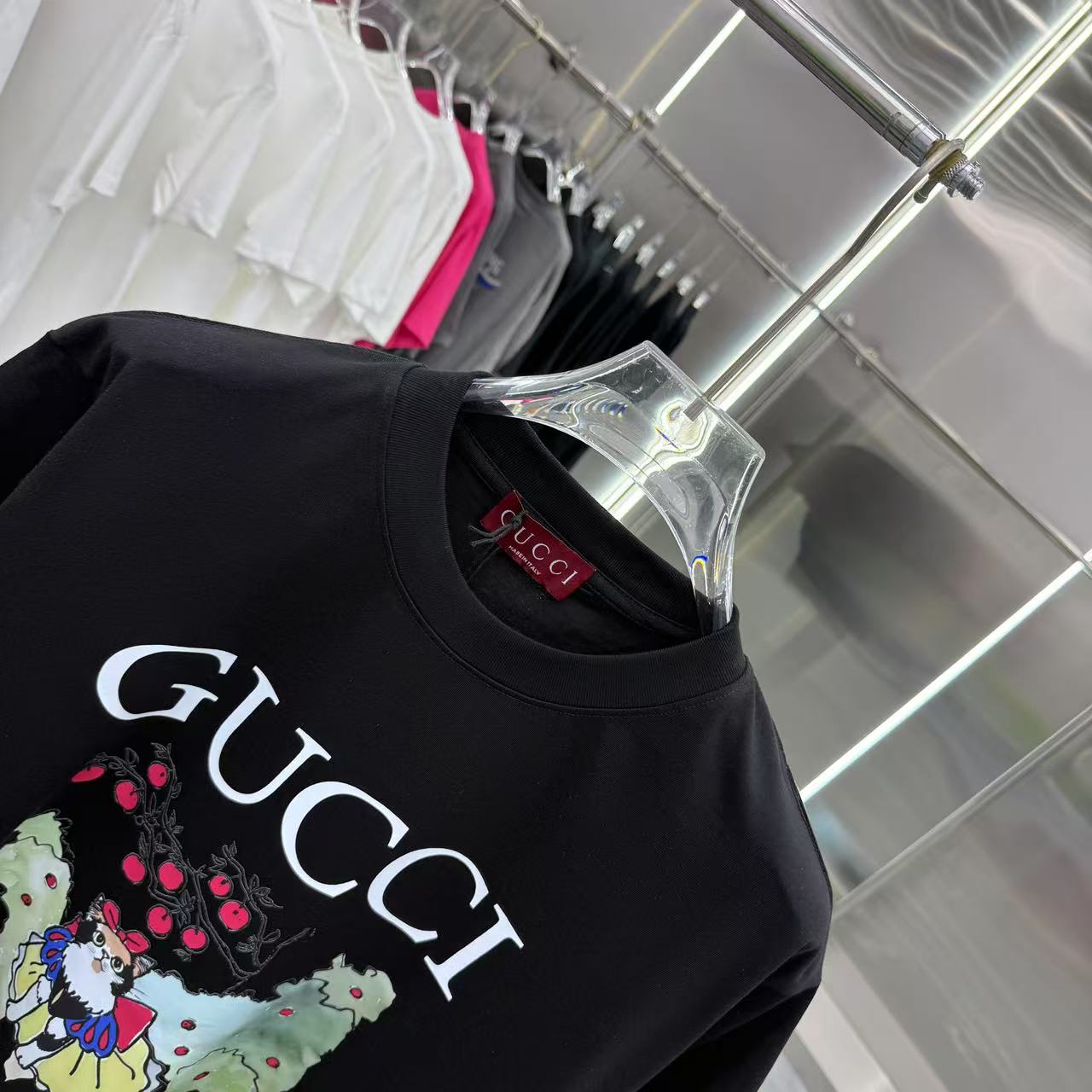 這款衣服是AAAAA 1:1 質量(非常棒). 使用了和原版一模一樣的材料. 商標部分也保持了和古奇/Gucci一樣. 圖片拍攝是實物衣服拍攝, 您所收到的實物保證和我們圖片一模一樣.